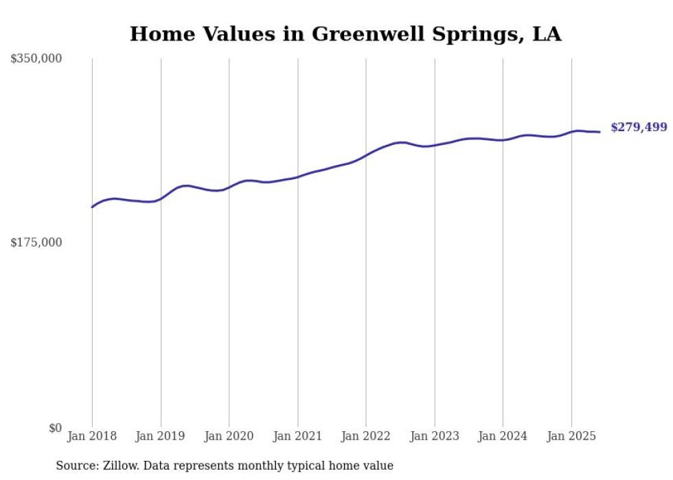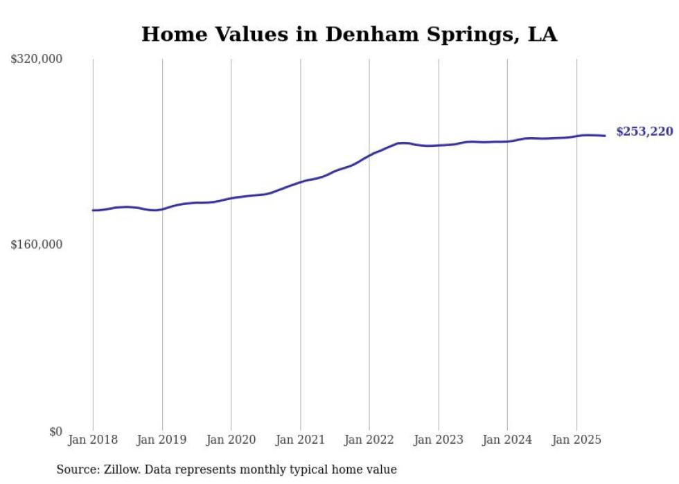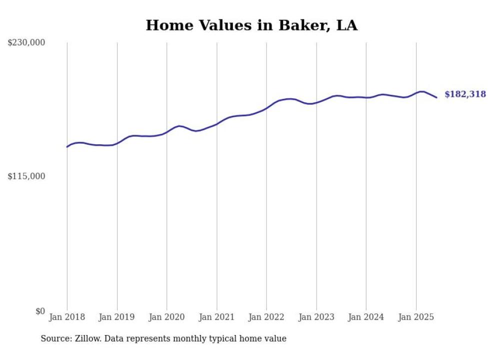 Stacker compiled a list of cities with the most expensive homes in the Baton Rouge, LA metro area using data from Zillow. Charts show the monthly typical home value since January 2018.
