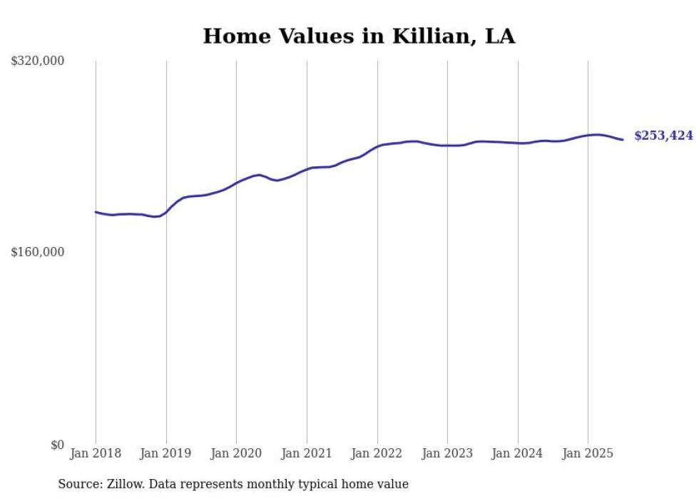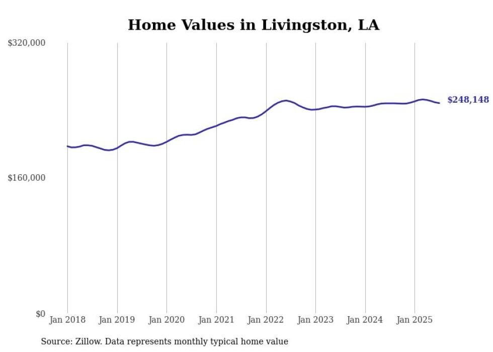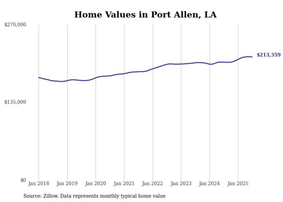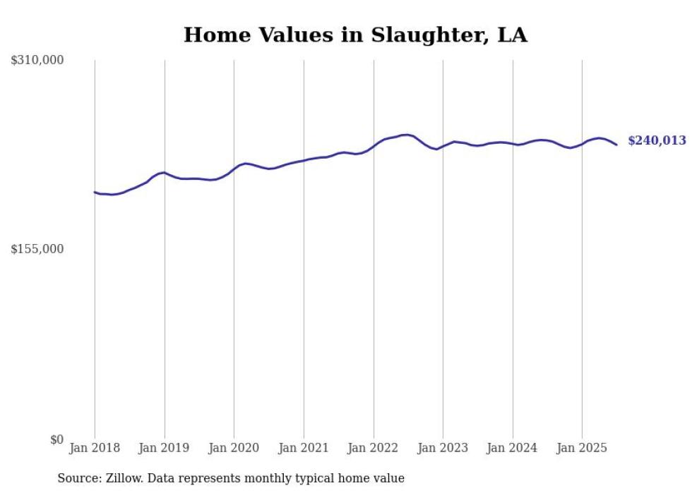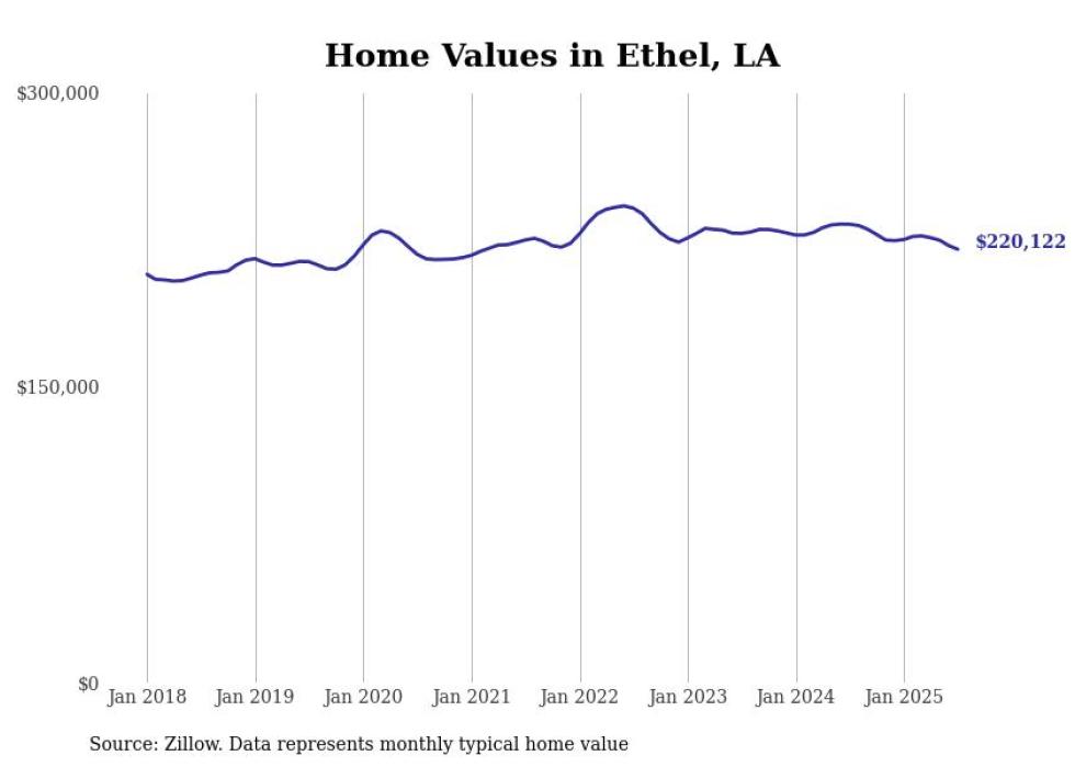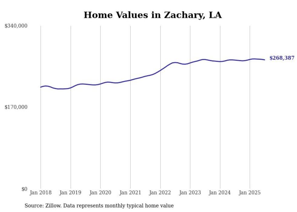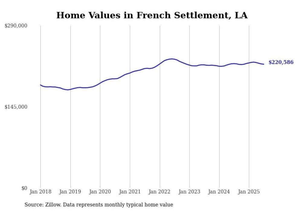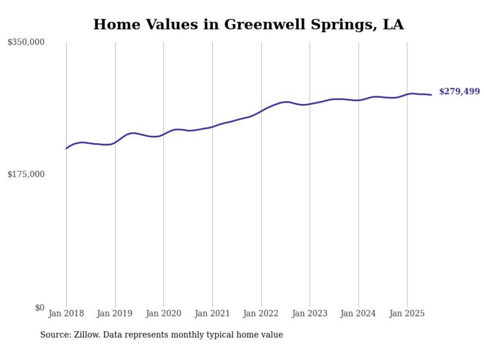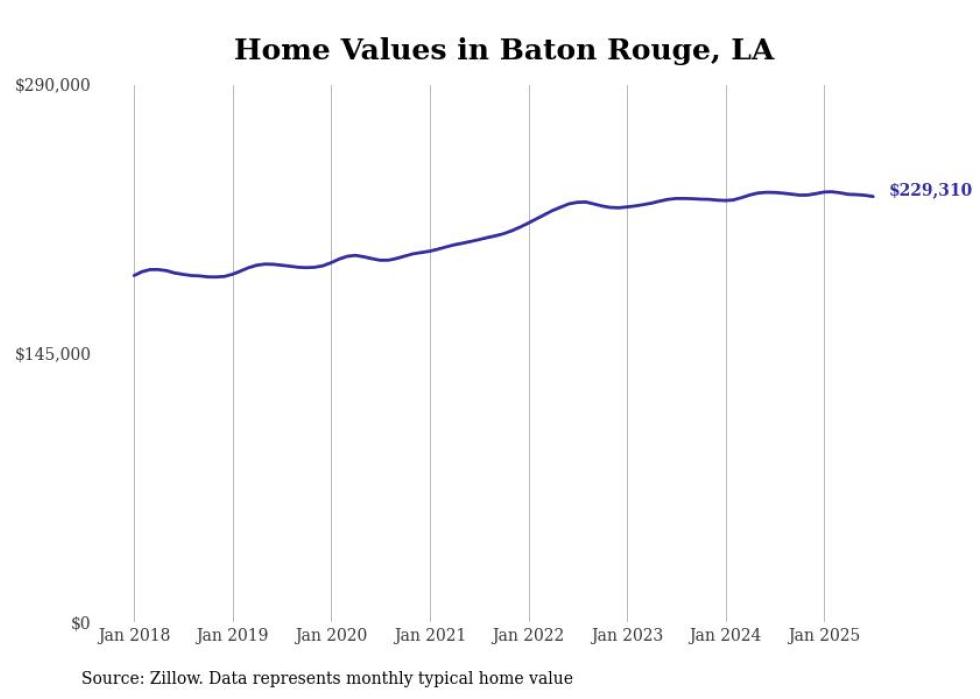 Stacker compiled a list of cities with the most expensive homes in the Baton Rouge metro area using data from Zillow. Charts show the monthly typical home value since January 2018. Data was available for 37 cities and towns.