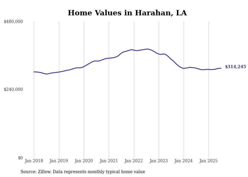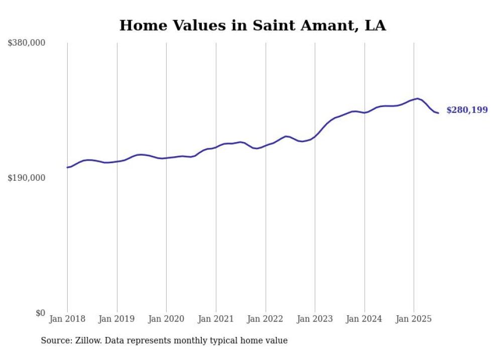 Stacker compiled a list of cities with the most expensive homes in Louisiana using data from Zillow. Cities are ranked by the Zillow Home Values Index for all homes as of July 2025. The charts in this story were created automatically using Matplotlib.