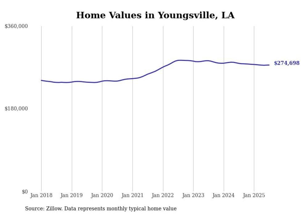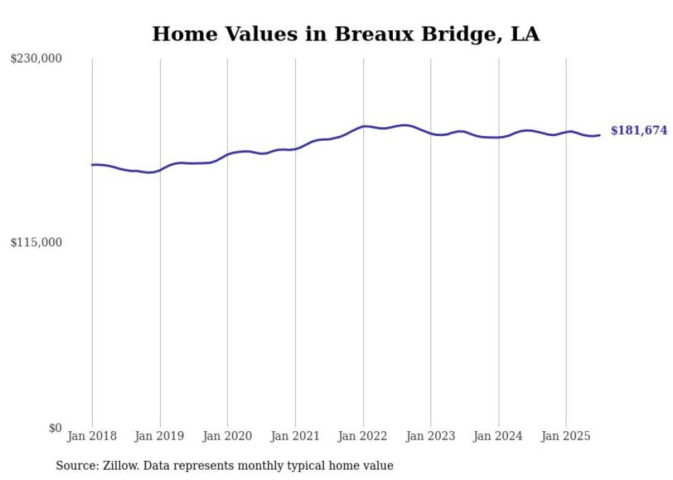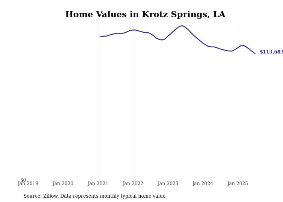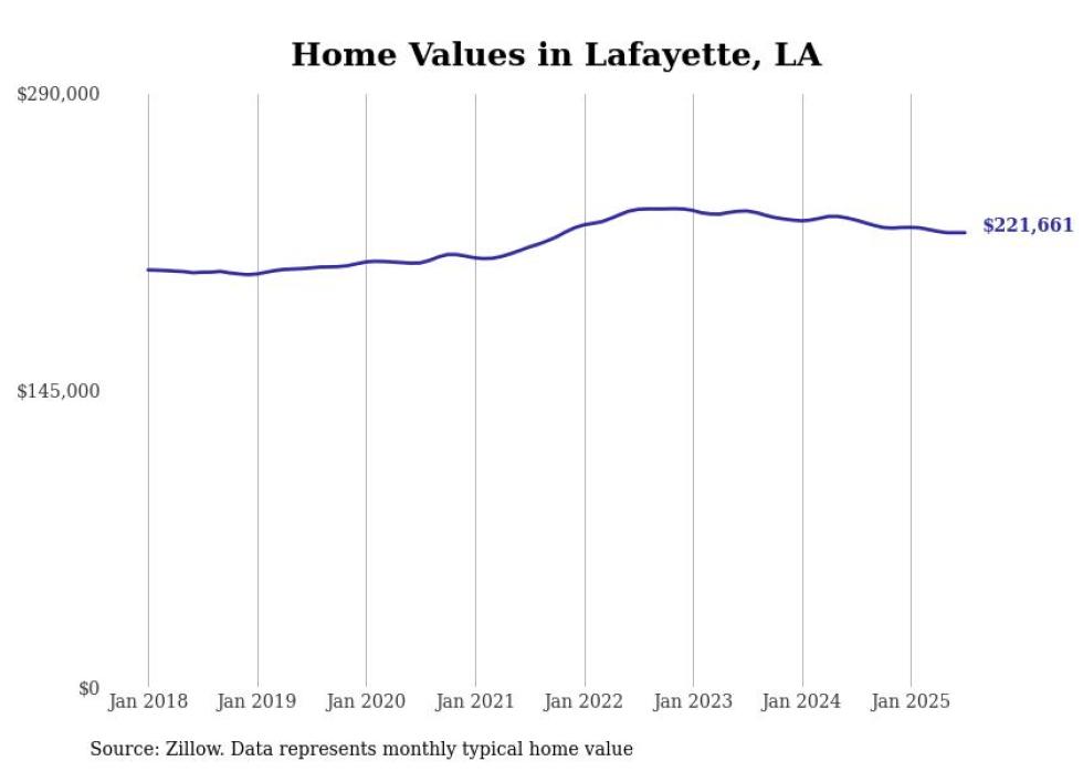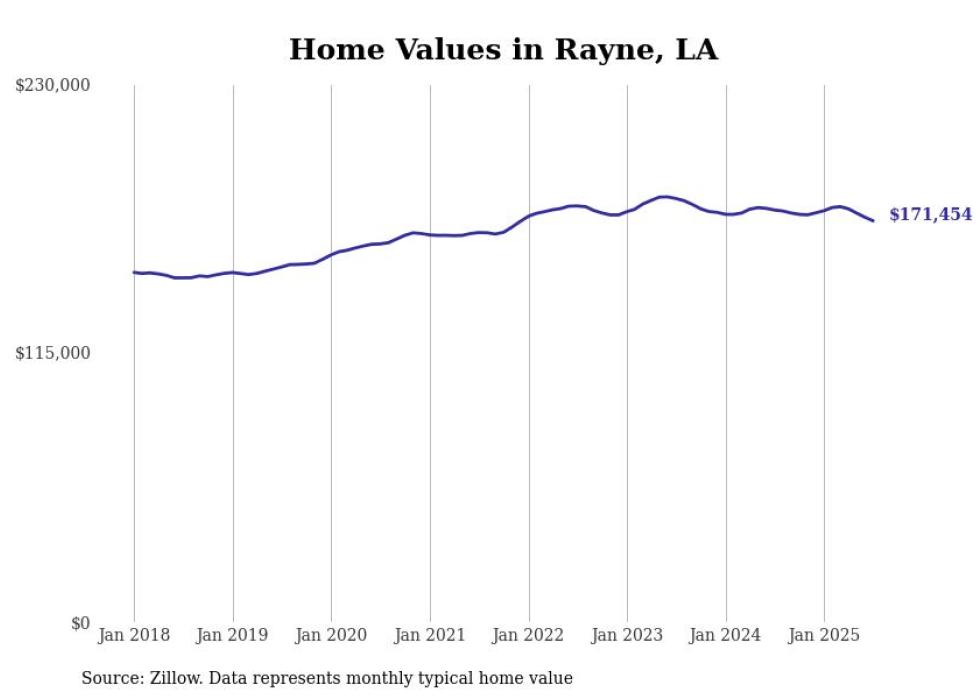 Stacker compiled a list of cities with the most expensive homes in the Lafayette metro area using data from Zillow. Charts show the monthly typical home value since January 2018. All 24 cities and towns with data available were included in the list.
