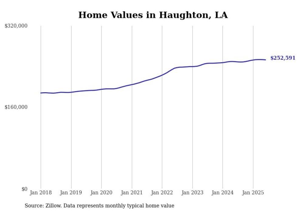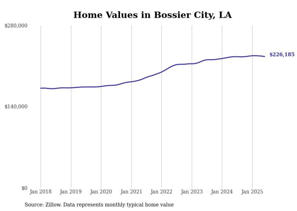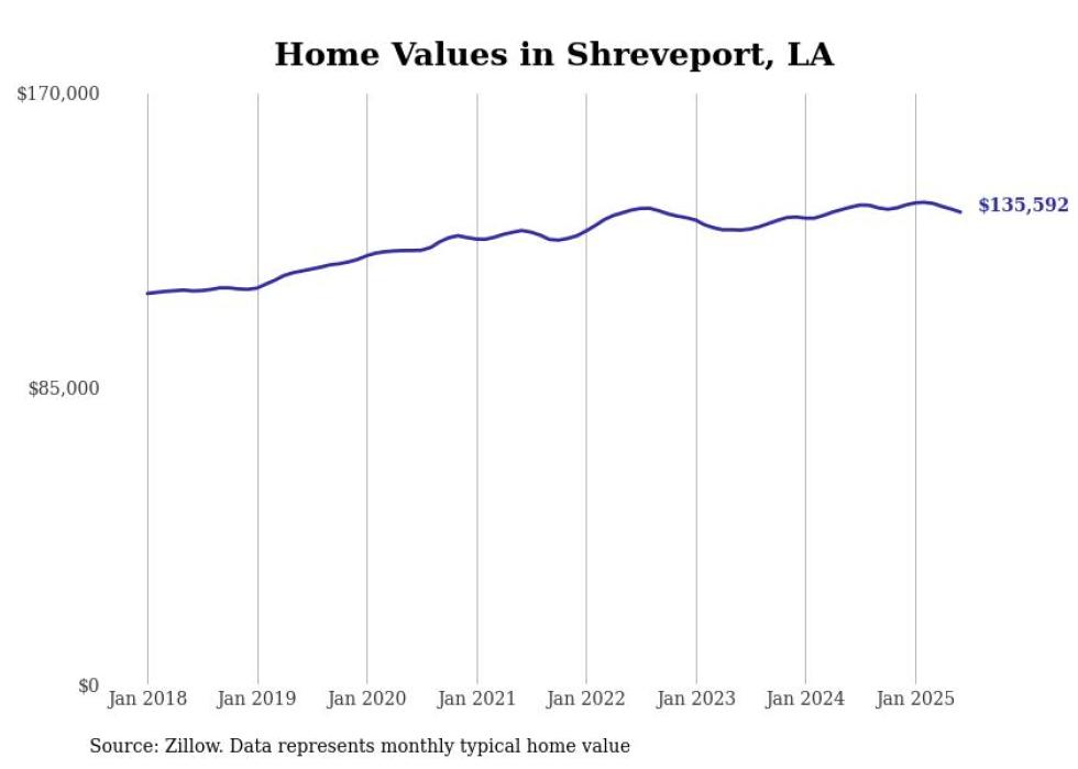 Stacker compiled a list of cities with the most expensive homes in the Shreveport-Bossier City, LA metro area using data from Zillow. Charts show the monthly typical home value since January 2018.
