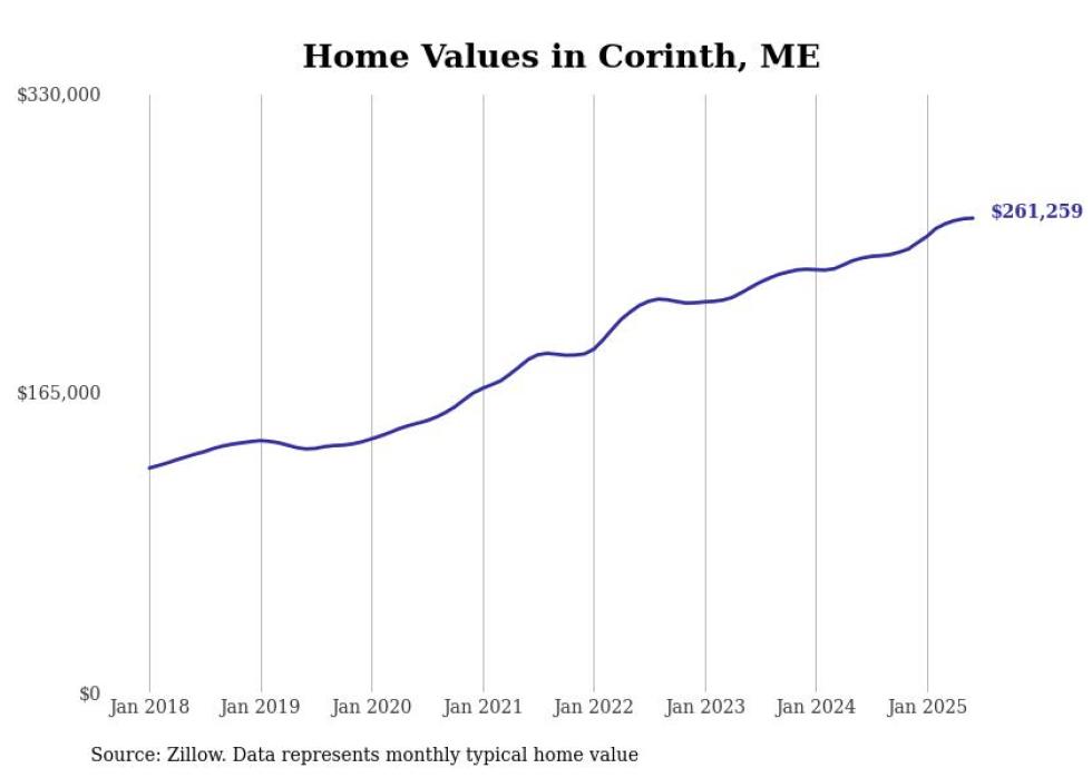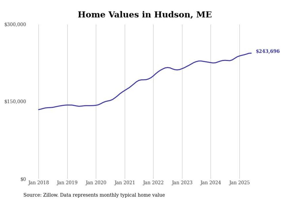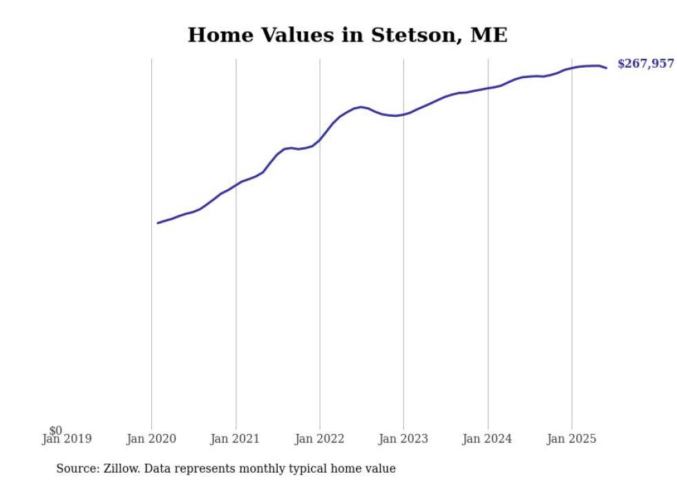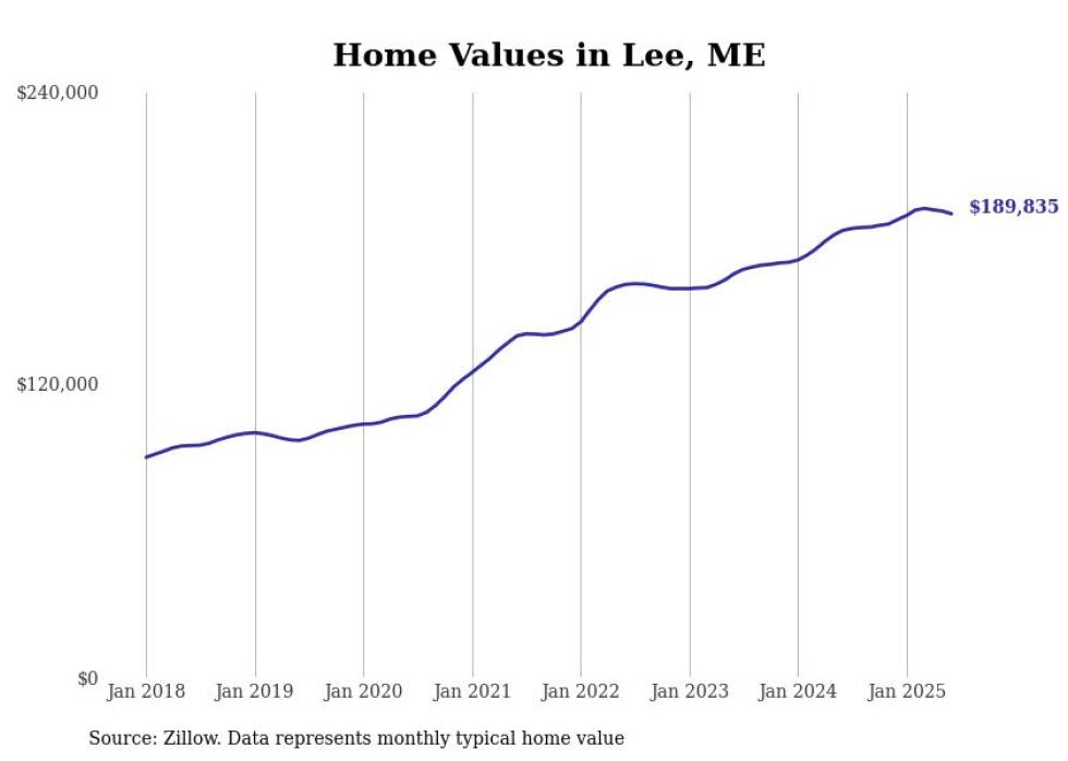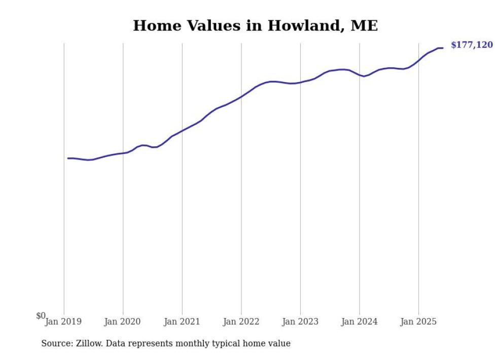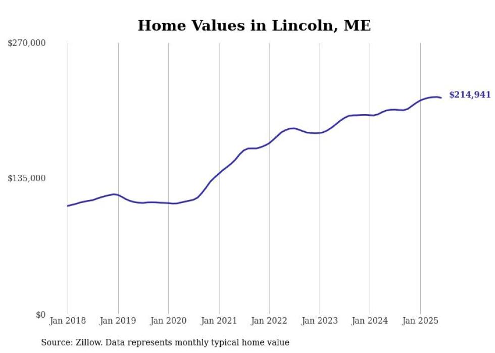 Stacker compiled a list of cities with the most expensive homes in the Bangor, ME metro area using data from Zillow. Charts show the monthly typical home value since January 2018.