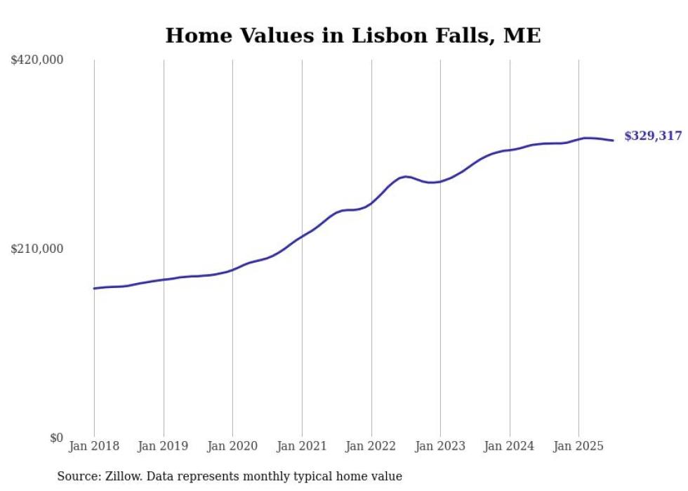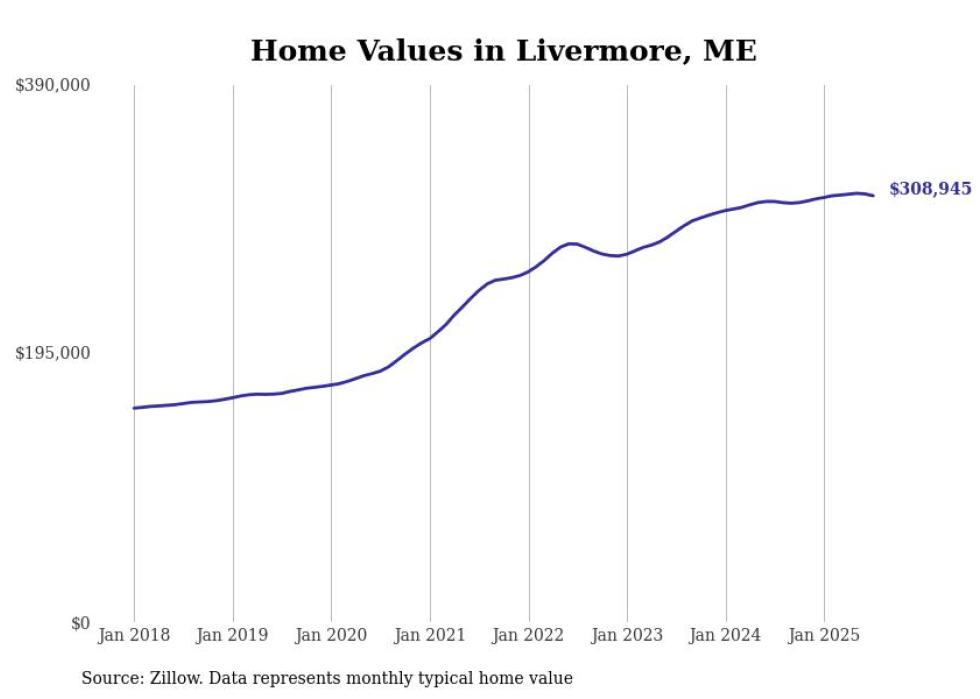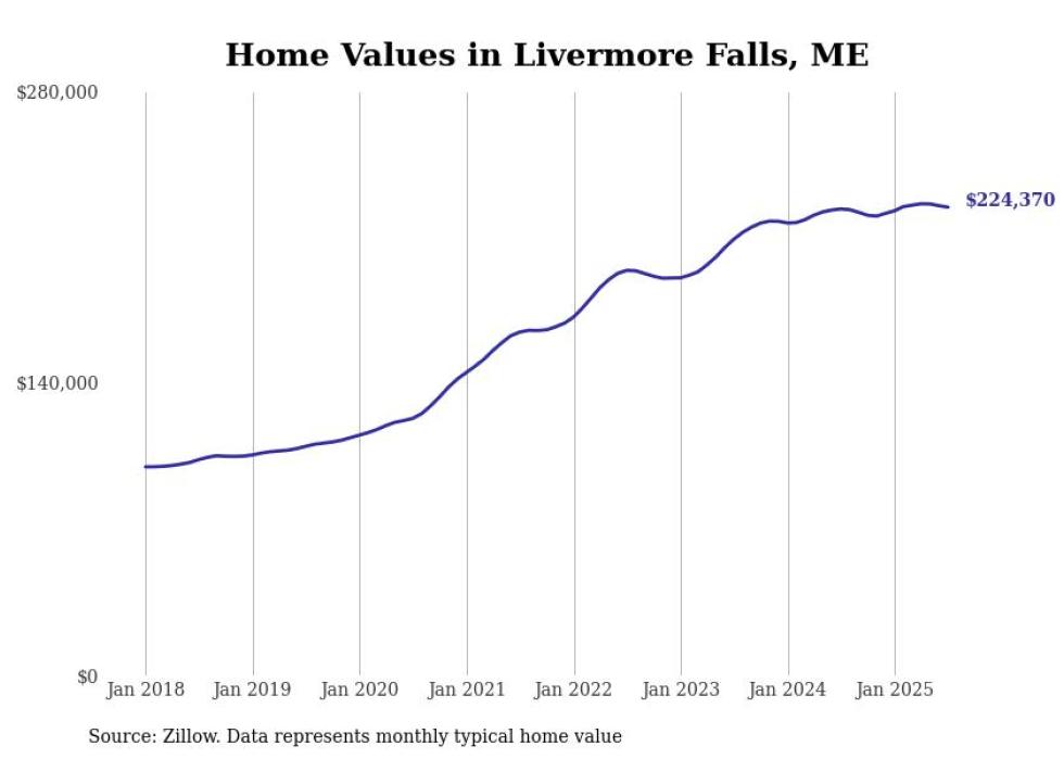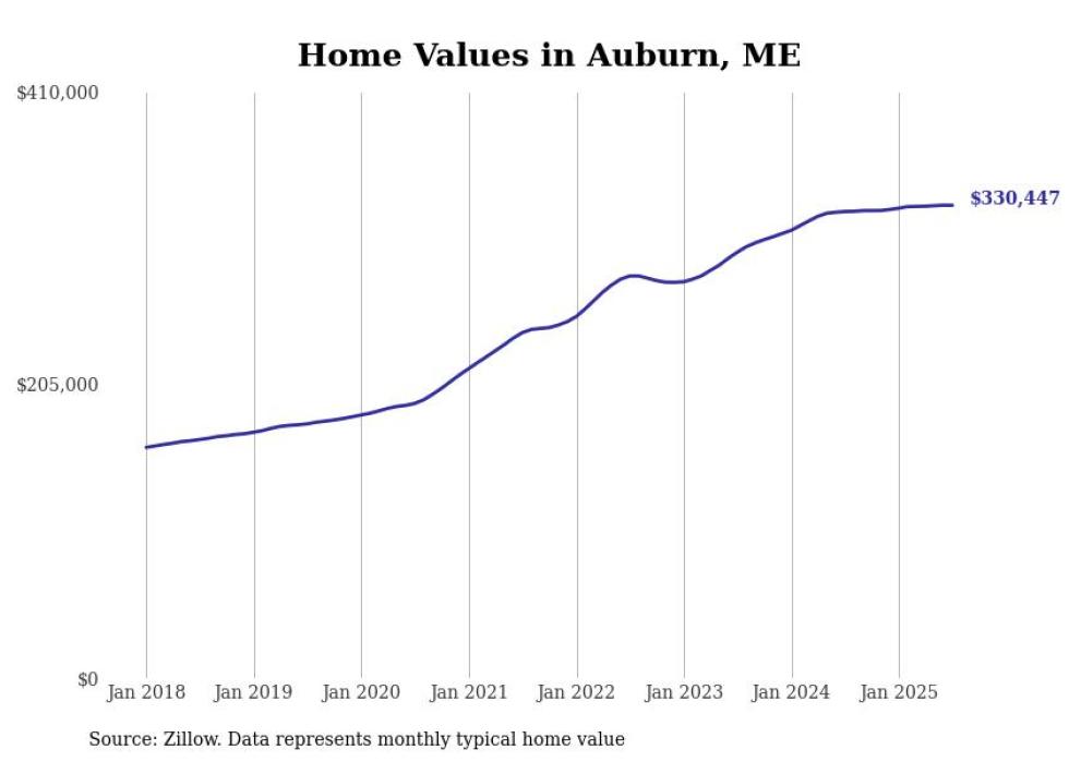 Stacker compiled a list of cities with the most expensive homes in the Lewiston, Maine metro area using data from Zillow. Charts show the monthly typical home value since January 2018. All 15 cities and towns with data available were included in the list.