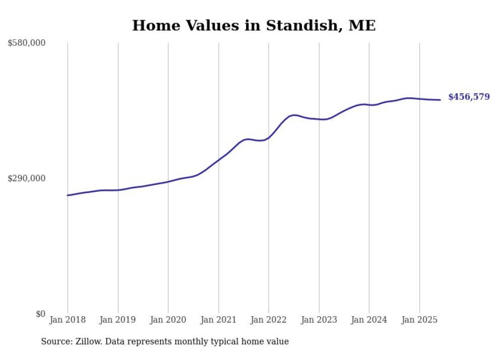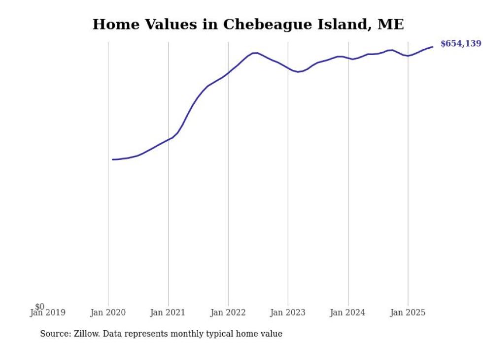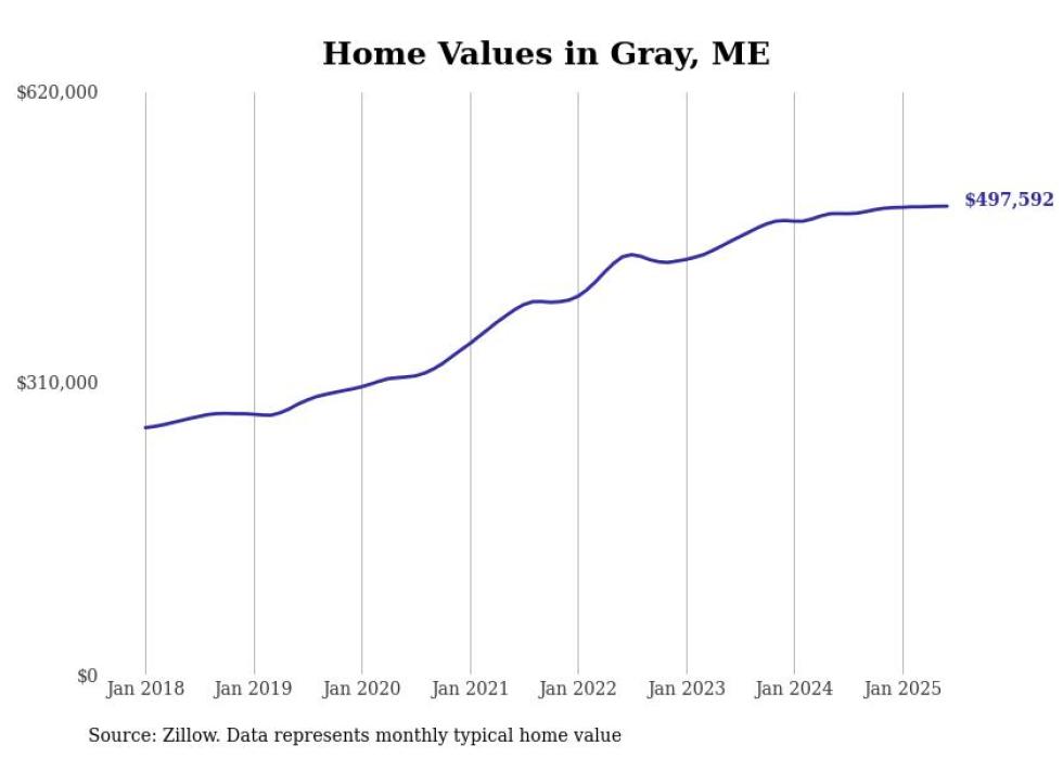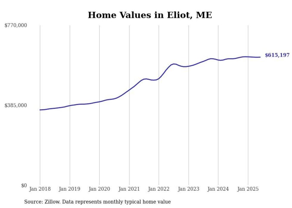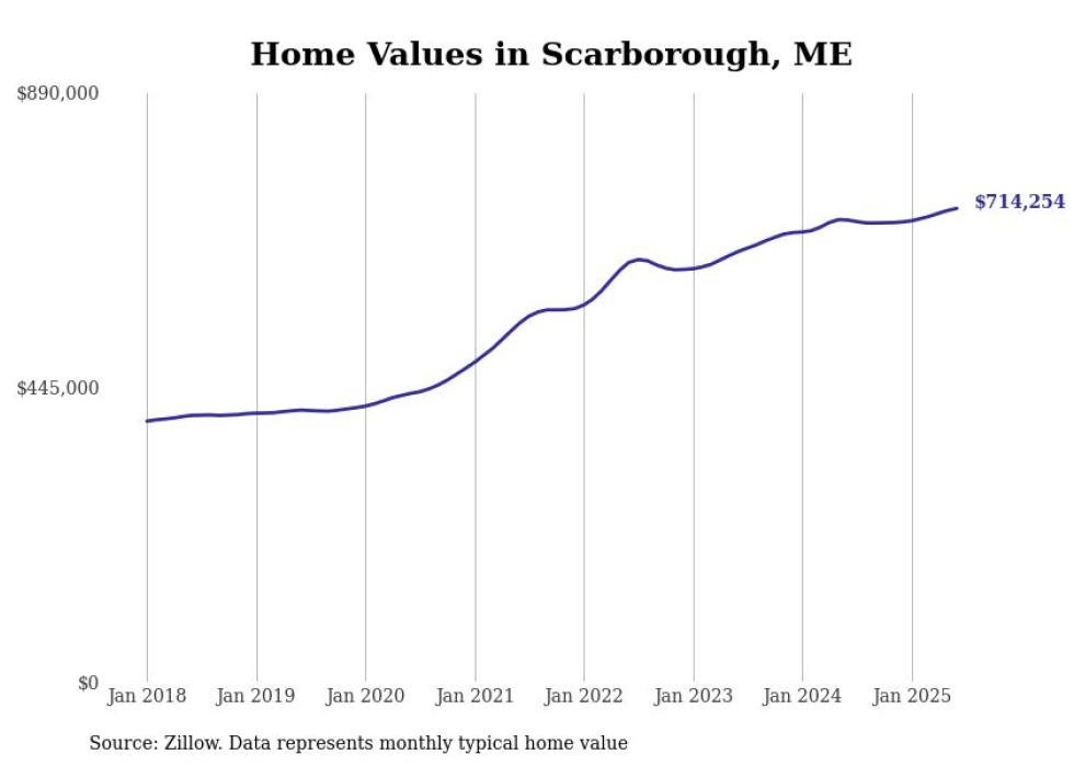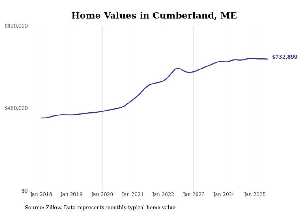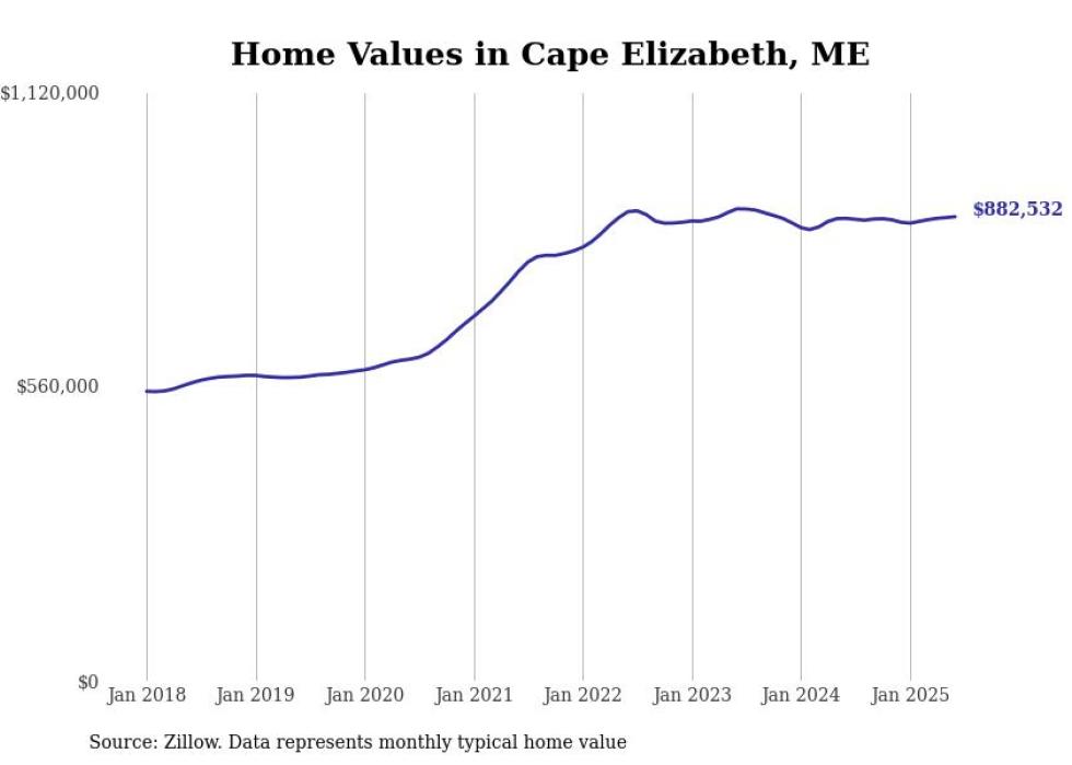 Stacker compiled a list of cities with the most expensive homes in the Portland-South Portland, ME metro area using data from Zillow. Charts show the monthly typical home value since January 2018.