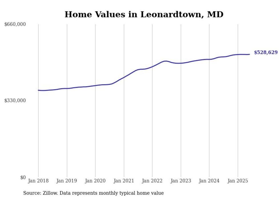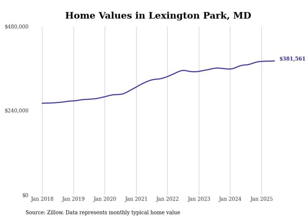Stacker compiled a list of cities with the most expensive homes in the California-Lexington Park, MD metro area using data from Zillow. Charts show the monthly typical home value since January 2018.