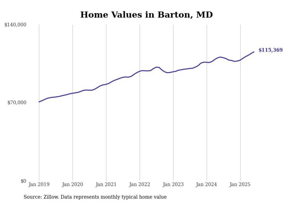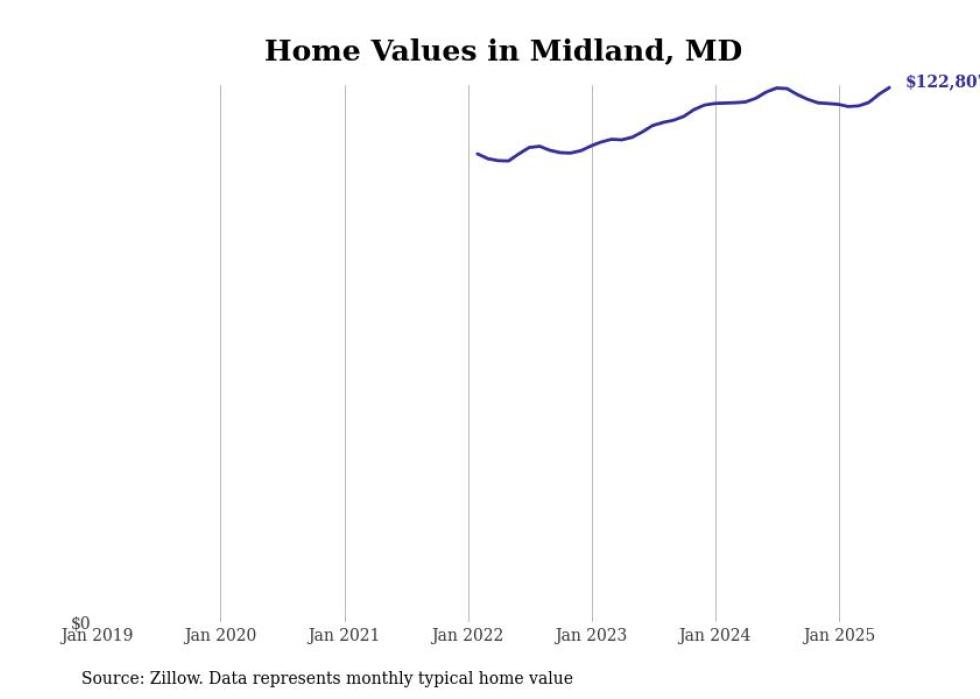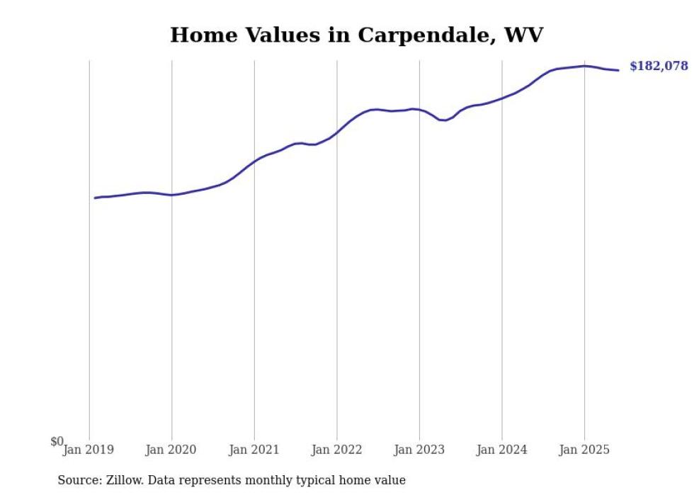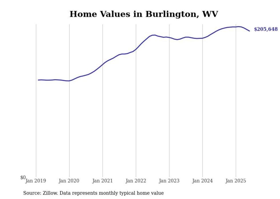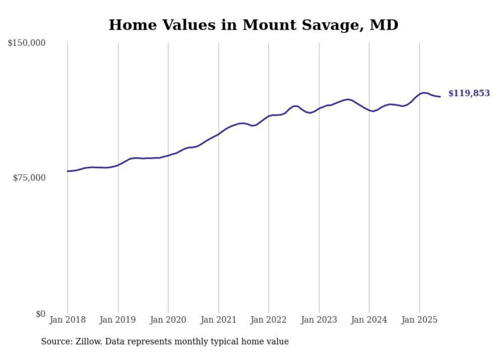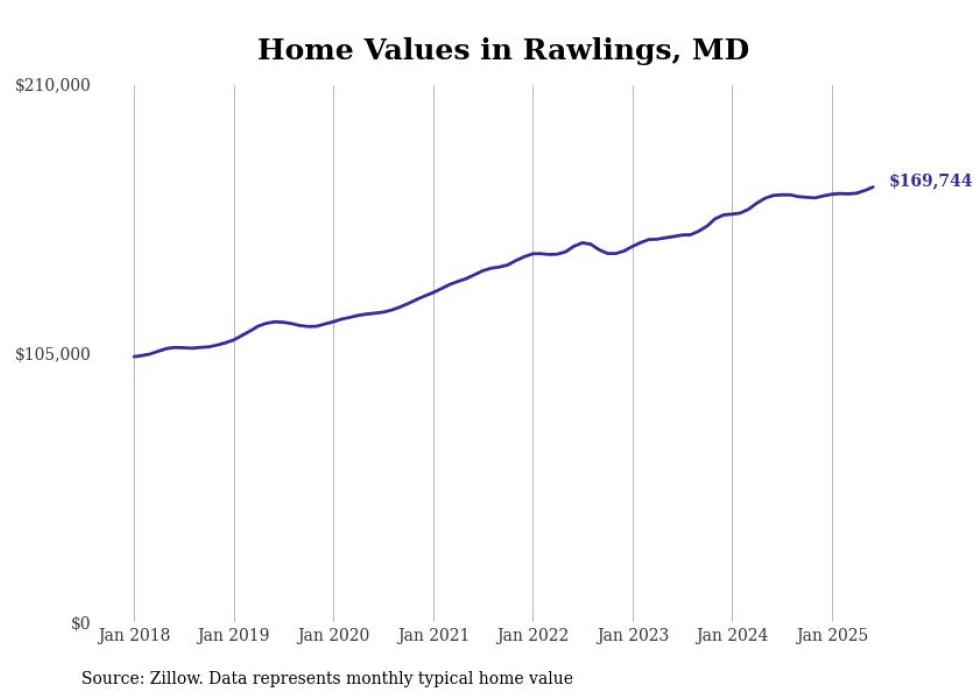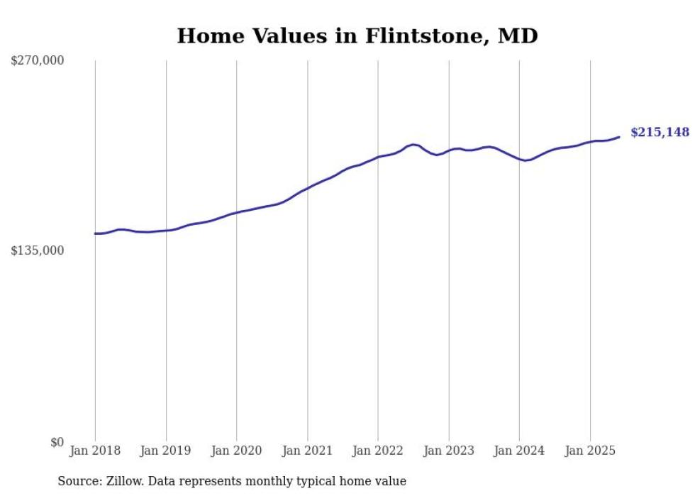 Stacker compiled a list of cities with the most expensive homes in the Cumberland, MD-WV metro area using data from Zillow. Charts show the monthly typical home value since January 2018.