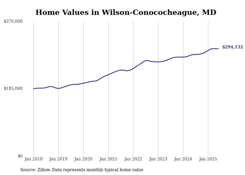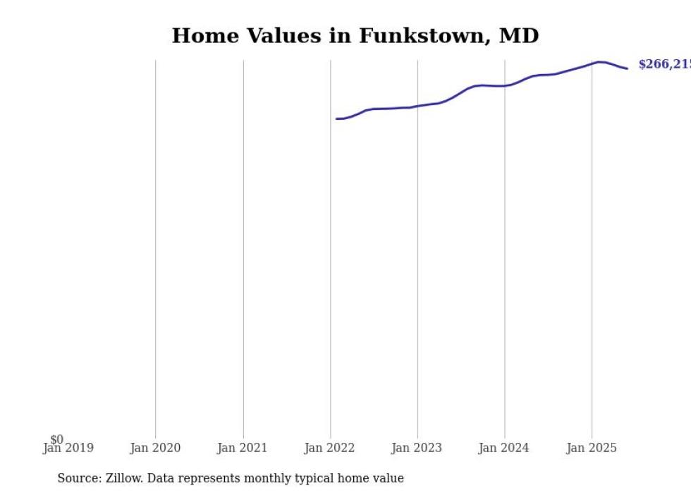 Stacker compiled a list of cities with the most expensive homes in the Hagerstown-Martinsburg, MD-WV metro area using data from Zillow. Charts show the monthly typical home value since January 2018.