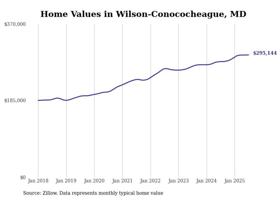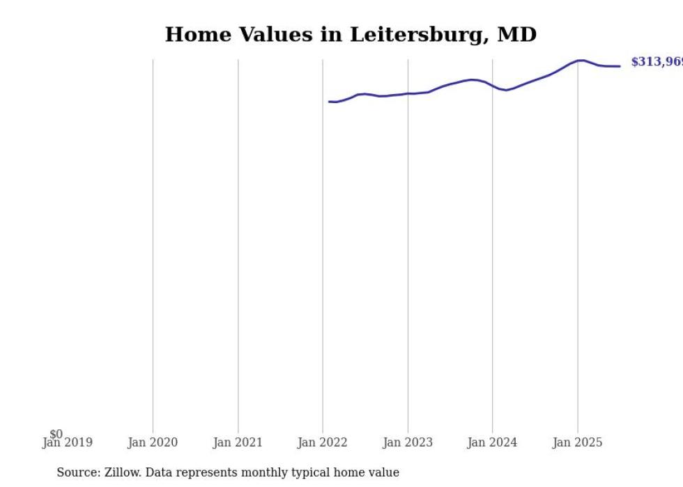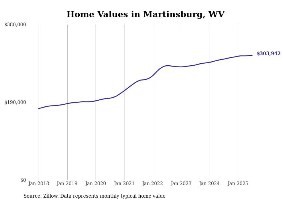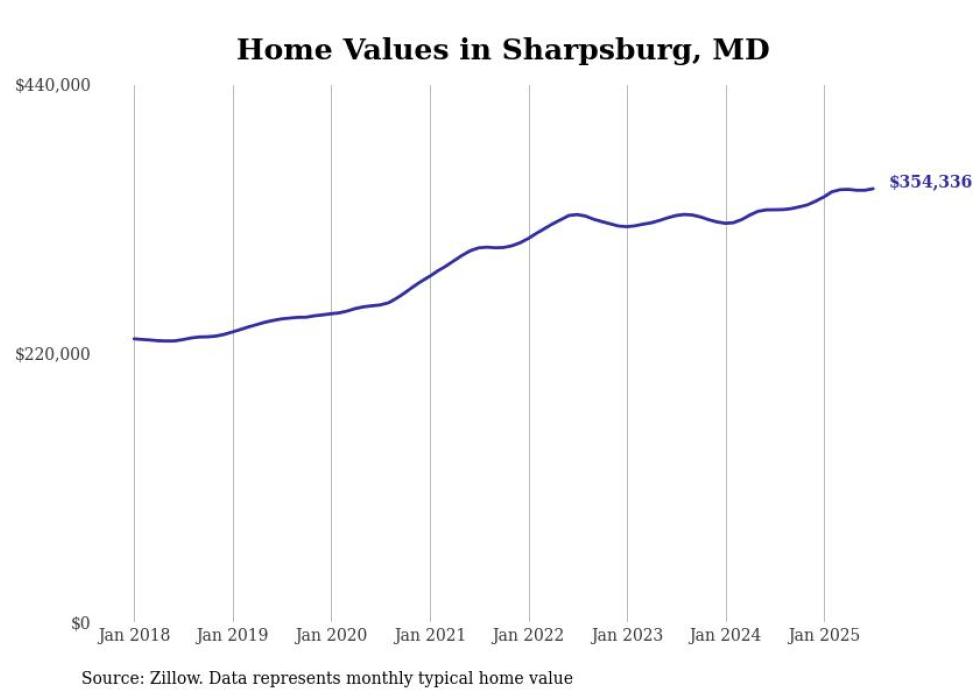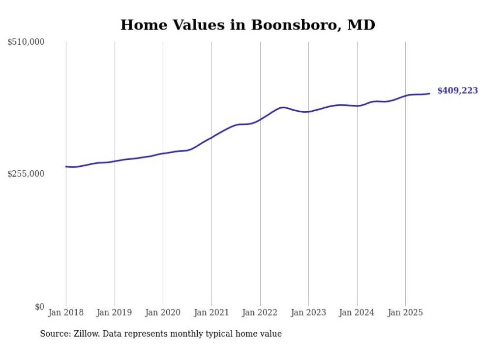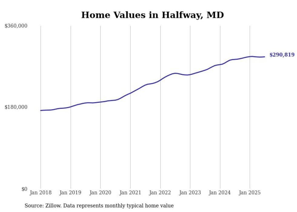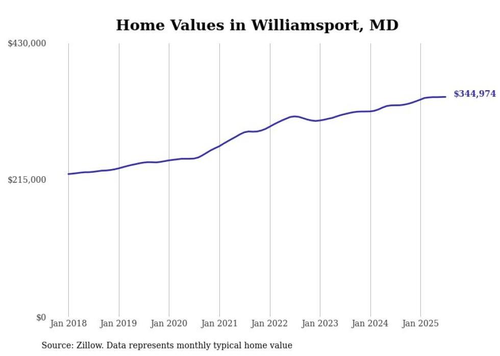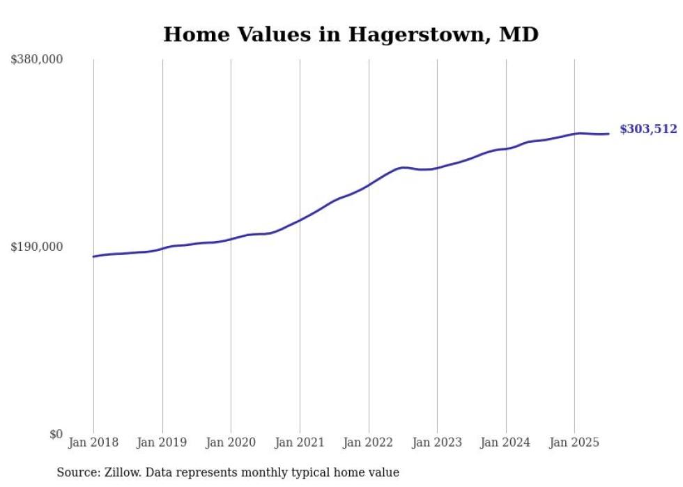 Stacker compiled a list of cities with the most expensive homes in the Hagerstown metro area using data from Zillow. Charts show the monthly typical home value since January 2018. Data was available for 30 cities and towns.