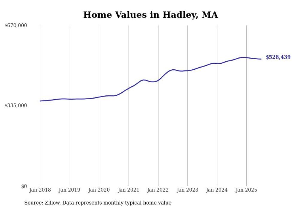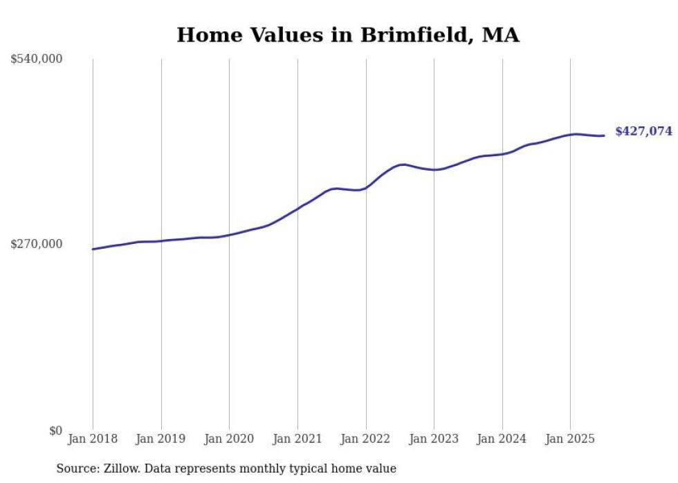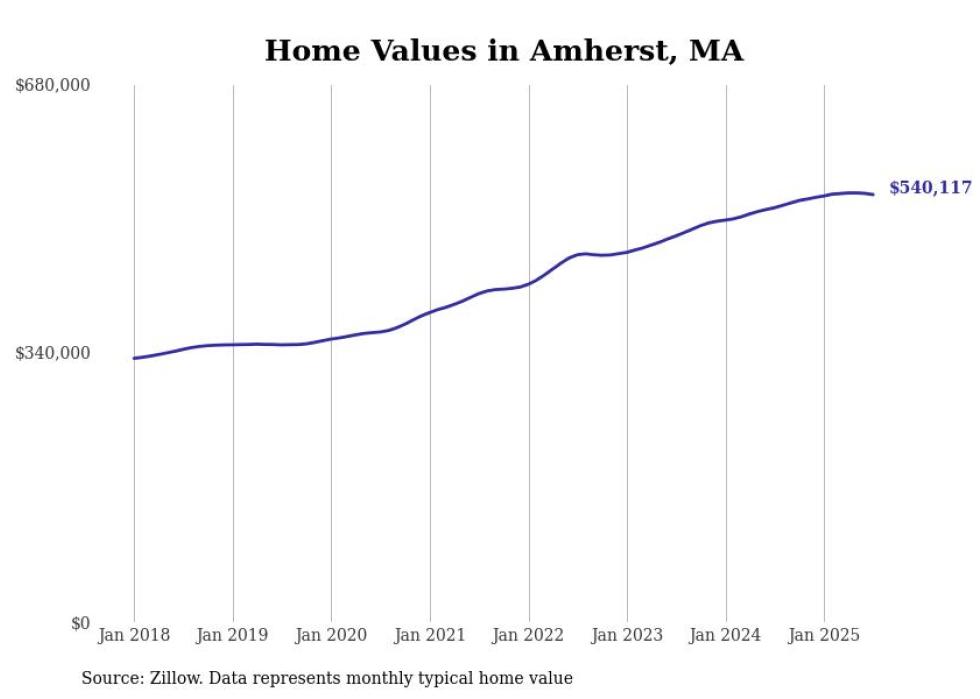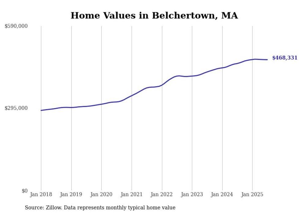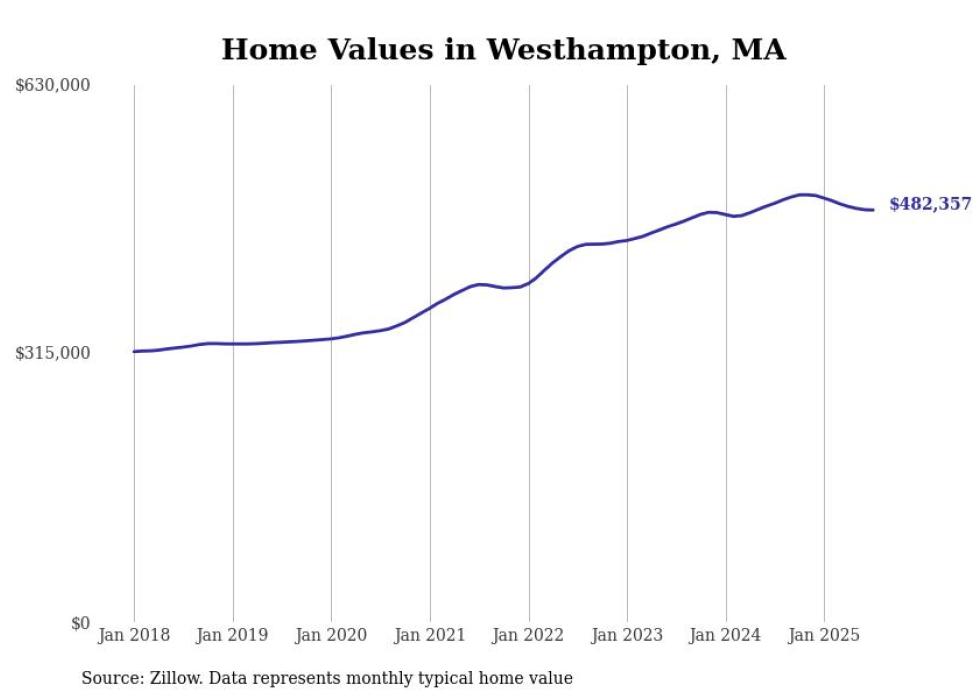 Stacker compiled a list of cities with the most expensive homes in the Springfield, Massachusetts metro area using data from Zillow. Charts show the monthly typical home value since January 2018. Data was available for 71 cities and towns.