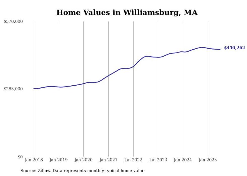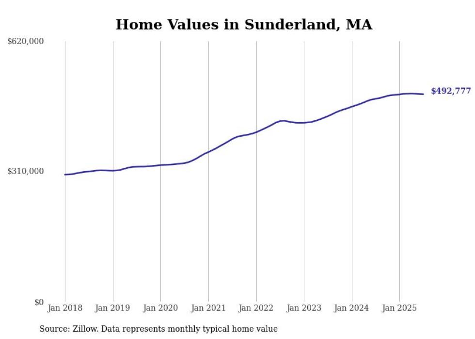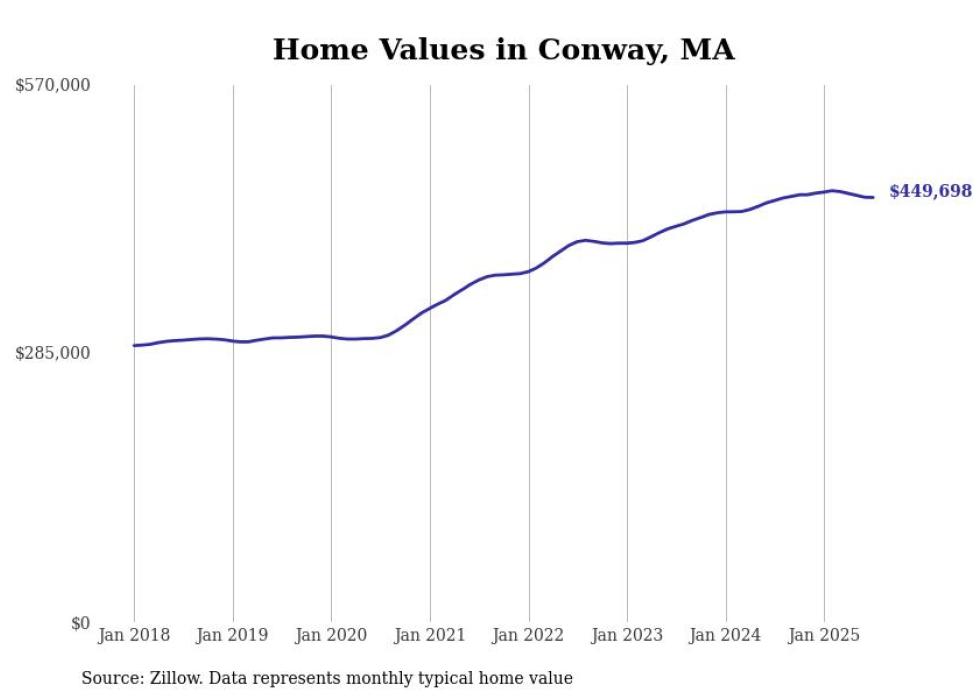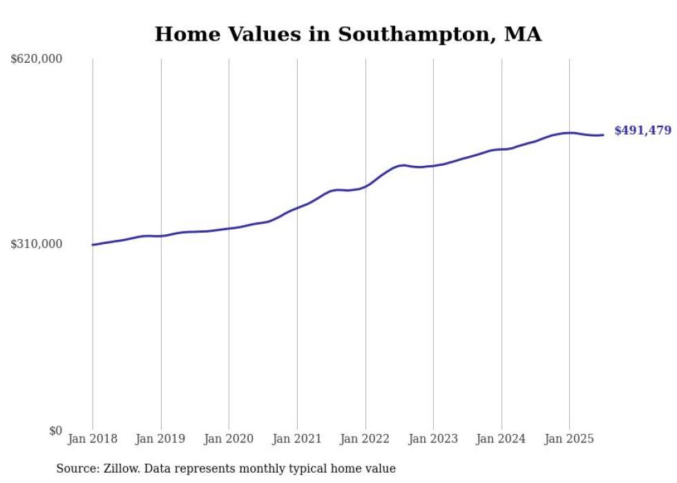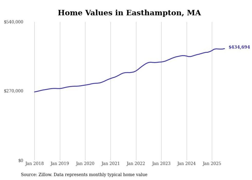 Stacker compiled a list of cities with the most expensive homes in the Springfield, Massachusetts metro area using data from Zillow. Charts show the monthly typical home value since January 2018. Data was available for 71 cities and towns.