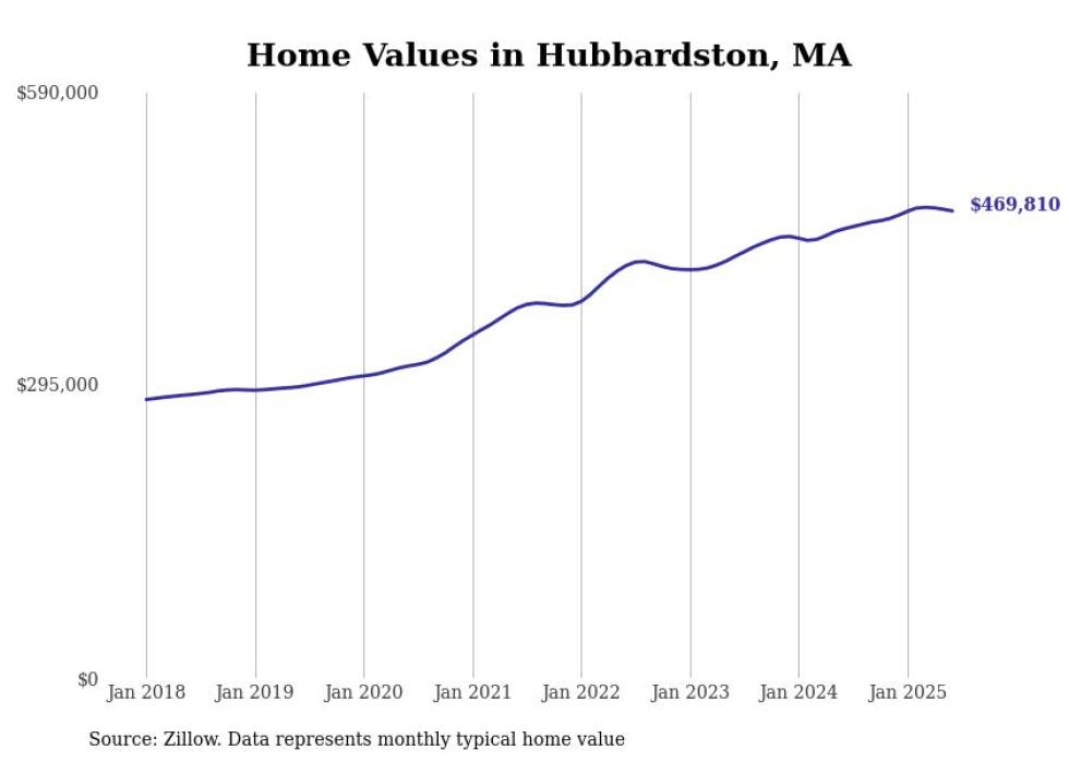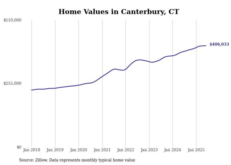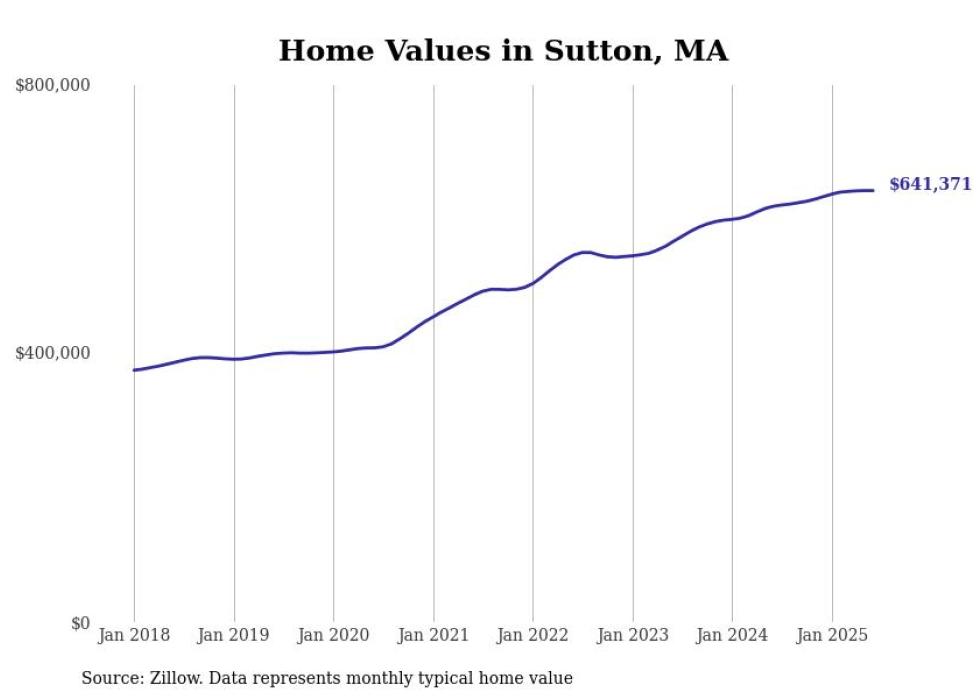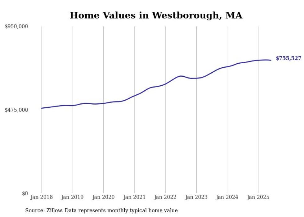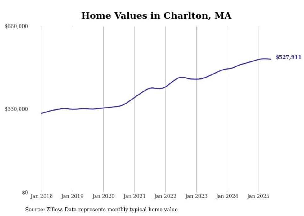 Stacker compiled a list of cities with the most expensive homes in the Worcester, MA-CT metro area using data from Zillow. Charts show the monthly typical home value since January 2018.