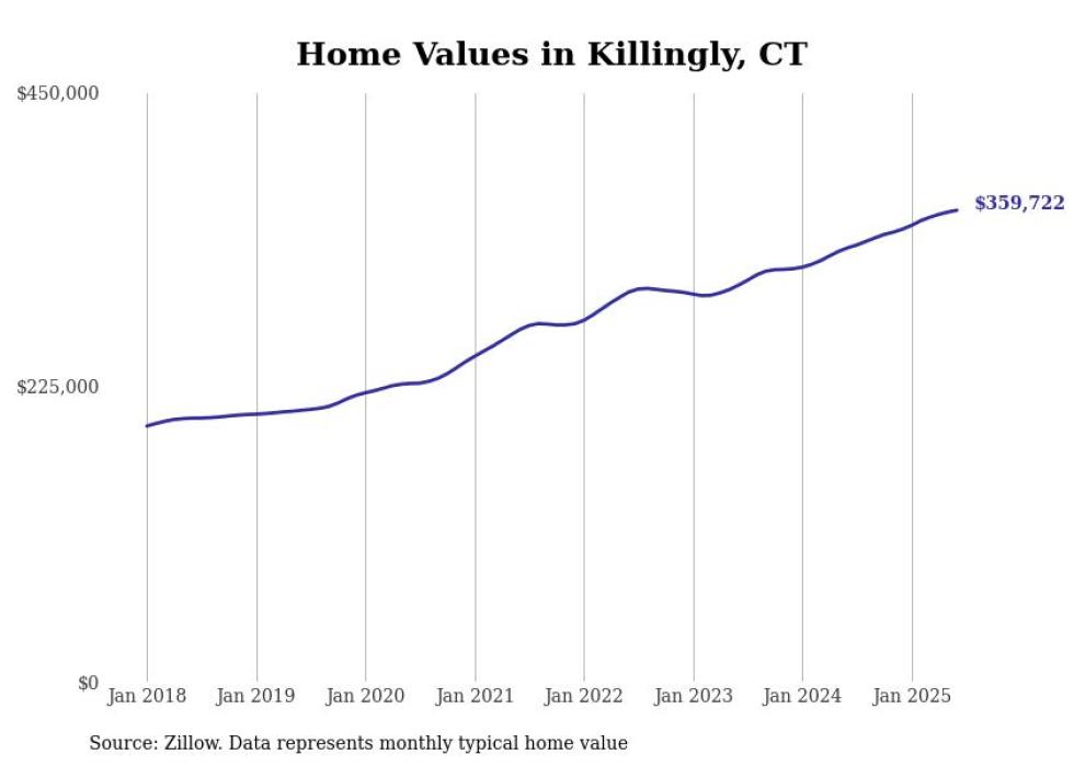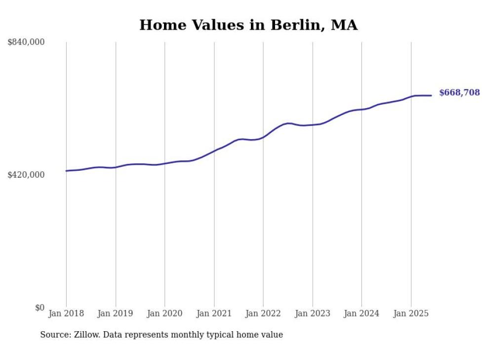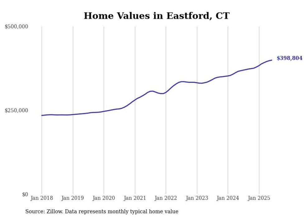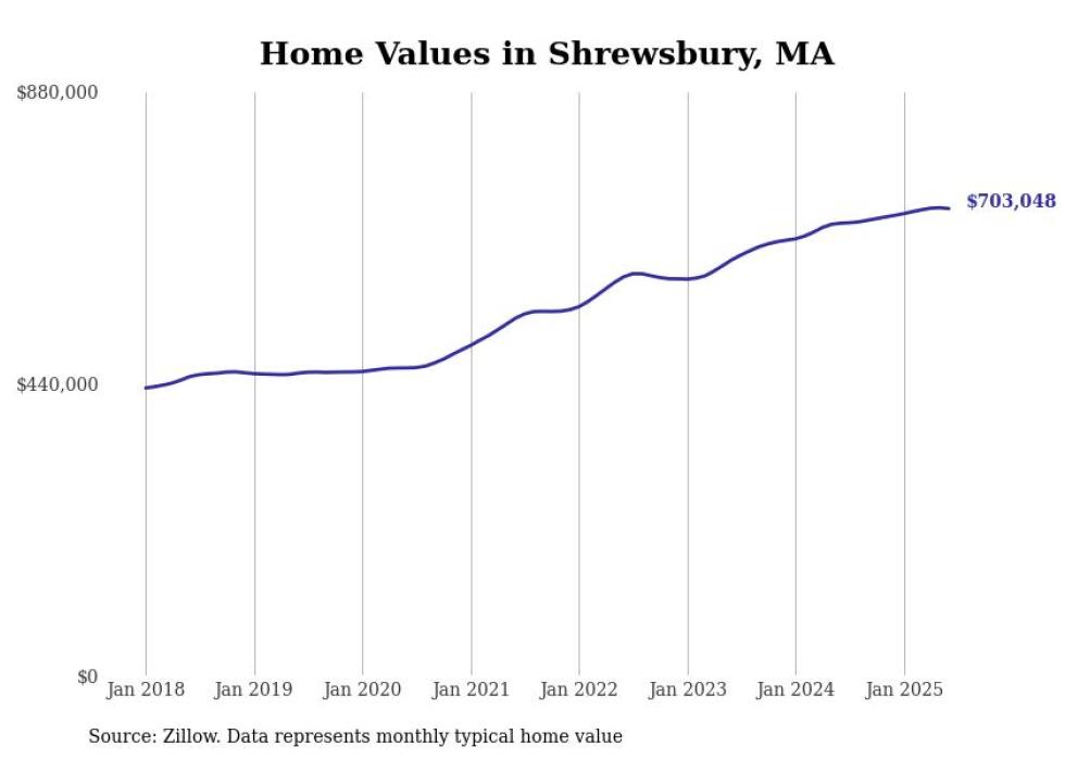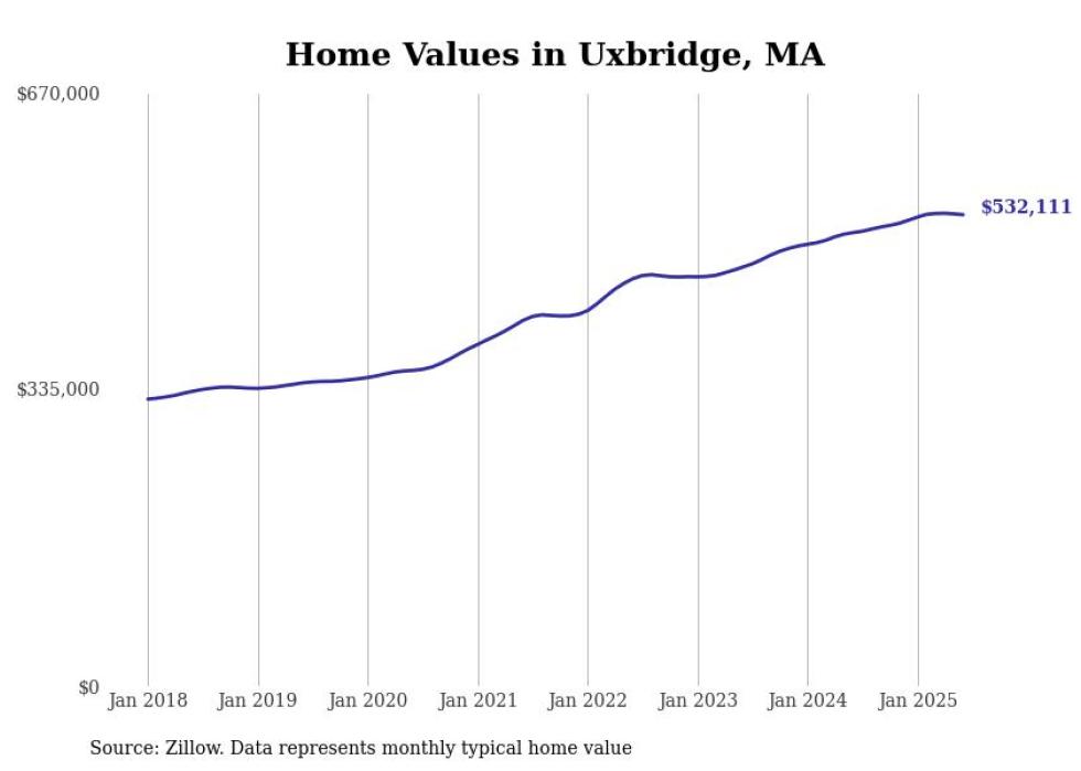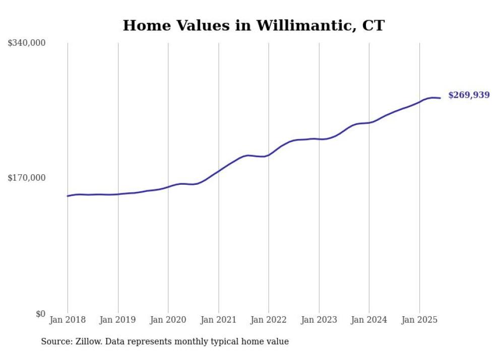 Stacker compiled a list of cities with the most expensive homes in the Worcester, MA-CT metro area using data from Zillow. Charts show the monthly typical home value since January 2018.