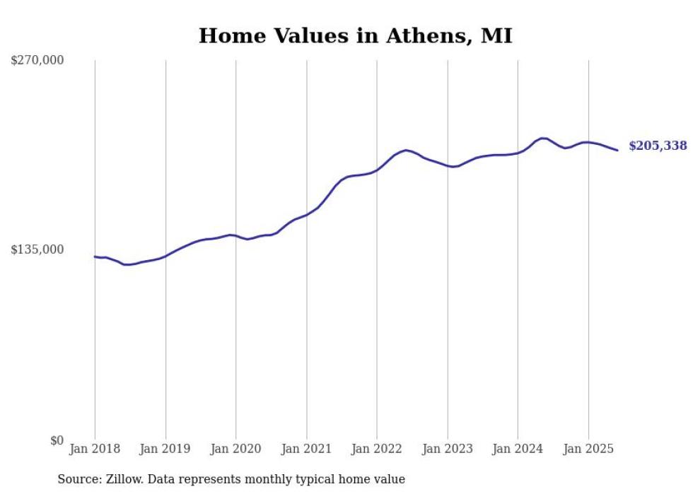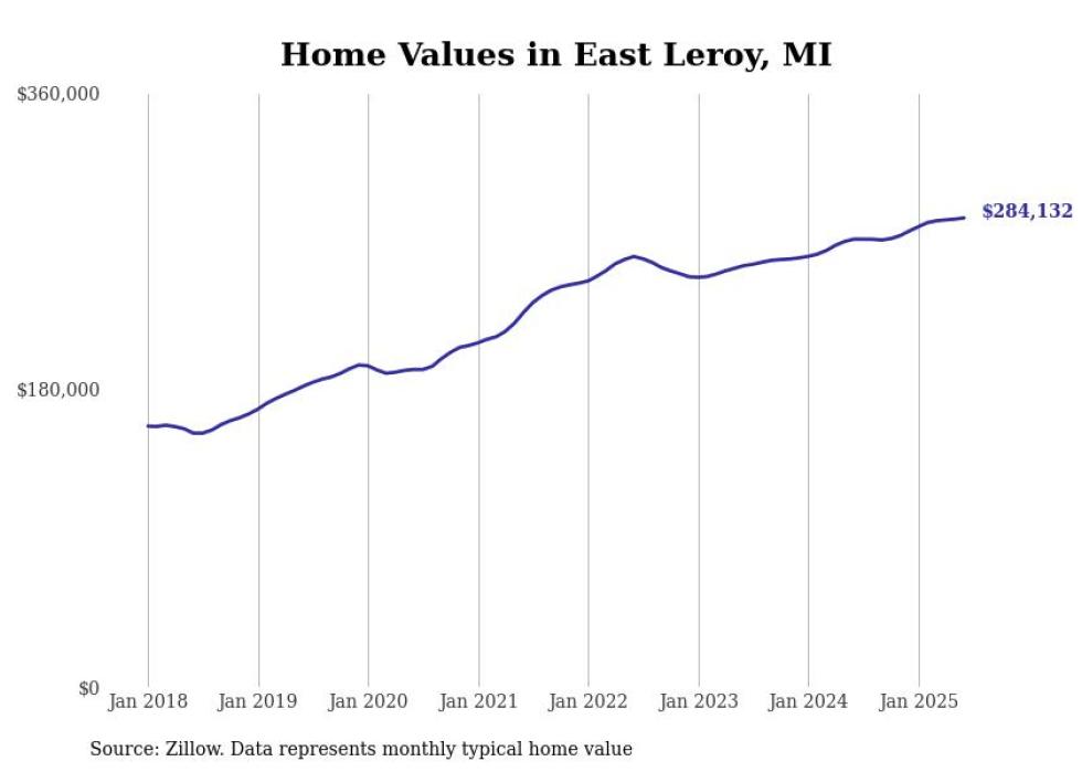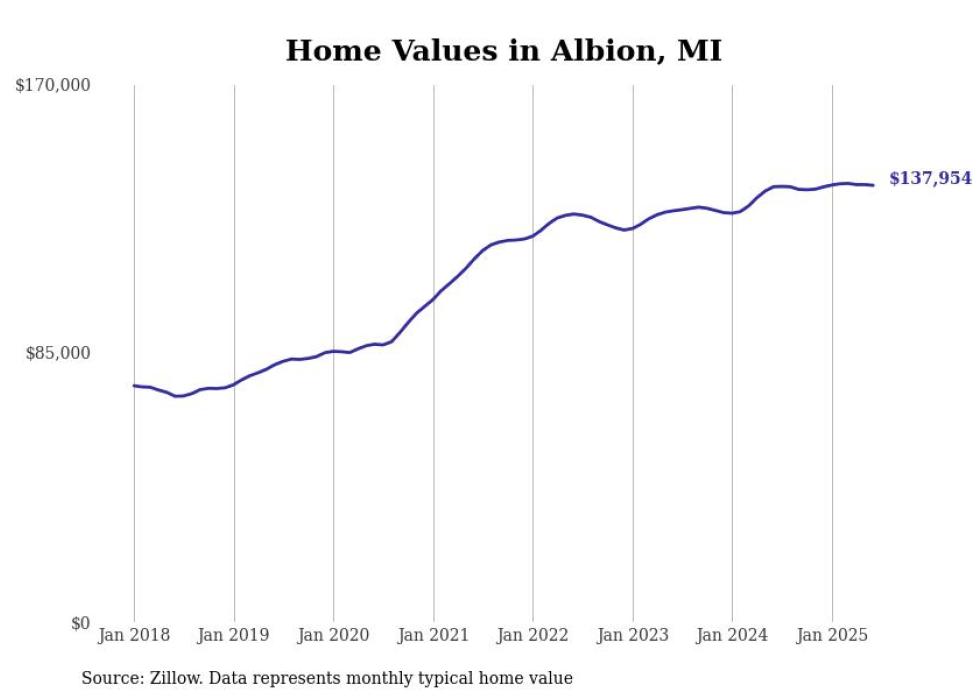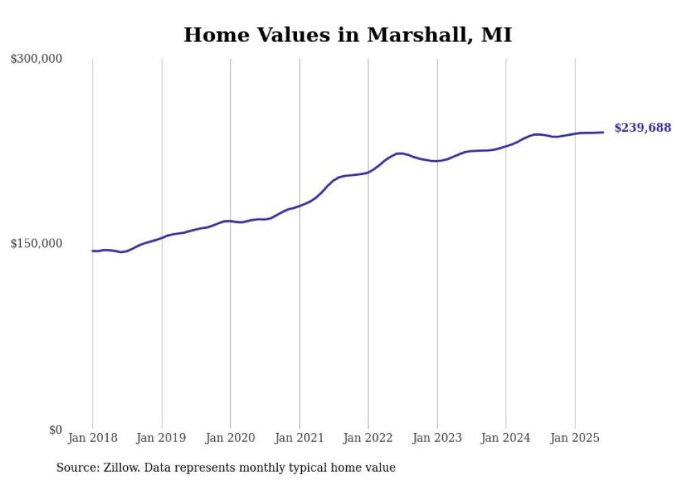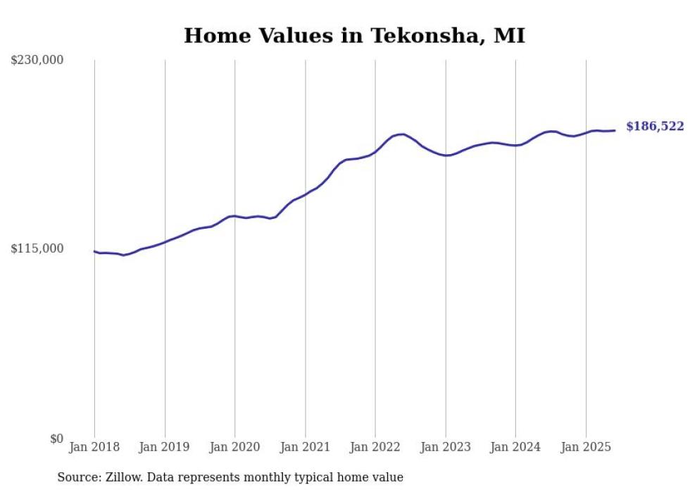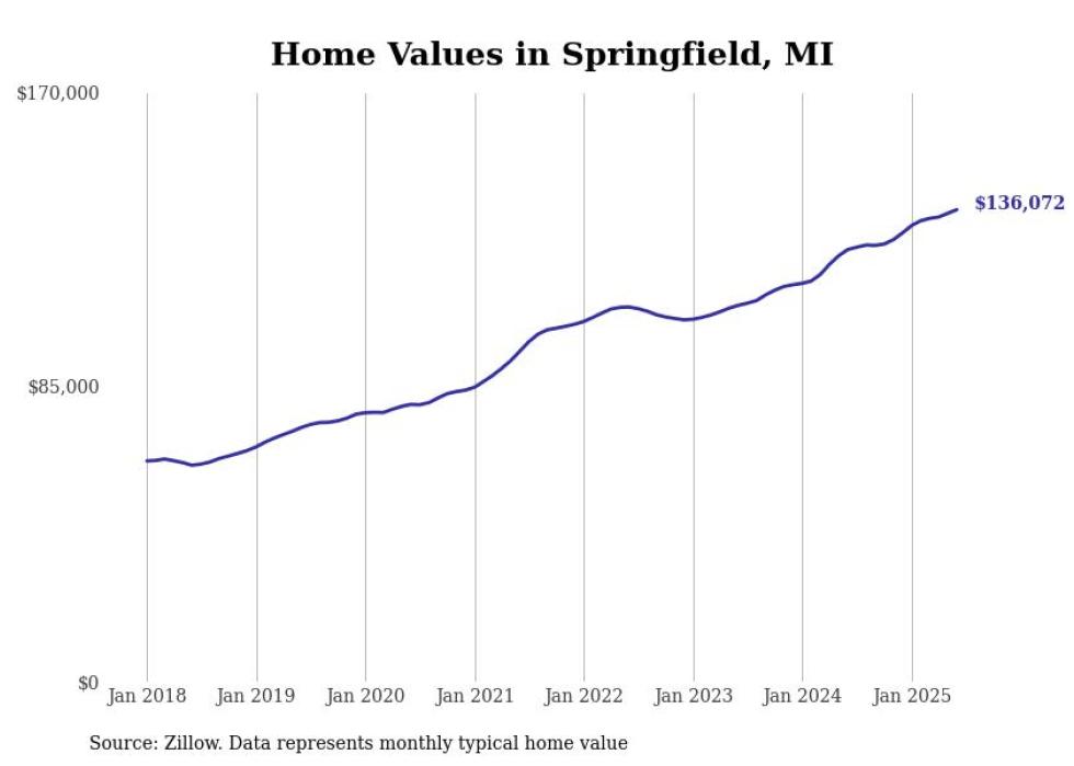 Stacker compiled a list of cities with the most expensive homes in the Battle Creek, MI metro area using data from Zillow. Charts show the monthly typical home value since January 2018.
