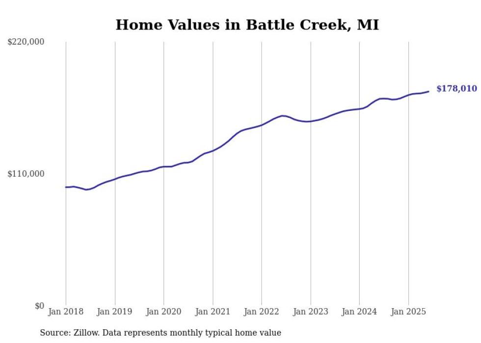 Cities with the fastest-growing home prices in the Battle Creek metro area