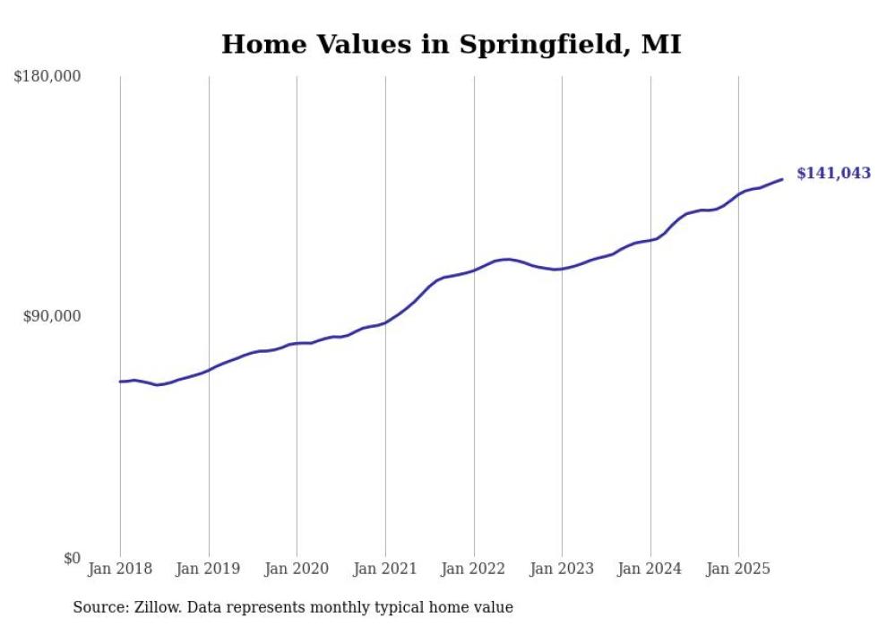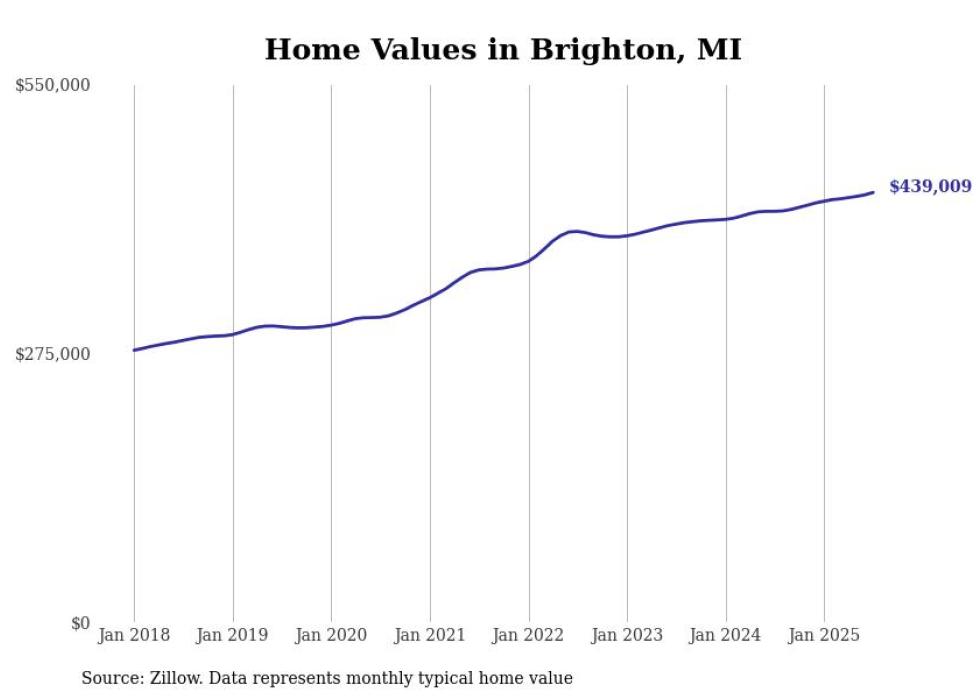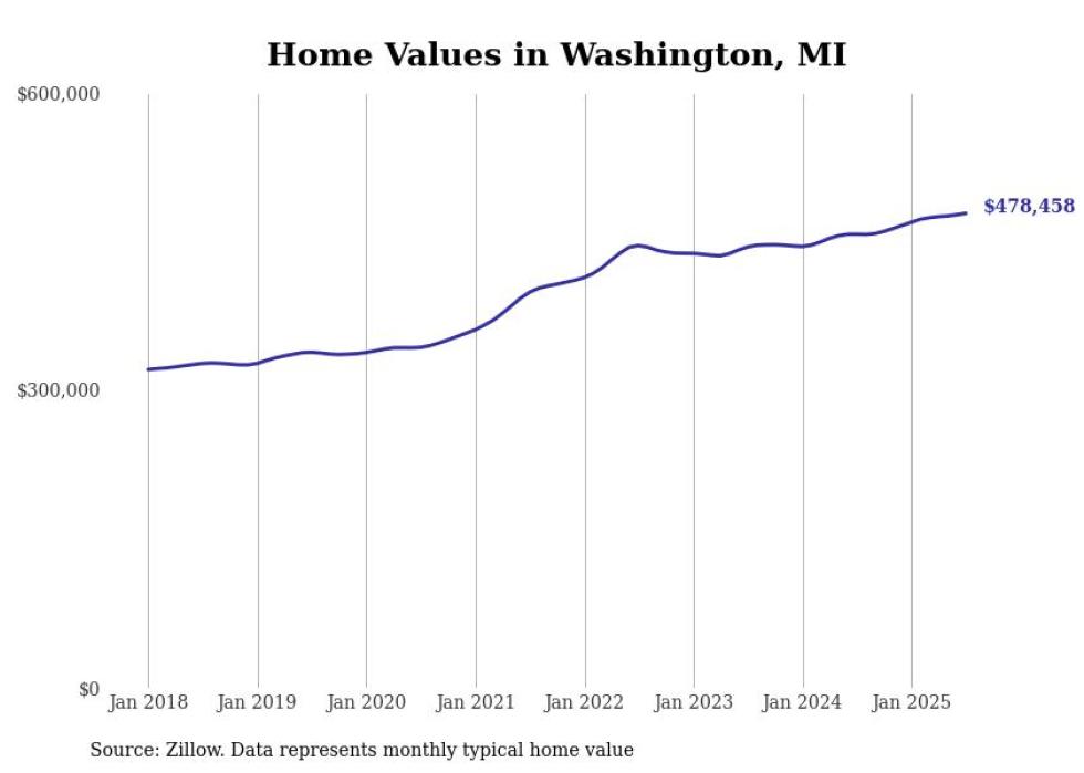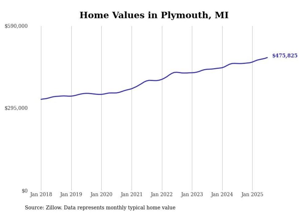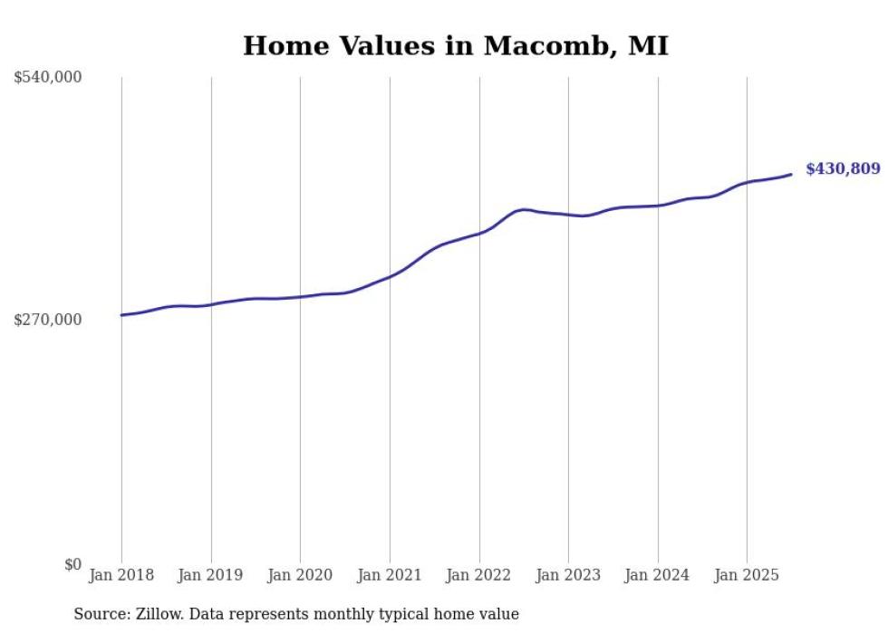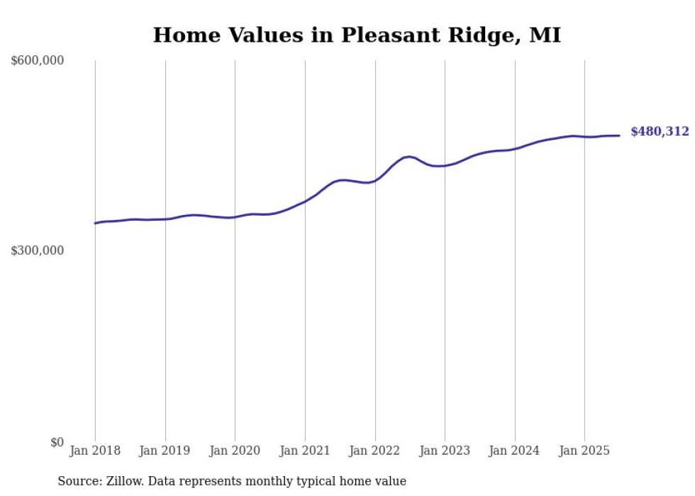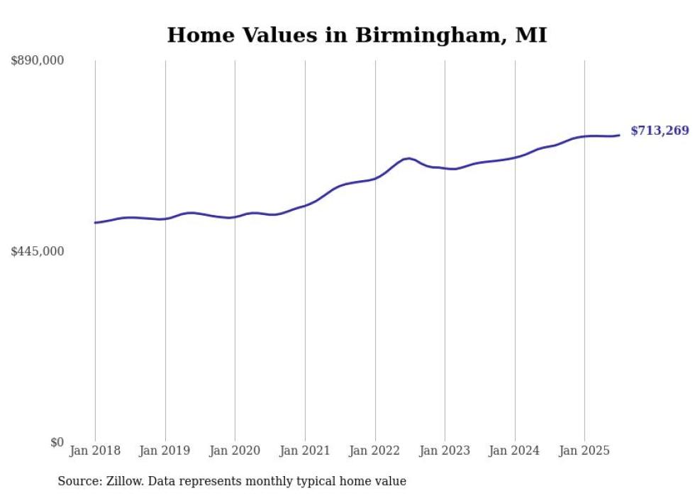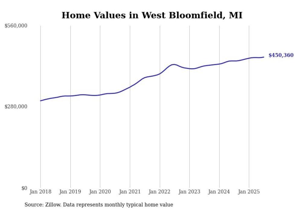 Stacker compiled a list of cities with the most expensive homes in the Detroit metro area using data from Zillow. Charts show the monthly typical home value since January 2018. Data was available for 150 cities and towns.