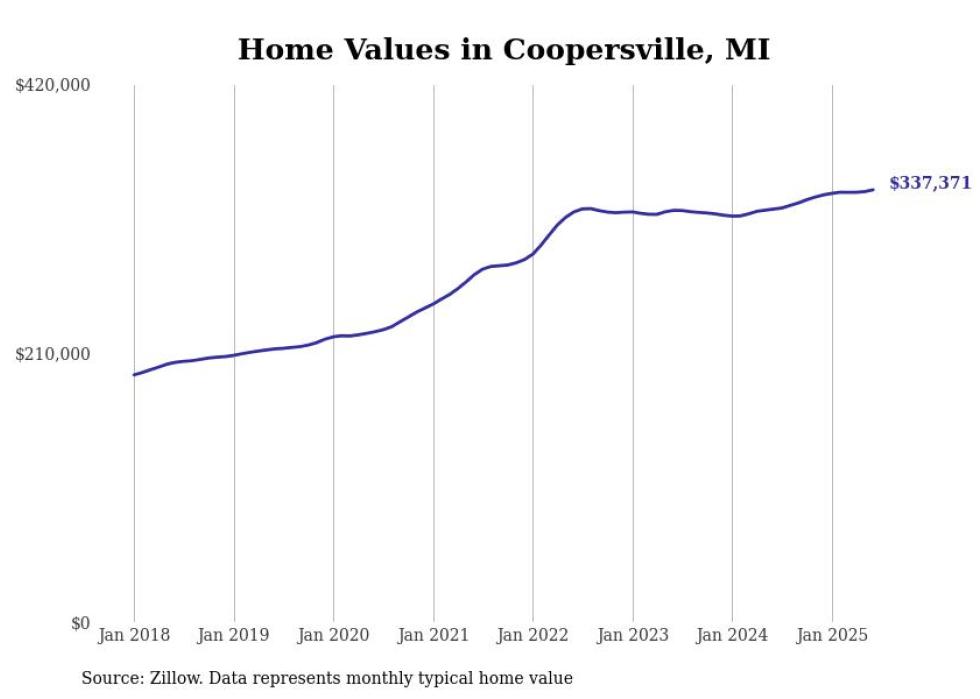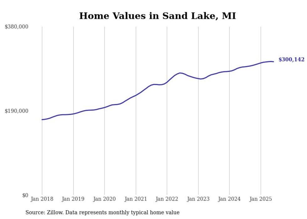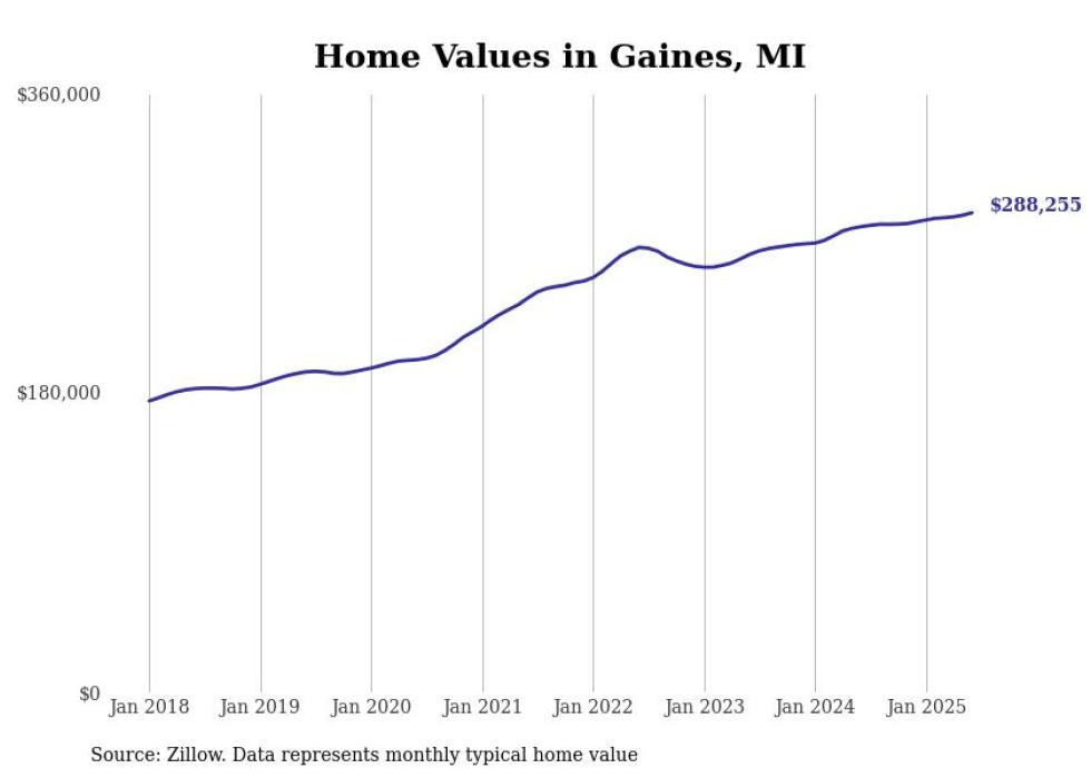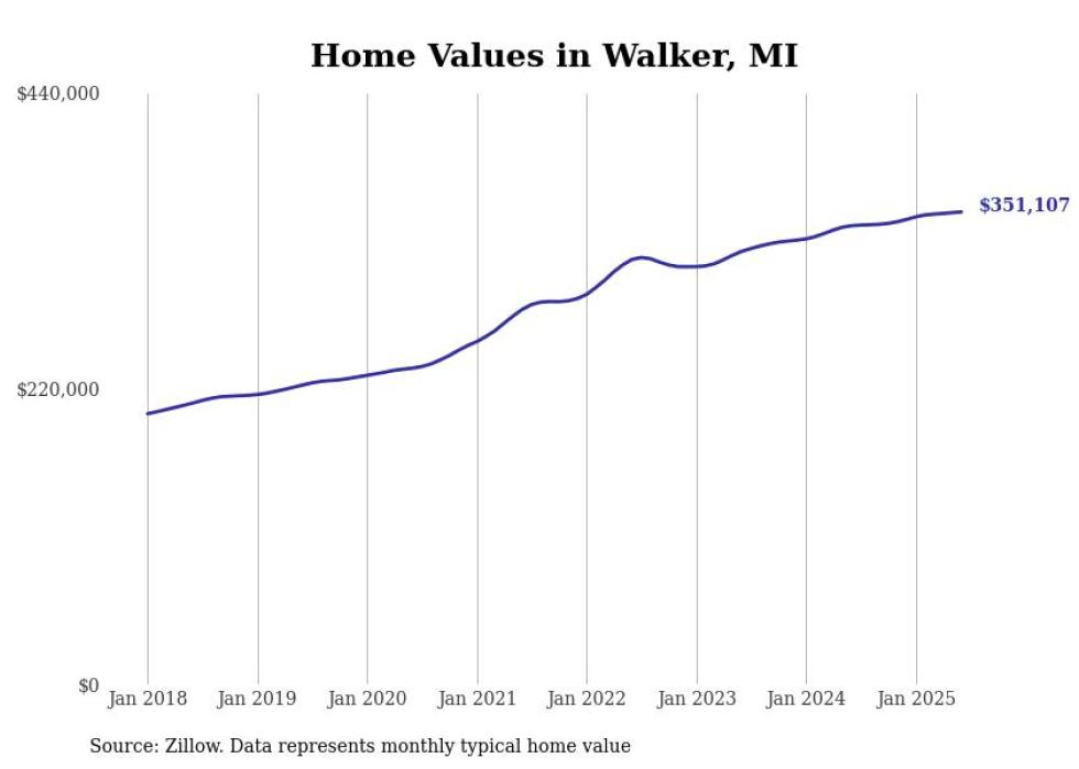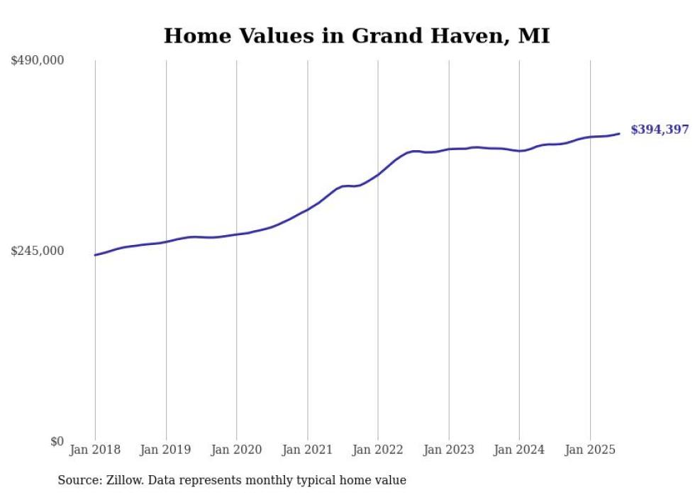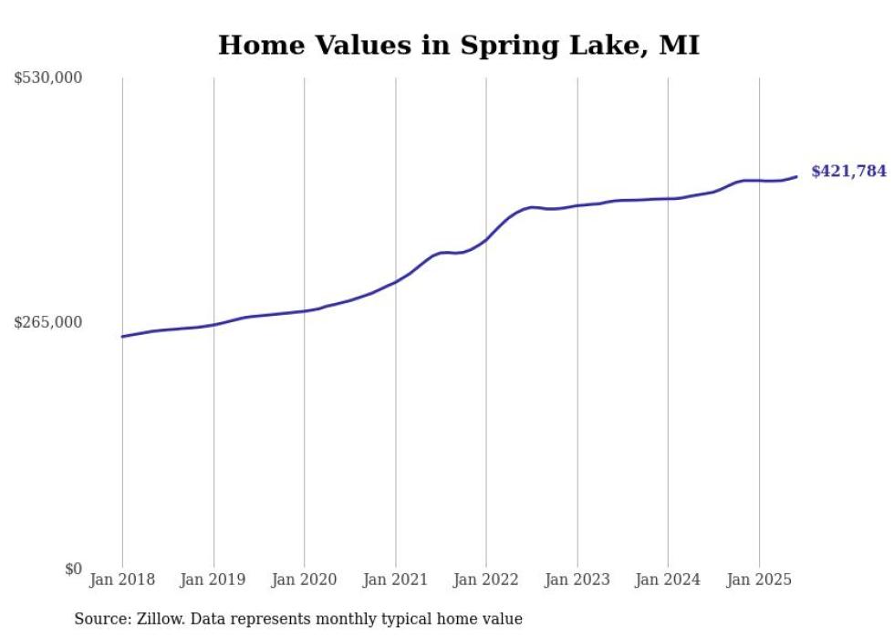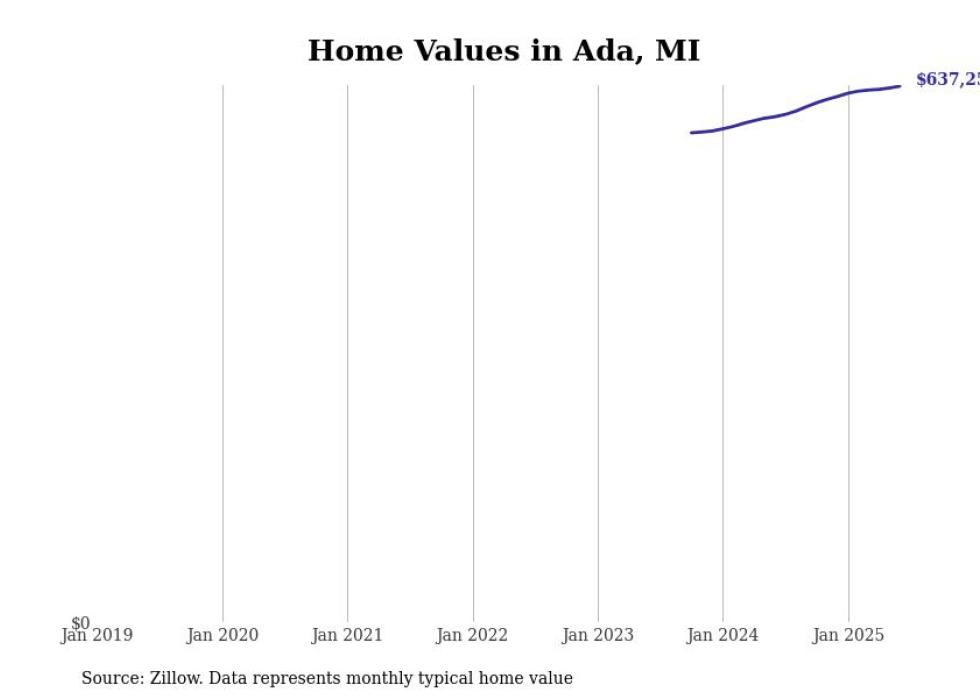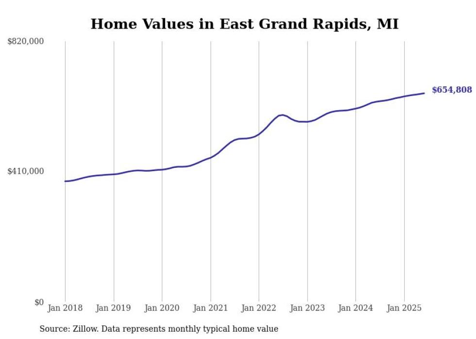 Stacker compiled a list of cities with the most expensive homes in the Grand Rapids-Kentwood, MI metro area using data from Zillow. Charts show the monthly typical home value since January 2018.