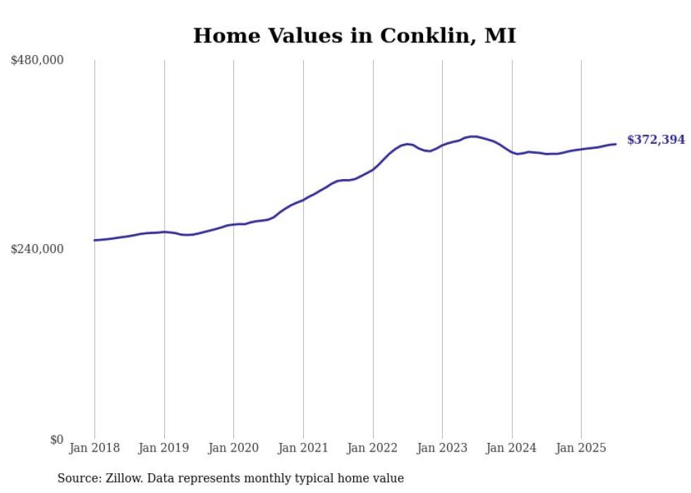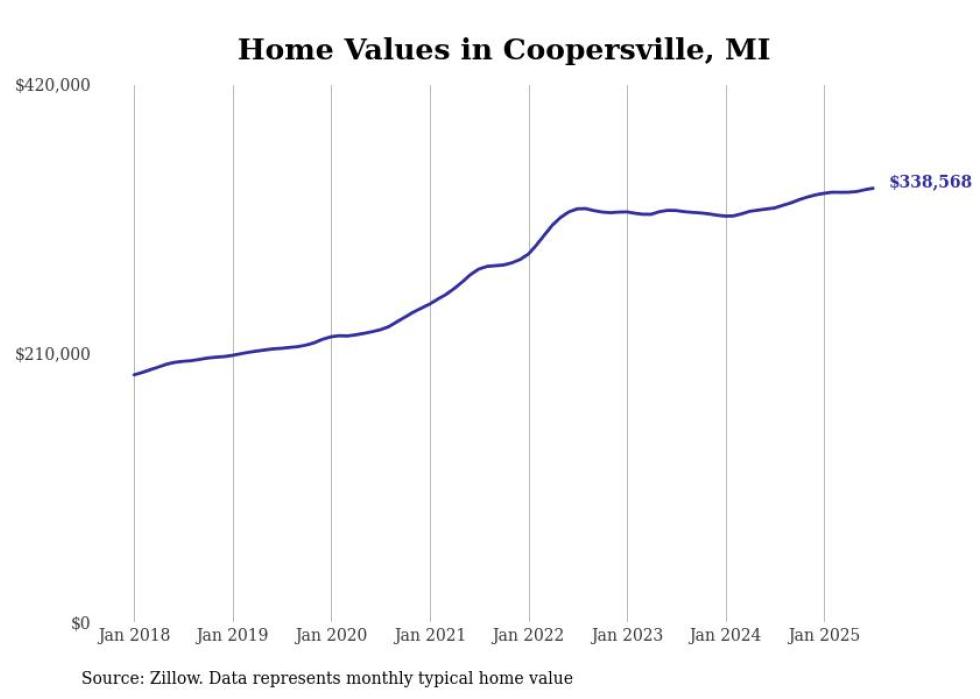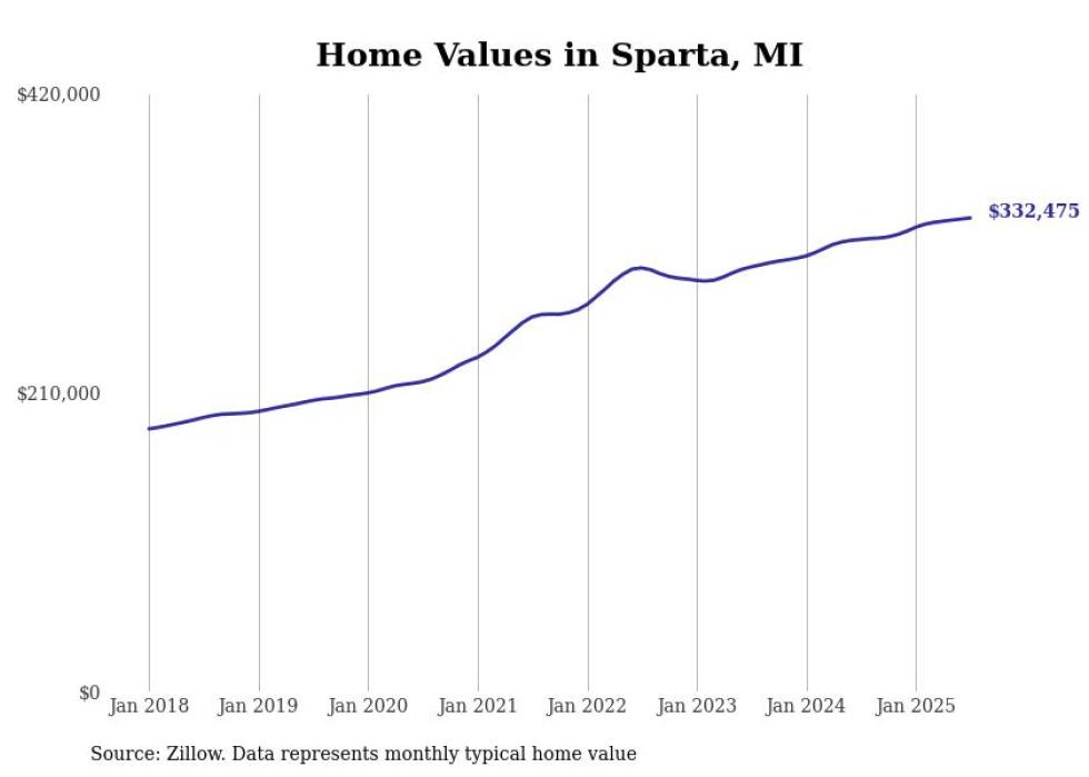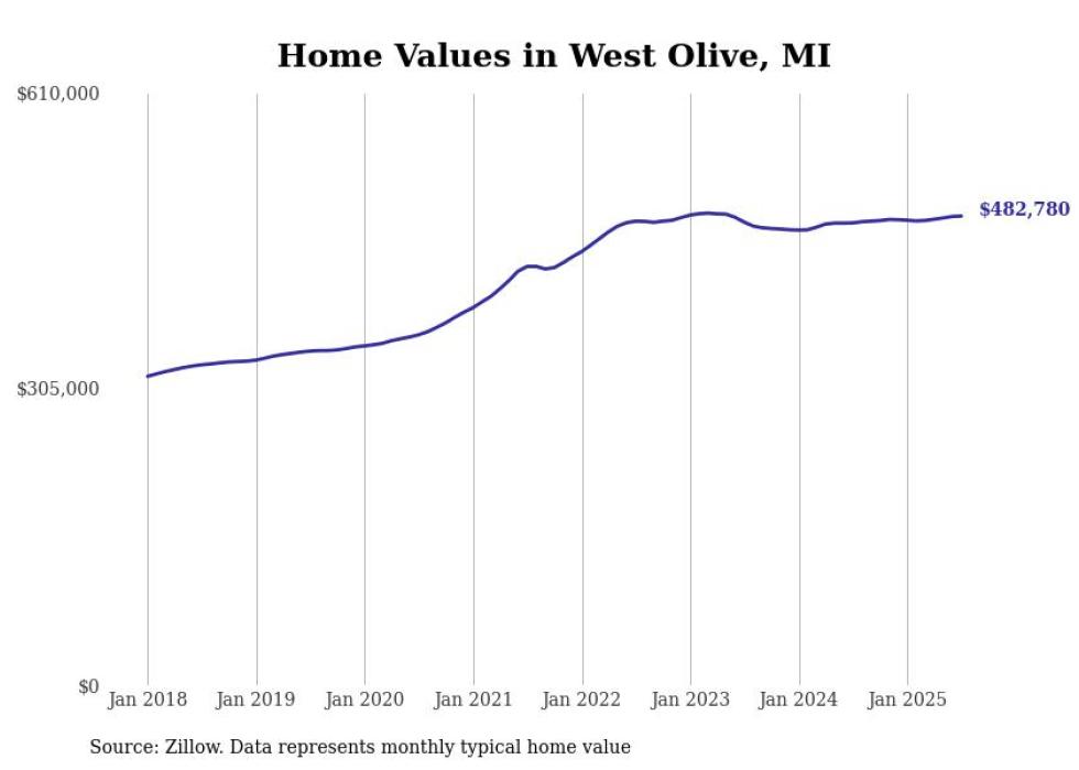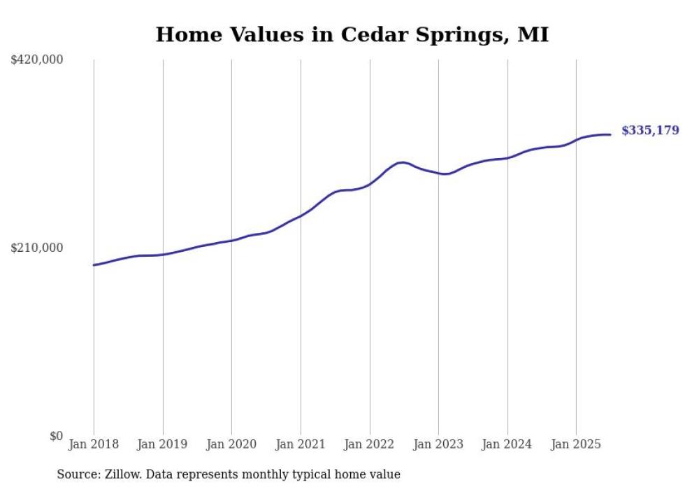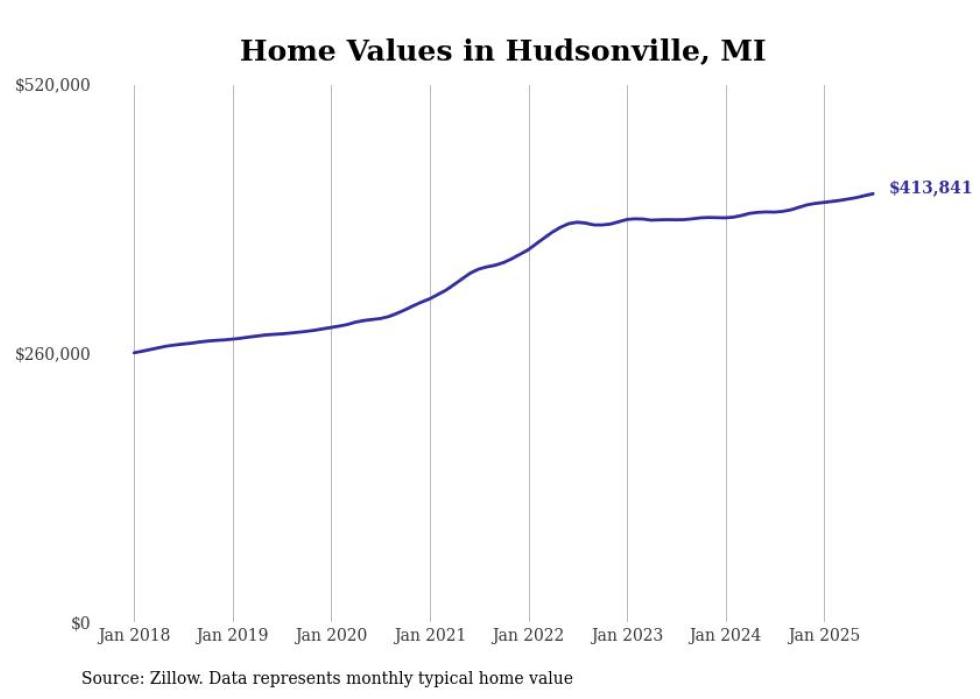 Stacker compiled a list of cities with the most expensive homes in the Grand Rapids metro area using data from Zillow. Charts show the monthly typical home value since January 2018. Data was available for 63 cities and towns.