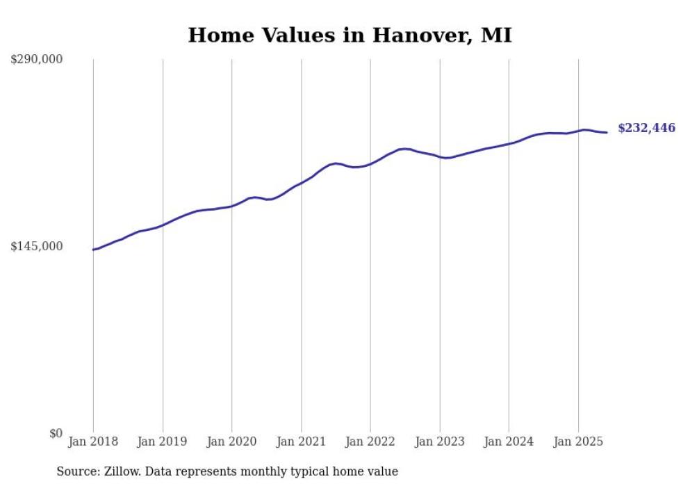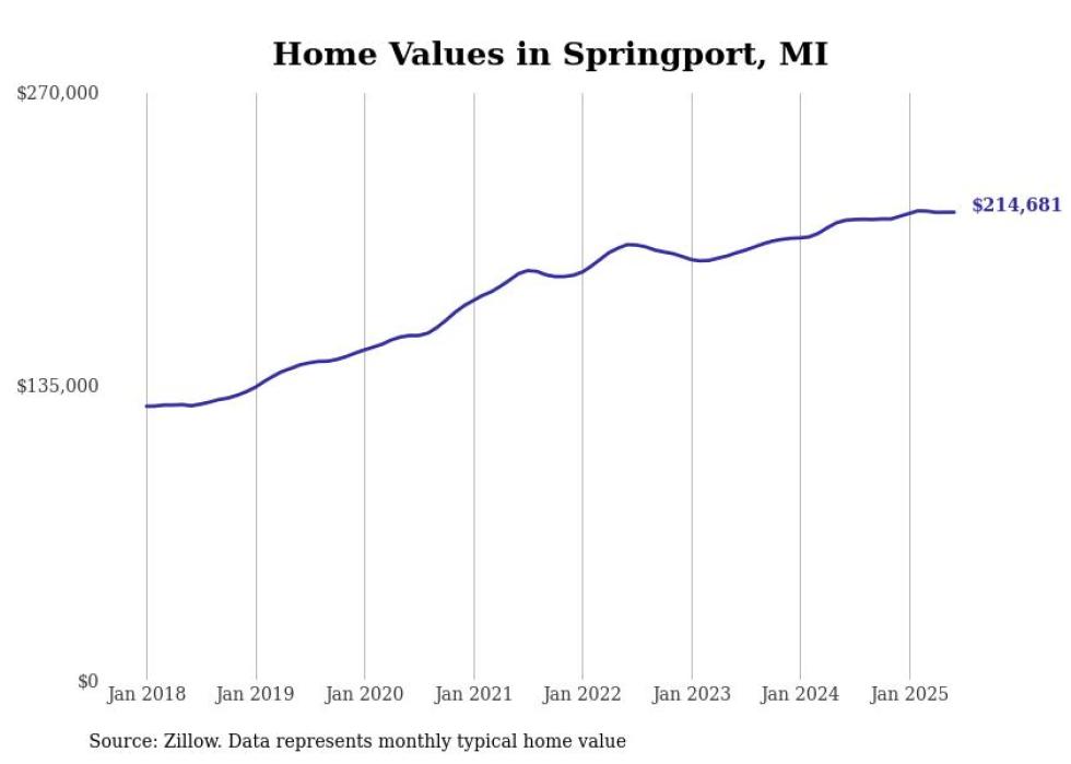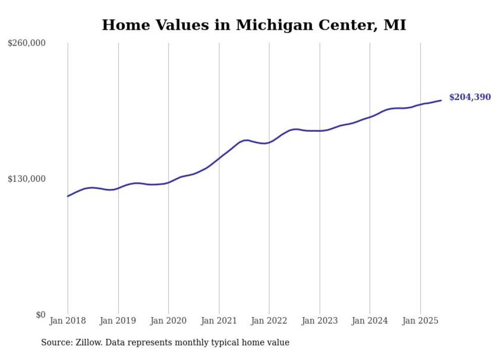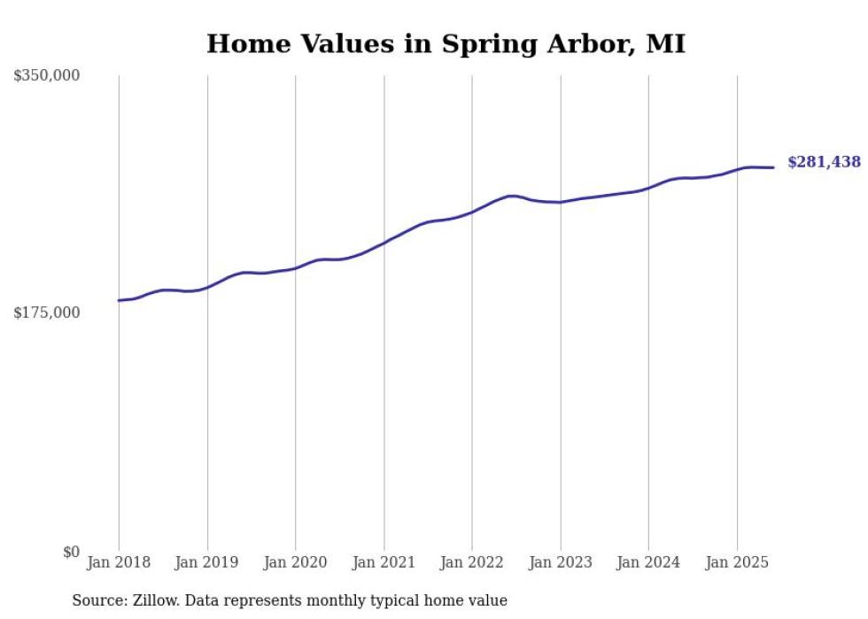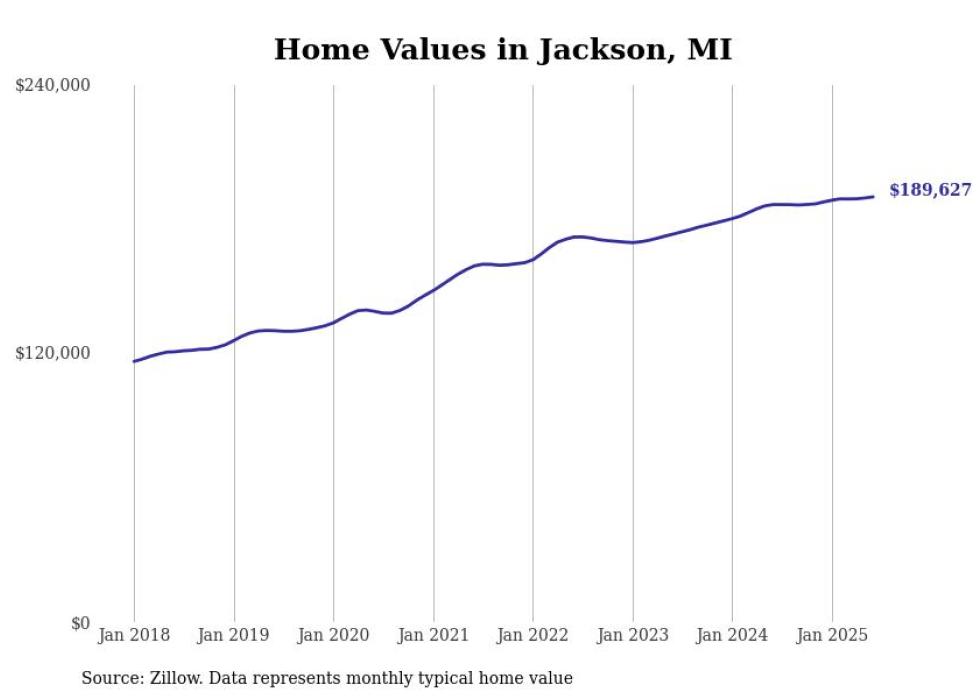 Stacker compiled a list of cities with the most expensive homes in the Jackson, MI metro area using data from Zillow. Charts show the monthly typical home value since January 2018.