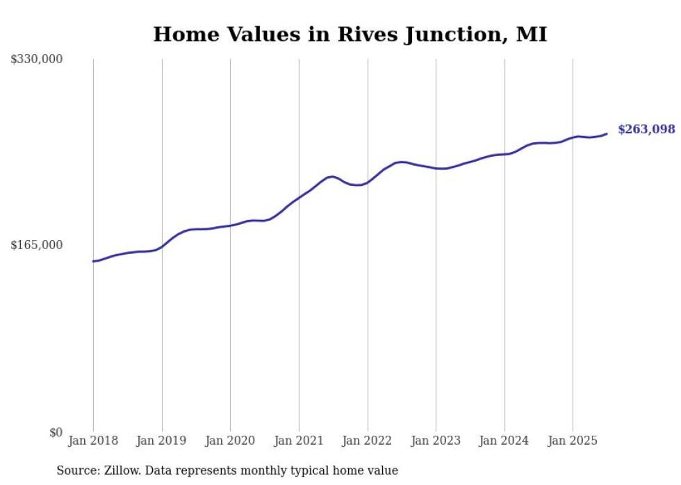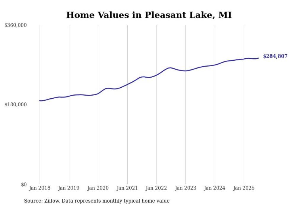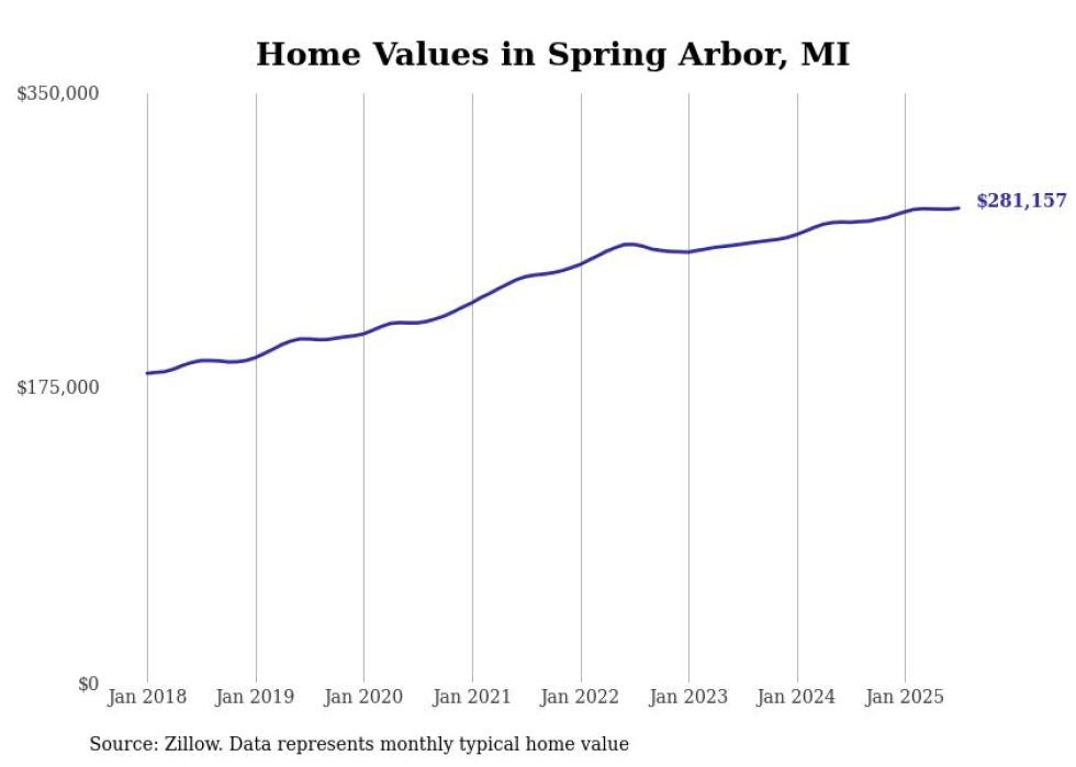 Stacker compiled a list of cities with the most expensive homes in the Jackson, Michigan metro area using data from Zillow. Charts show the monthly typical home value since January 2018. All 14 cities and towns with data available were included in the list.