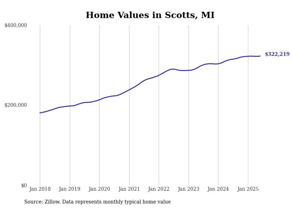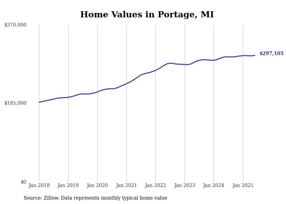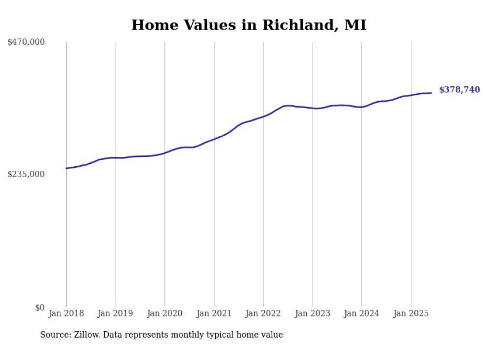 Stacker compiled a list of cities with the most expensive homes in the Kalamazoo-Portage, MI metro area using data from Zillow. Charts show the monthly typical home value since January 2018.
