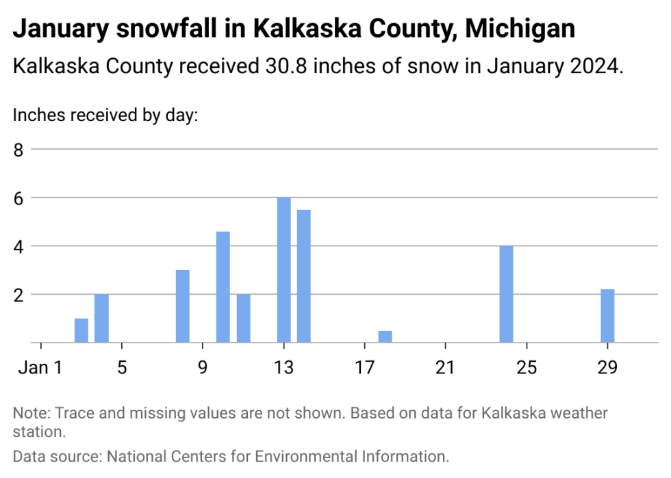Here's how much snow Kalkaska County, Michigan received in January