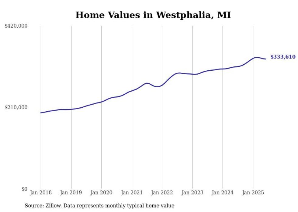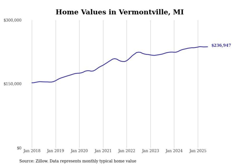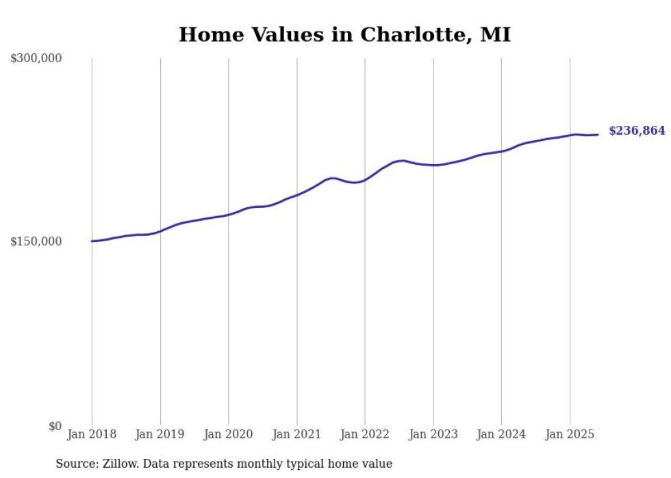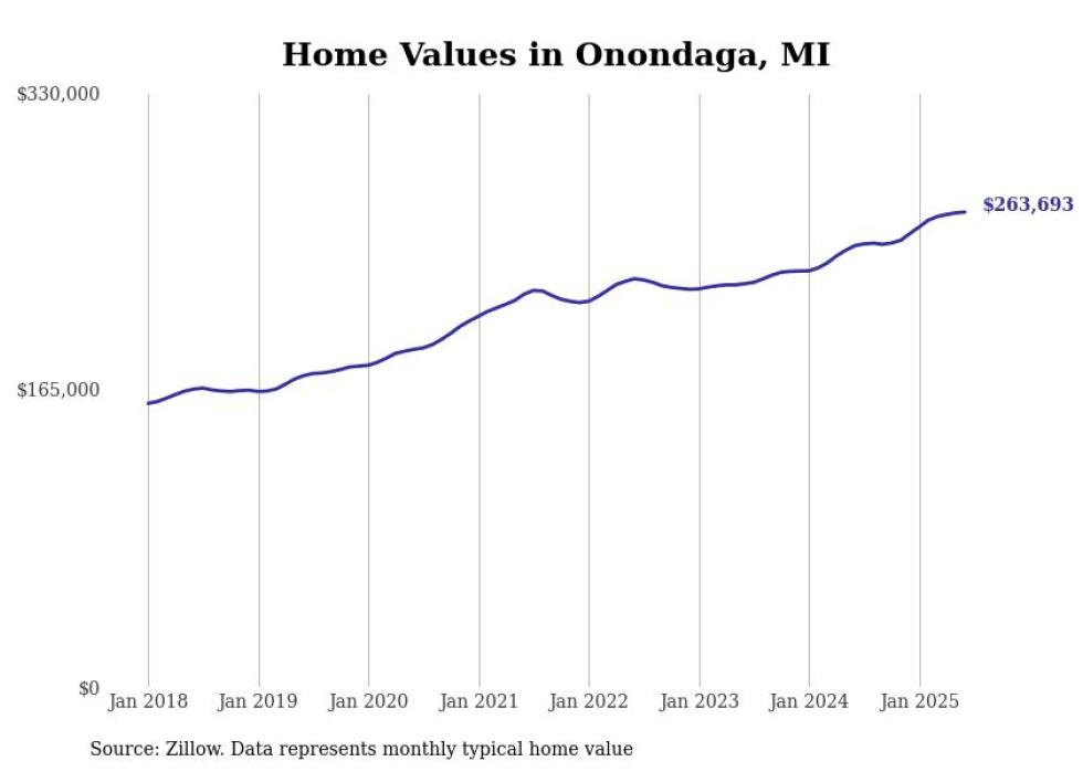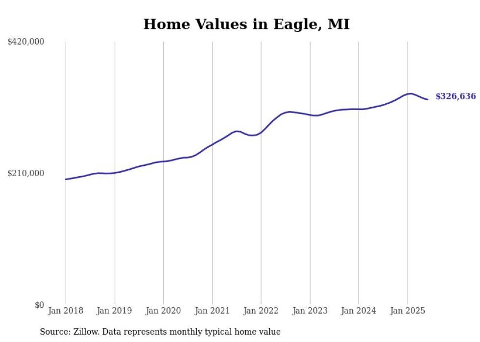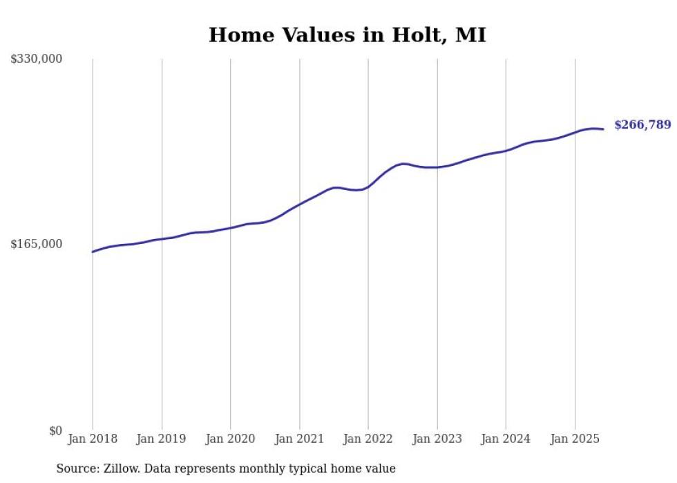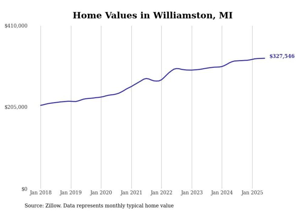 Stacker compiled a list of cities with the most expensive homes in the Lansing-East Lansing, MI metro area using data from Zillow. Charts show the monthly typical home value since January 2018.