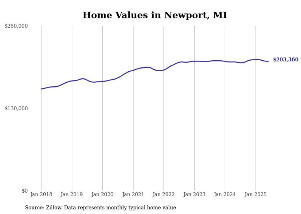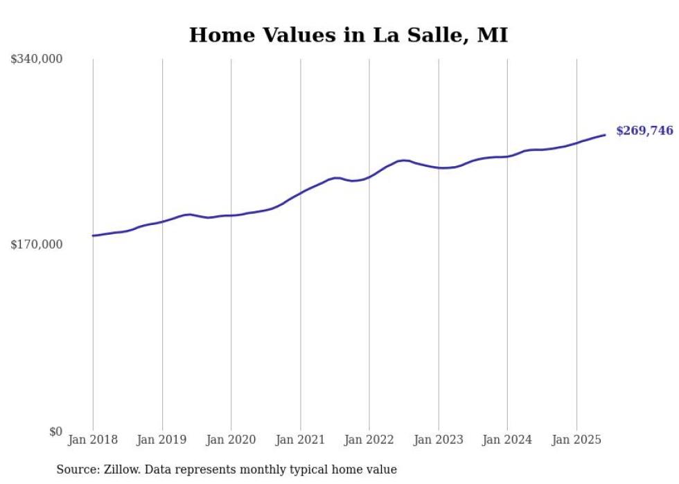 Stacker compiled a list of cities with the most expensive homes in the Monroe, MI metro area using data from Zillow. Charts show the monthly typical home value since January 2018.