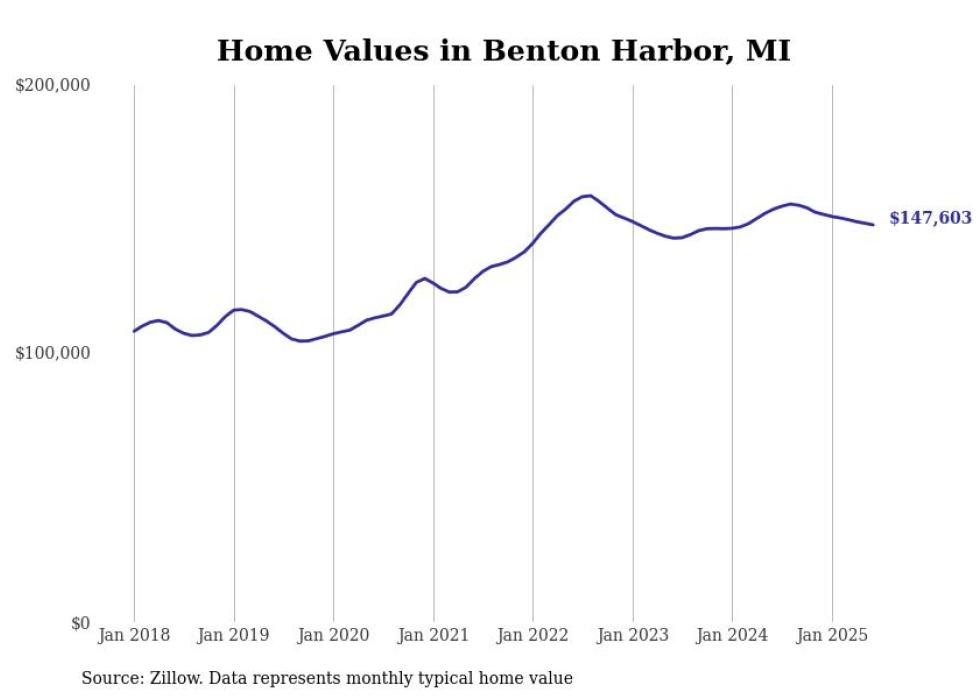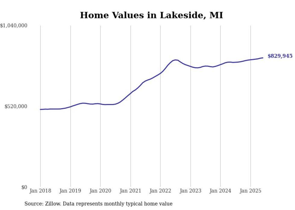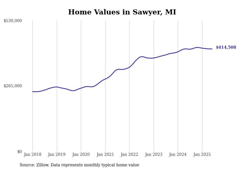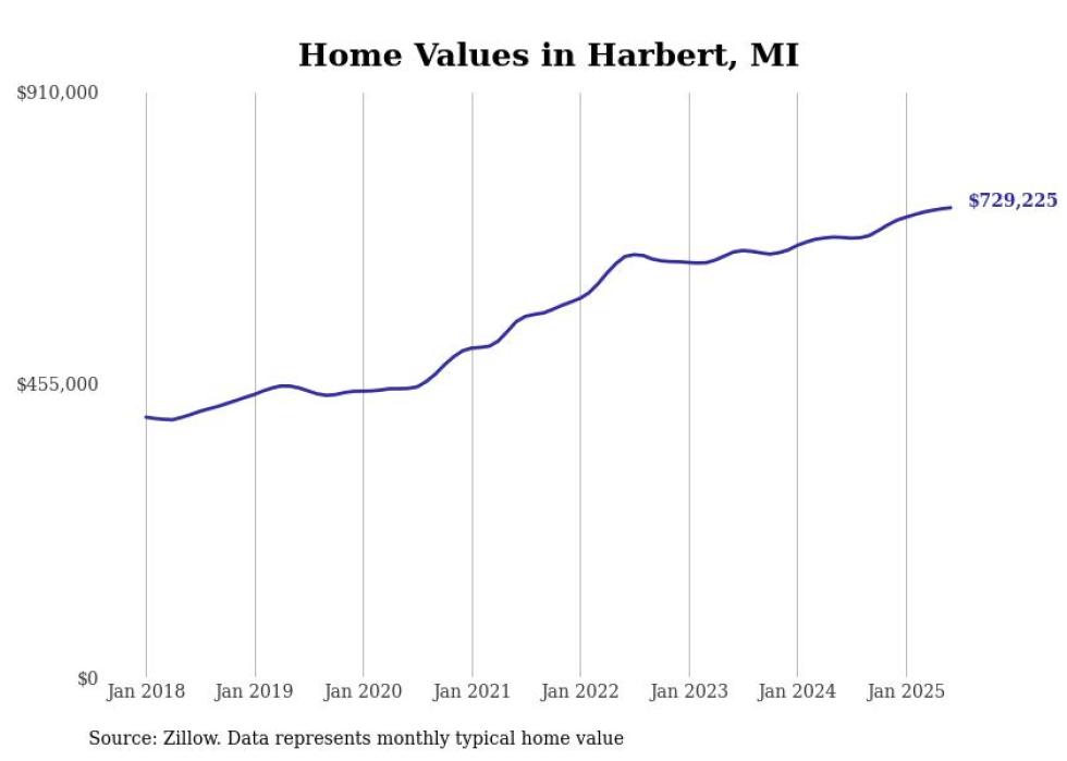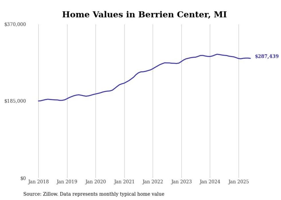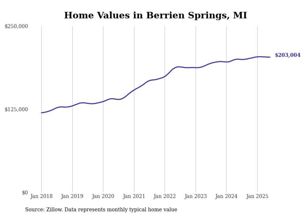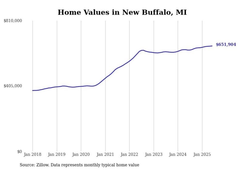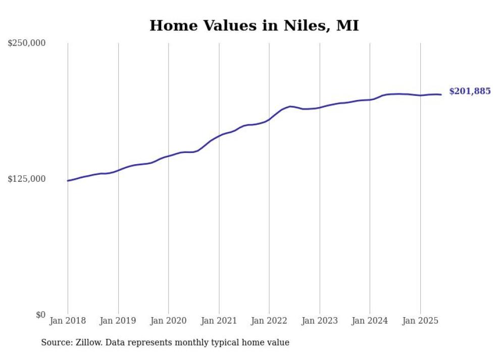 Stacker compiled a list of cities with the most expensive homes in the Niles, MI metro area using data from Zillow. Charts show the monthly typical home value since January 2018.