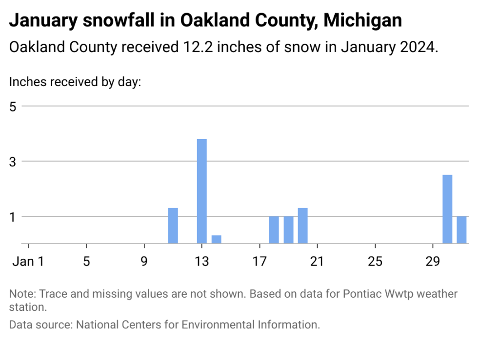 Here's how much snow Oakland County, Michigan received in January