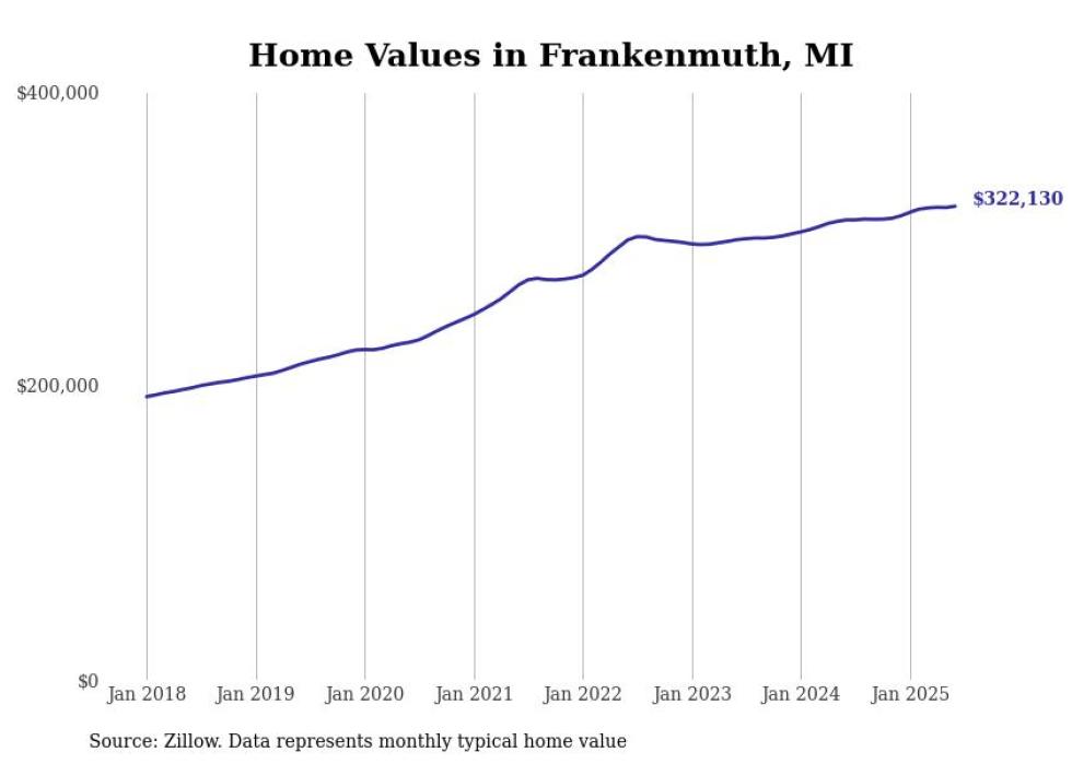 Stacker compiled a list of cities with the most expensive homes in the Saginaw, MI metro area using data from Zillow. Charts show the monthly typical home value since January 2018.