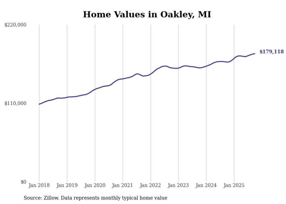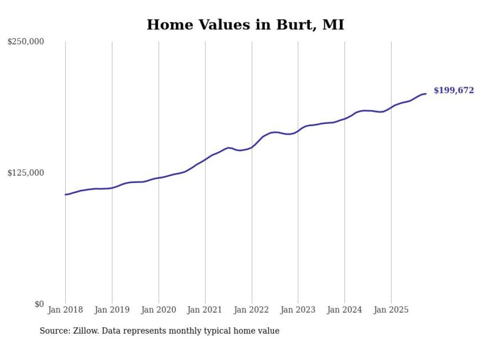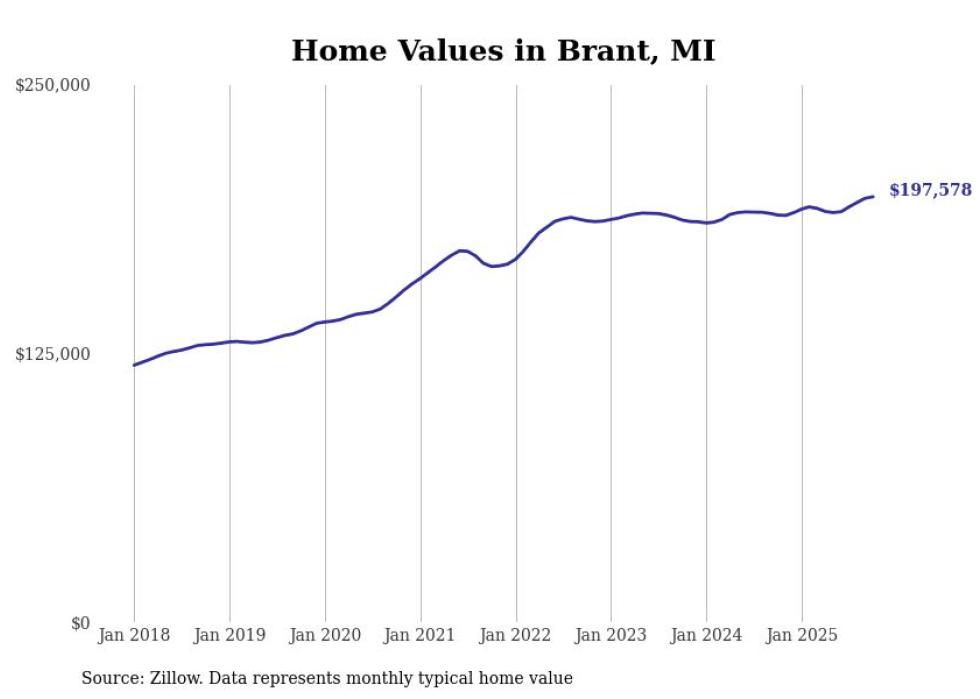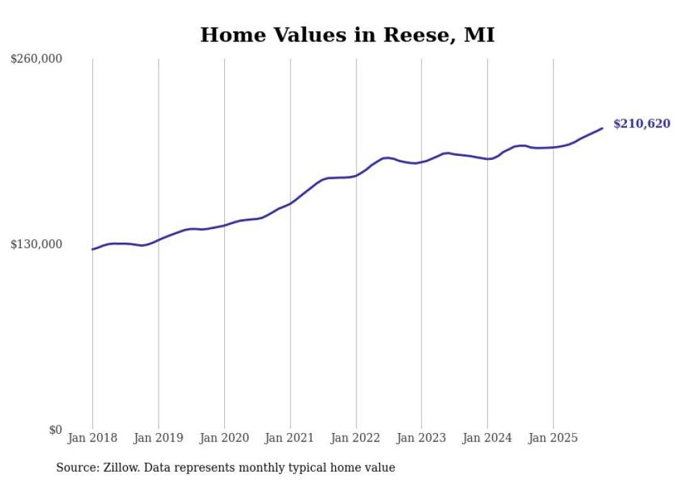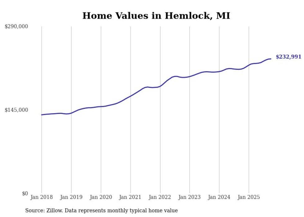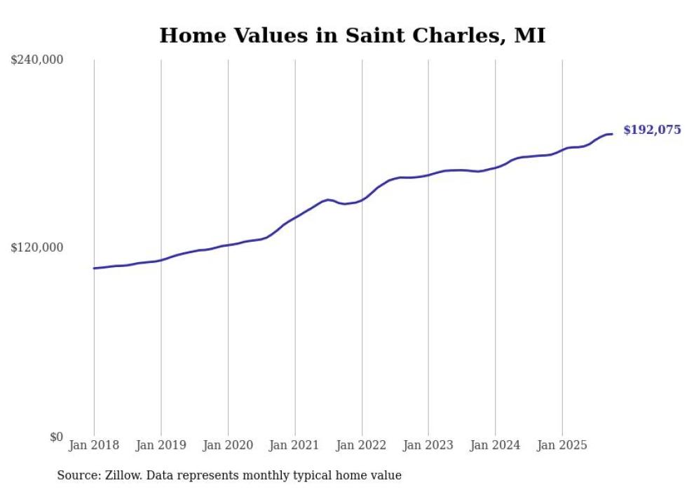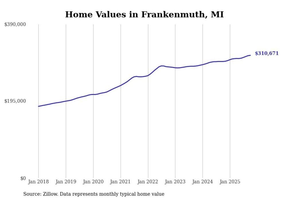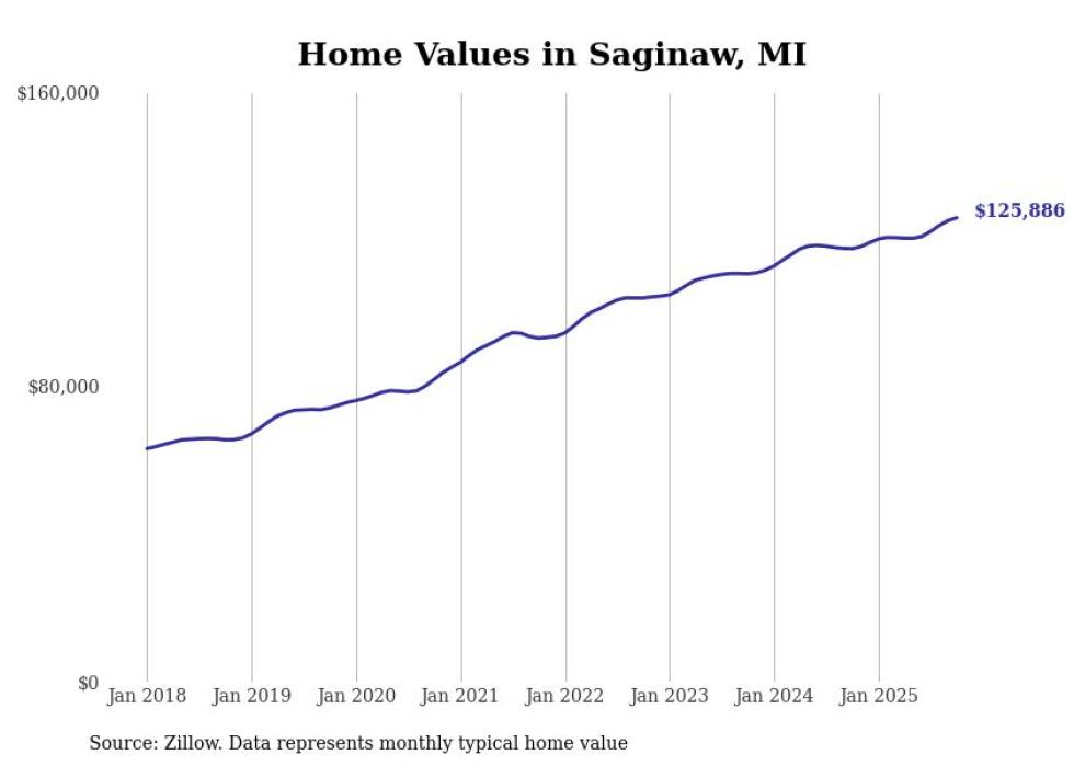 Stacker compiled a list of cities with the most expensive homes in the Saginaw metro area using data from Zillow. Charts show the monthly typical home value since January 2018. All 13 cities and towns with data available were included in the list.
