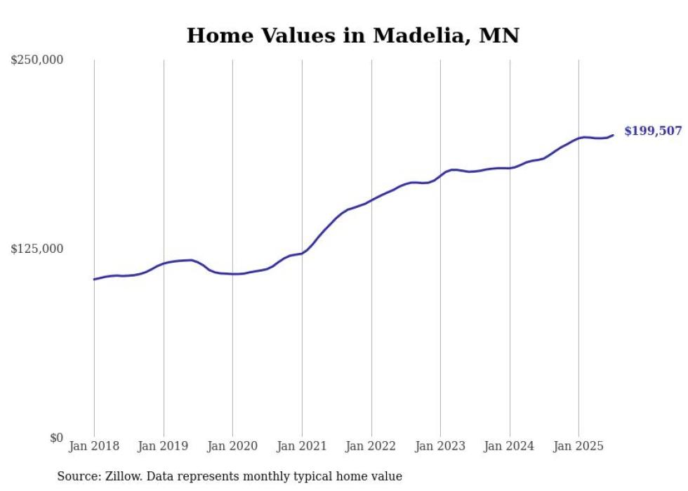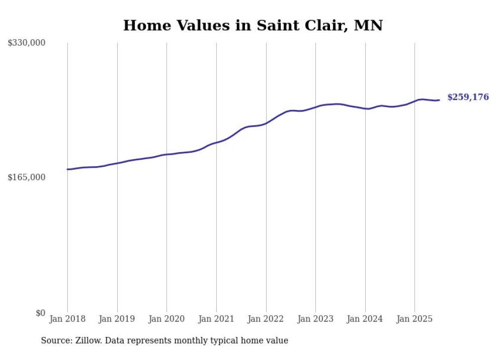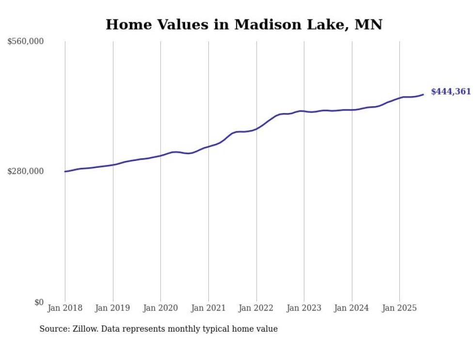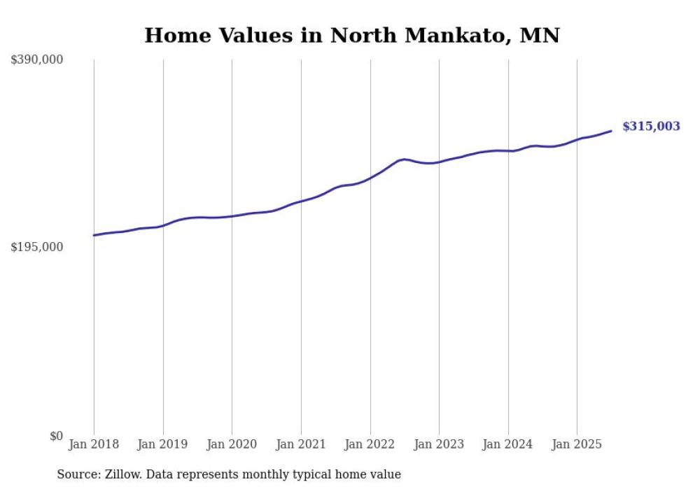 Stacker compiled a list of cities with the most expensive homes in the Mankato metro area using data from Zillow. Charts show the monthly typical home value since January 2018. All 23 cities and towns with data available were included in the list.