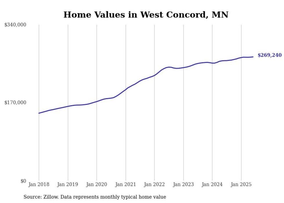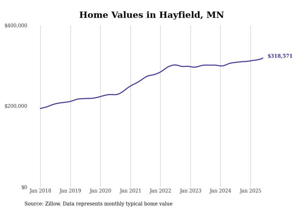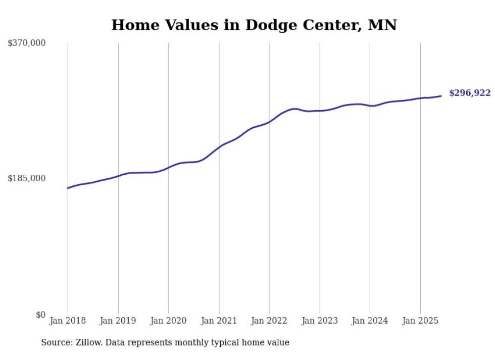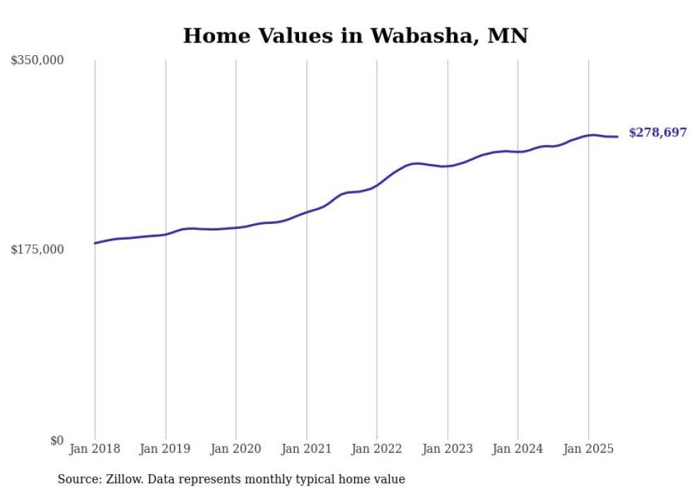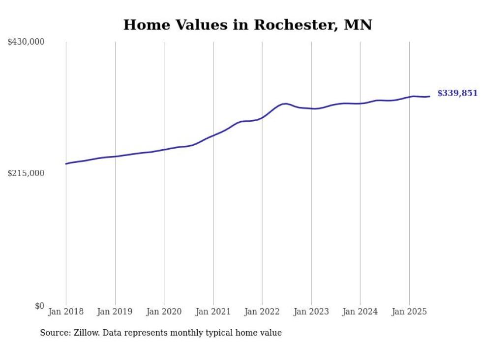 Stacker compiled a list of cities with the most expensive homes in the Rochester, MN metro area using data from Zillow. Charts show the monthly typical home value since January 2018.