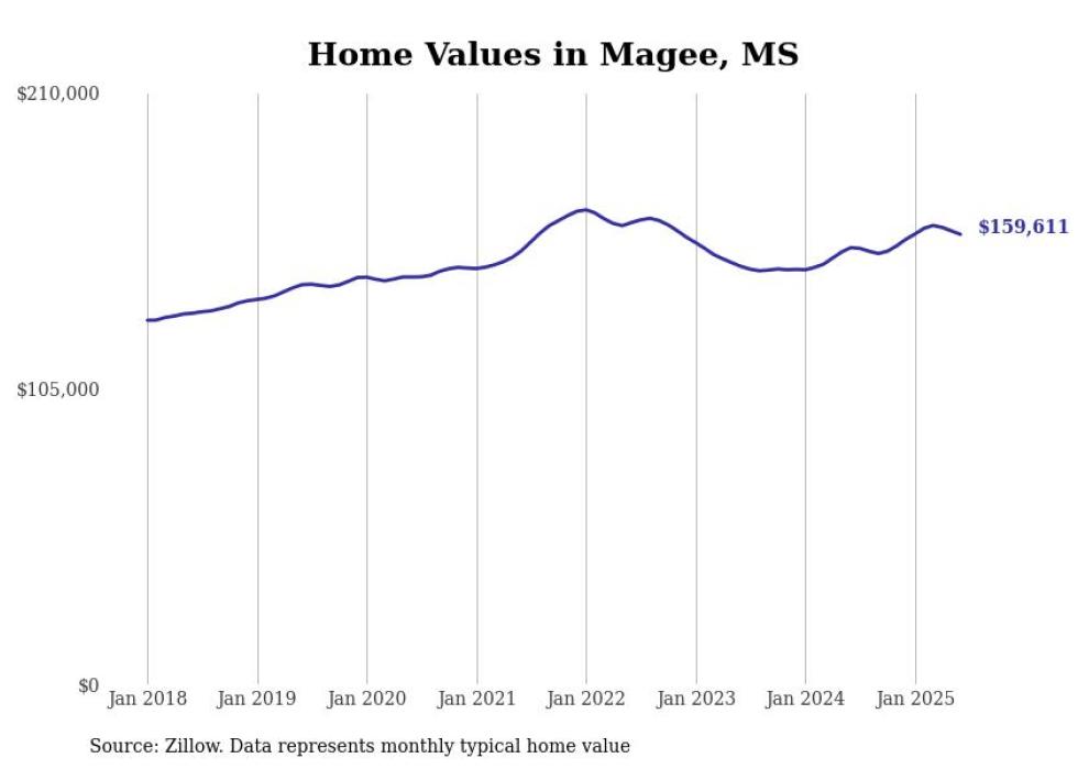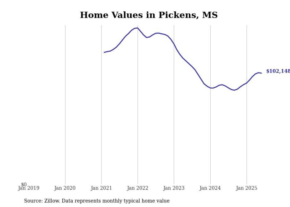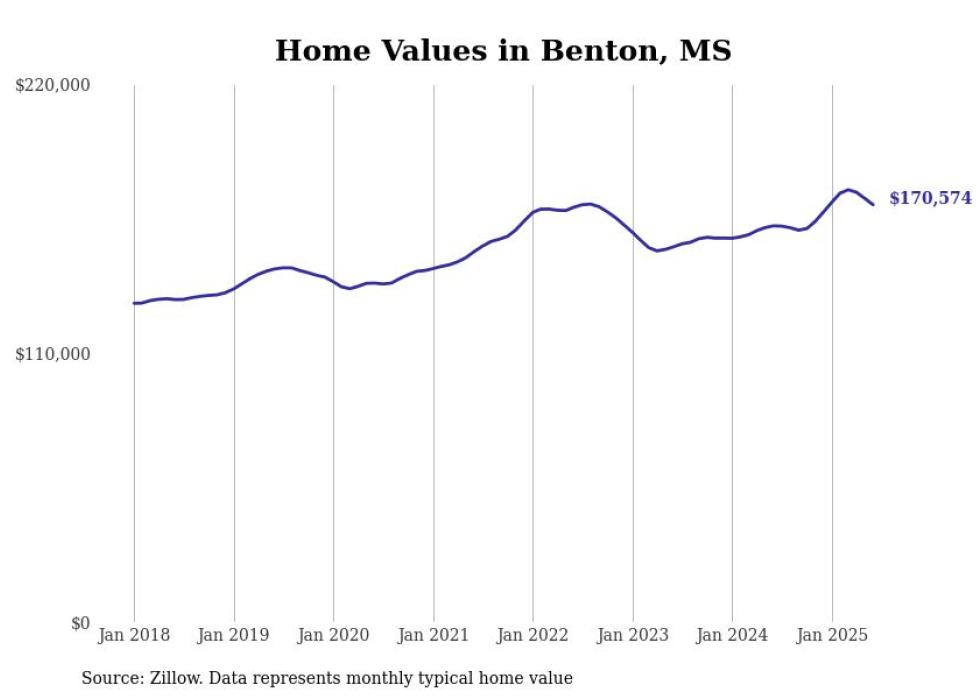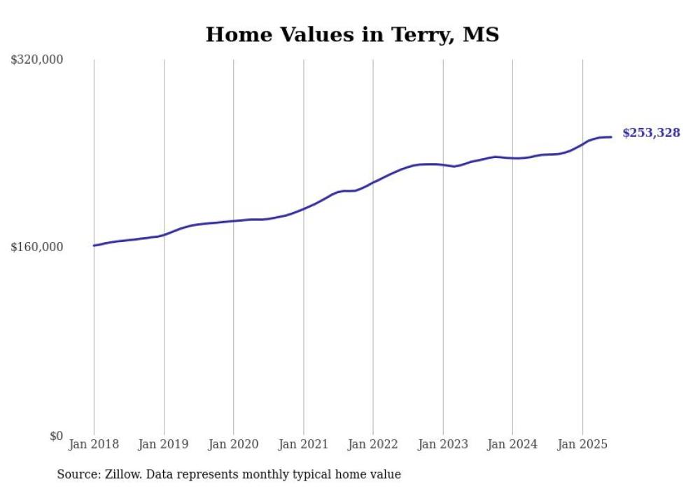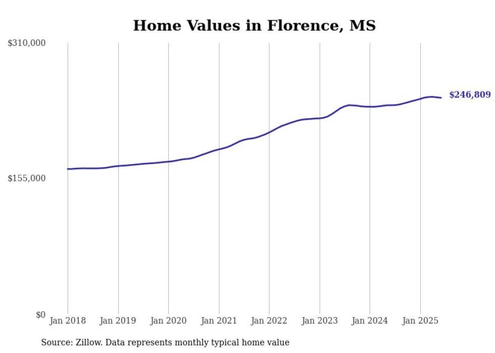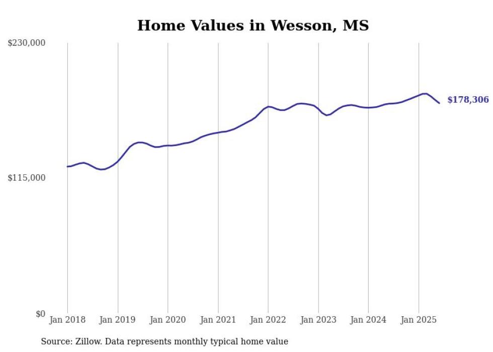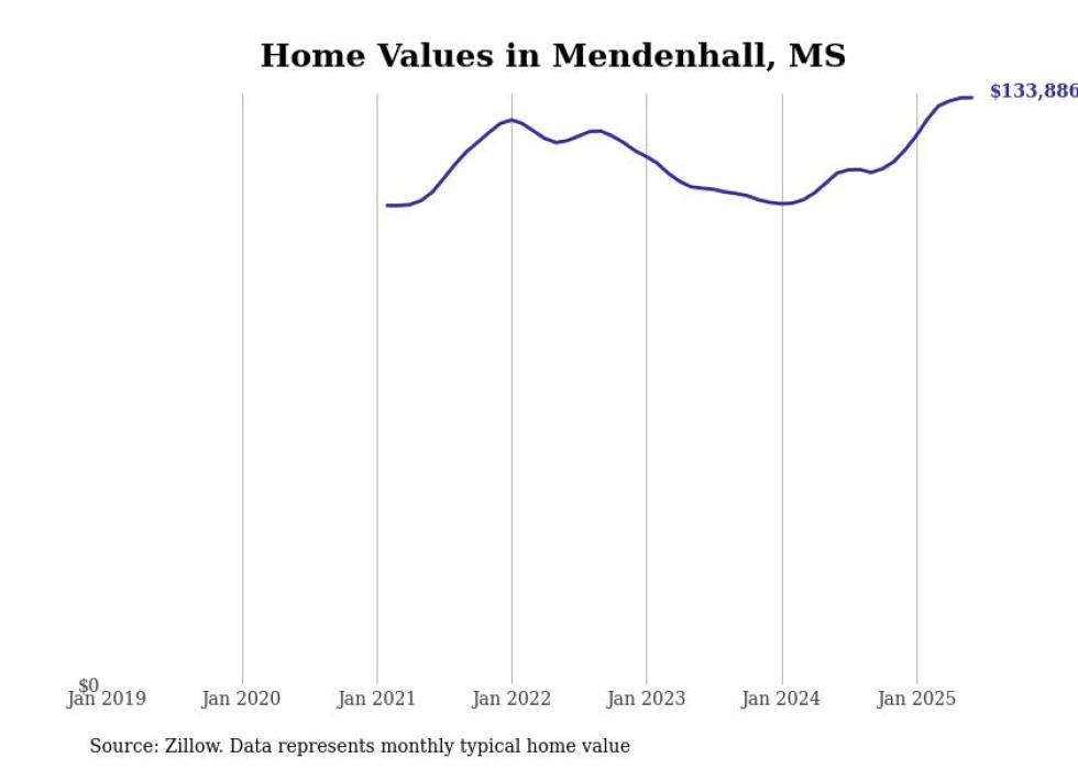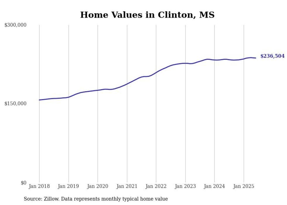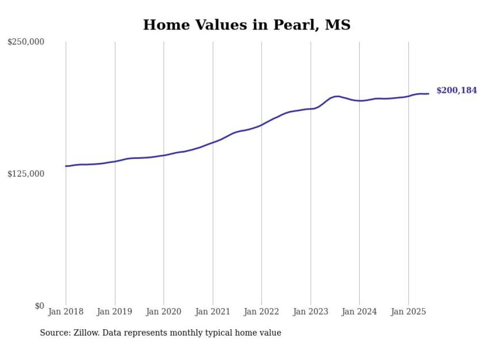 Stacker compiled a list of cities with the most expensive homes in the Jackson, MS metro area using data from Zillow. Charts show the monthly typical home value since January 2018.