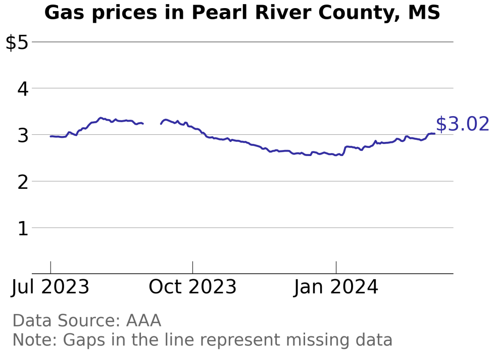Pearl River County, Mississippi gas price trends