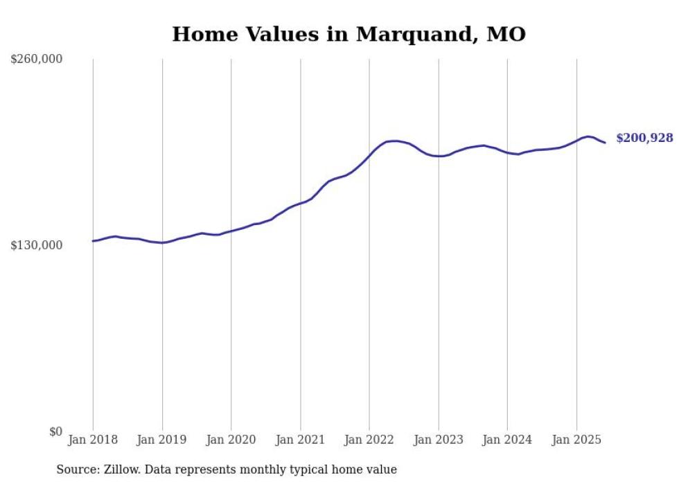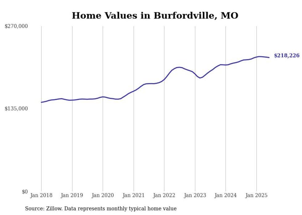 Stacker compiled a list of cities with the most expensive homes in the Cape Girardeau, MO-IL metro area using data from Zillow. Charts show the monthly typical home value since January 2018.