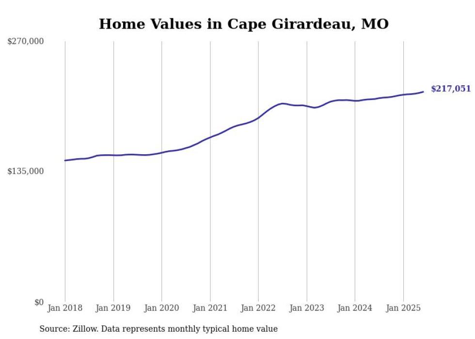 Cities with the fastest-growing home prices in the Cape Girardeau metro area