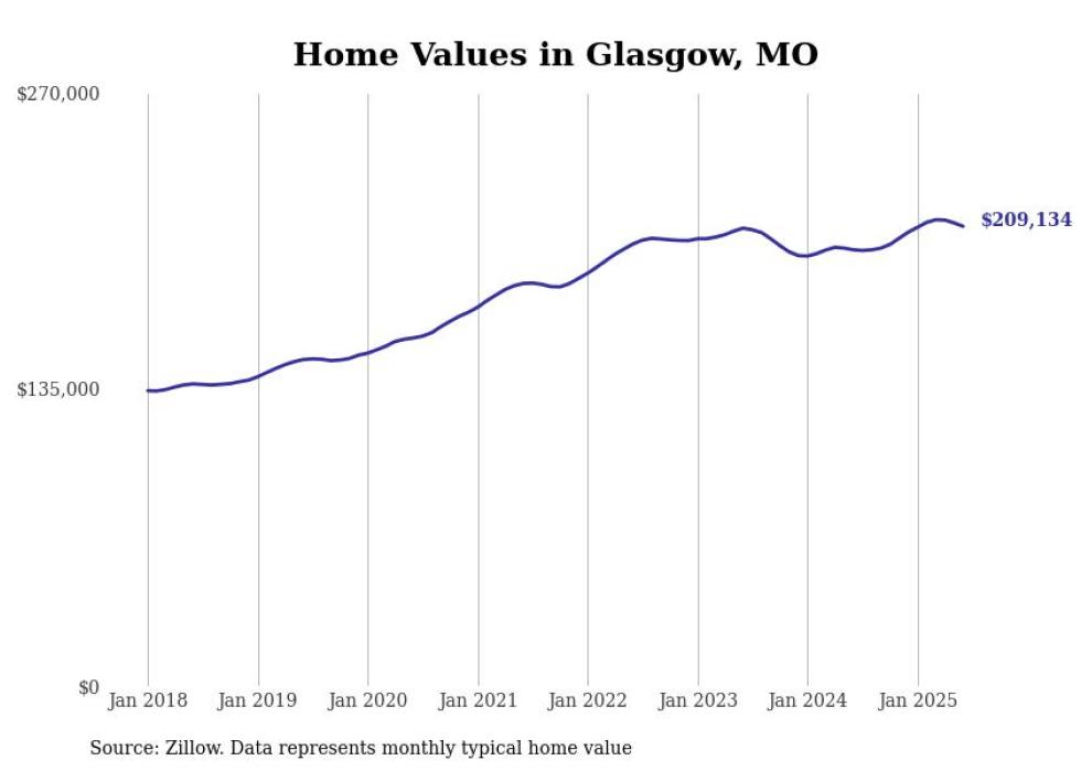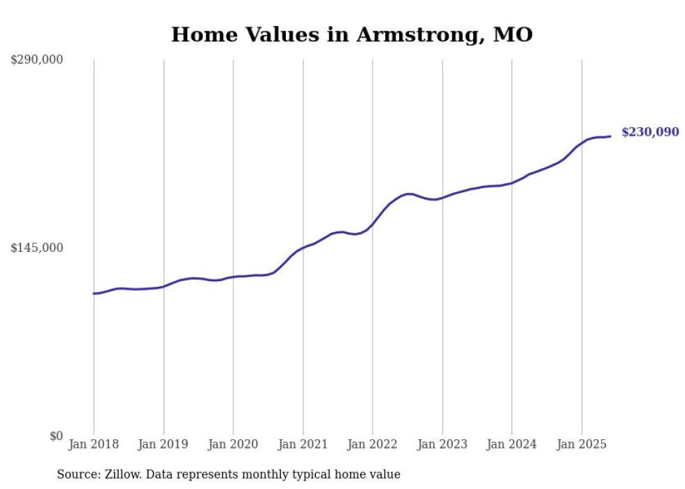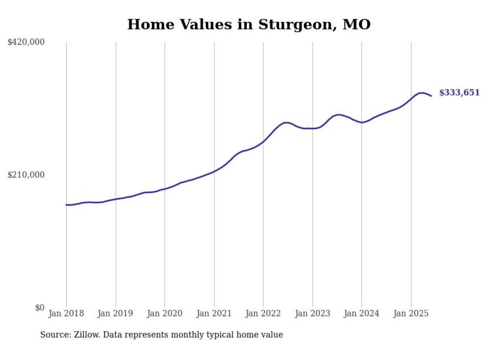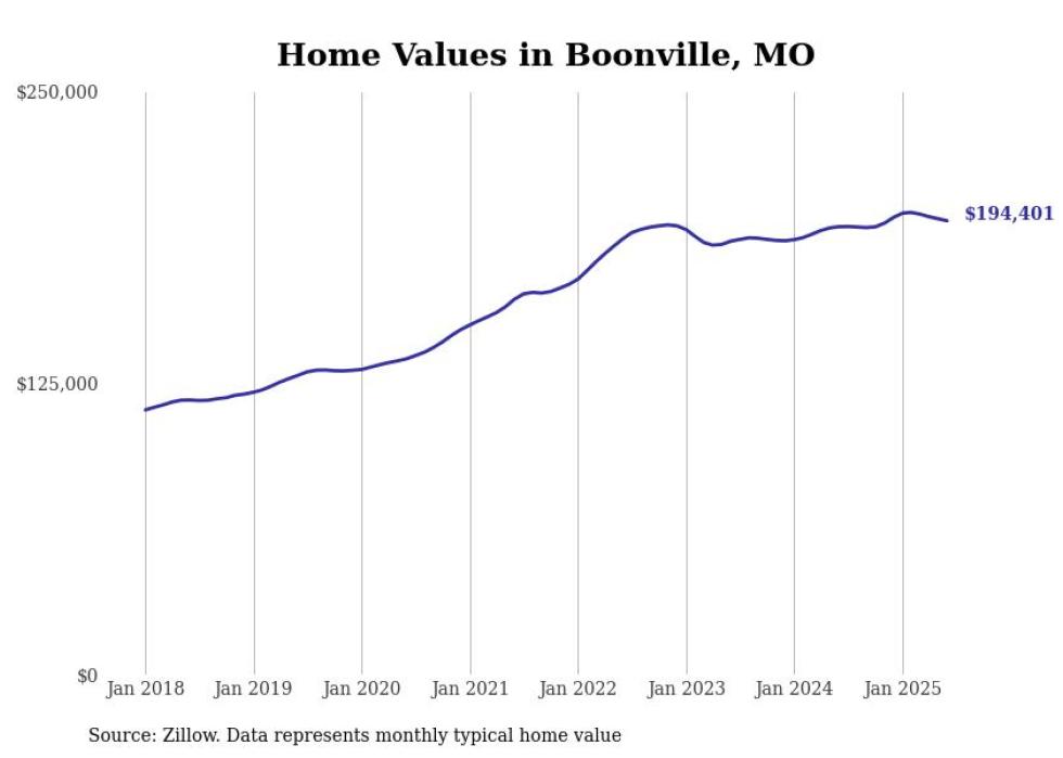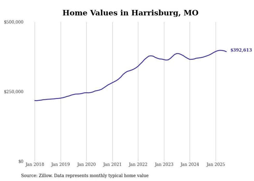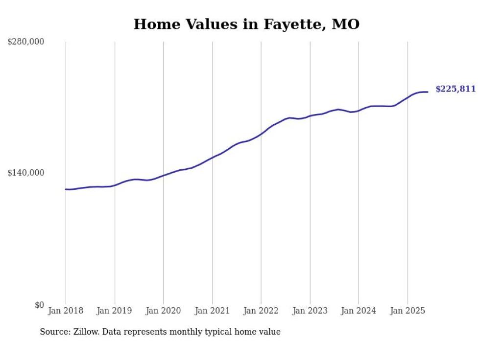 Cities with the fastest-growing home prices in the Columbia, Missouri metro area