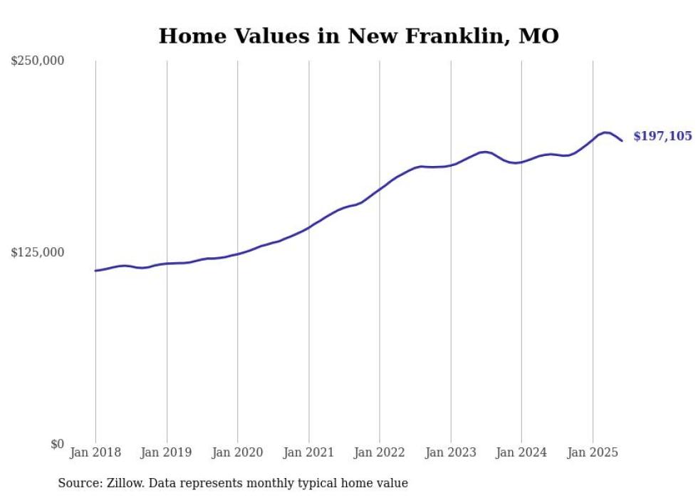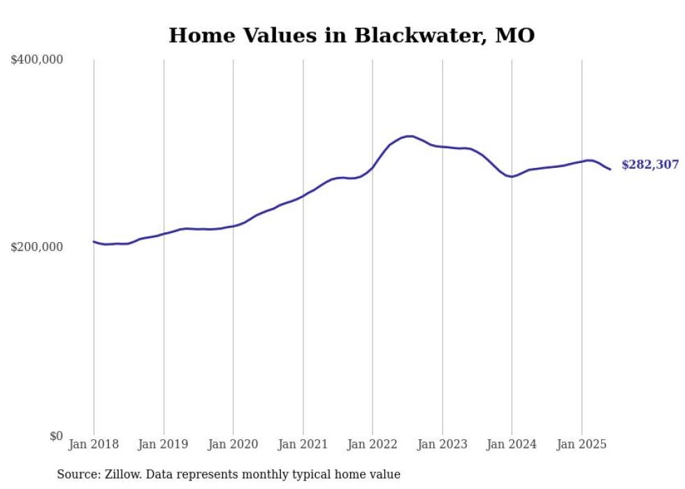 Stacker compiled a list of cities with the most expensive homes in the Columbia, MO metro area using data from Zillow. Charts show the monthly typical home value since January 2018.