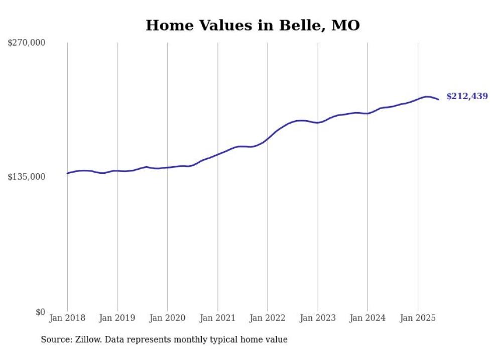 Stacker compiled a list of cities with the most expensive homes in the Jefferson City, MO metro area using data from Zillow. Charts show the monthly typical home value since January 2018.