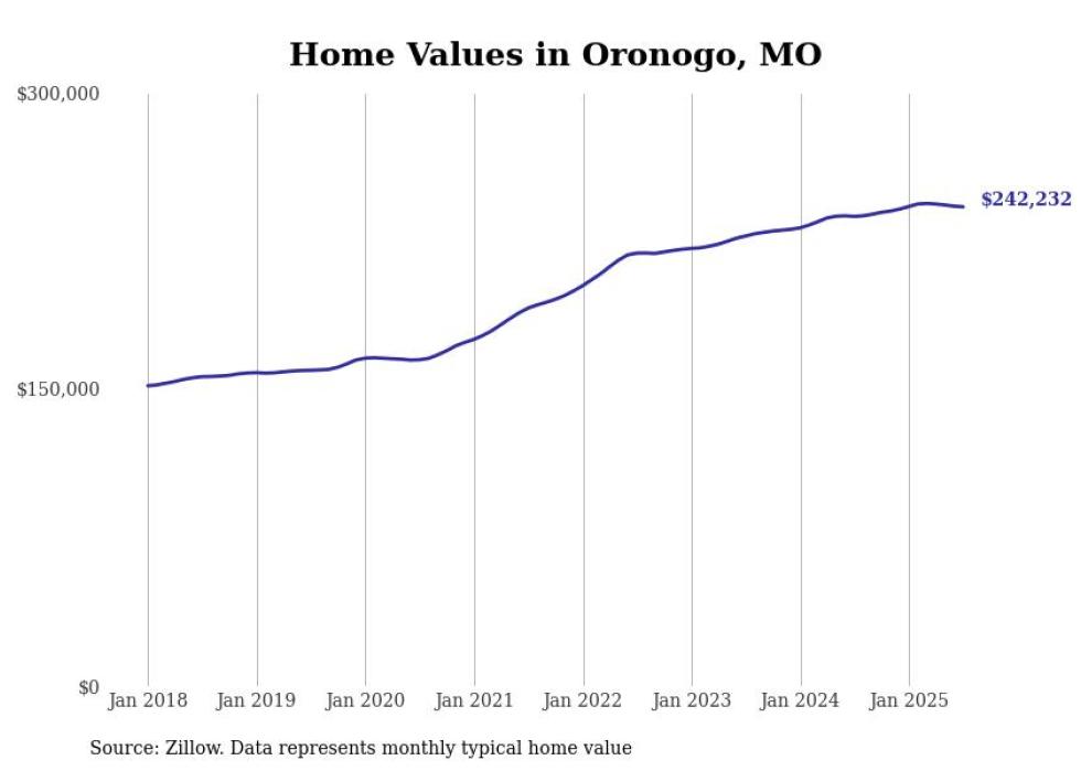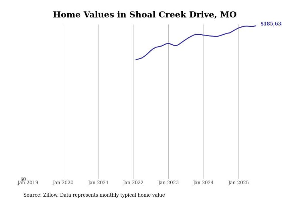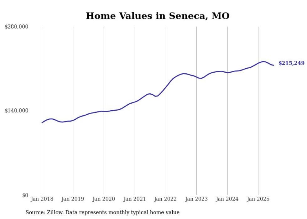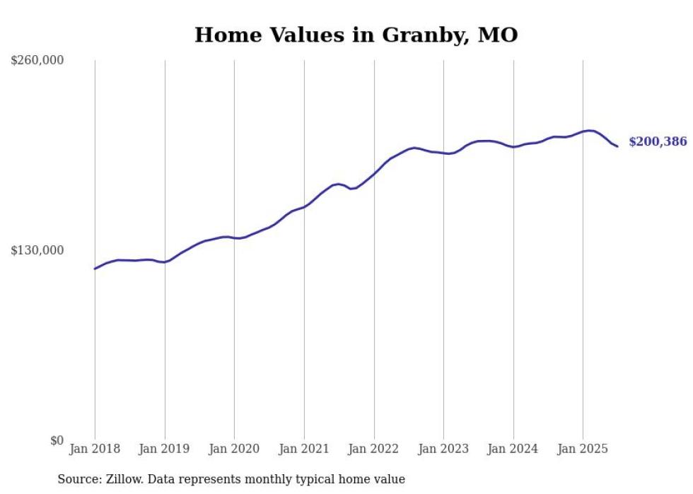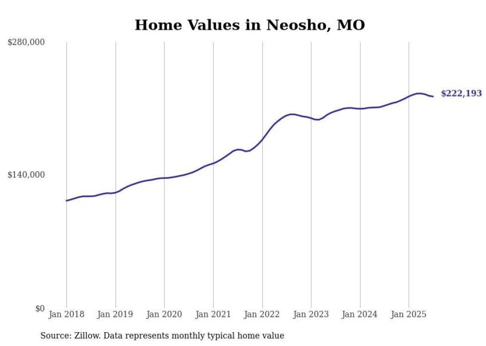 Stacker compiled a list of cities with the most expensive homes in the Joplin metro area using data from Zillow. Charts show the monthly typical home value since January 2018. All 20 cities and towns with data available were included in the list.