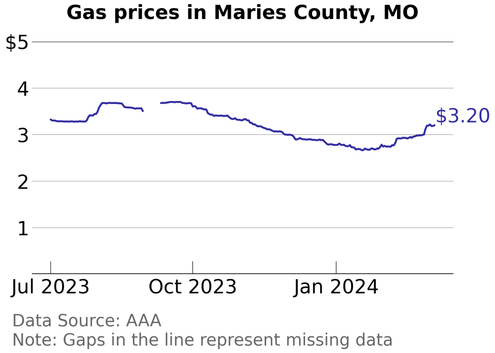 Maries County, Missouri gas price trends