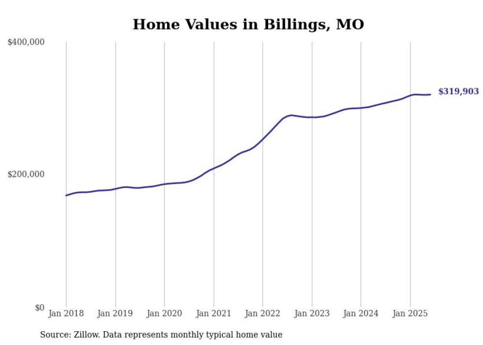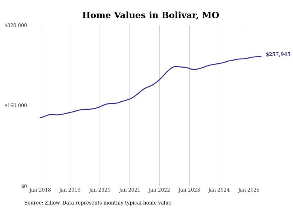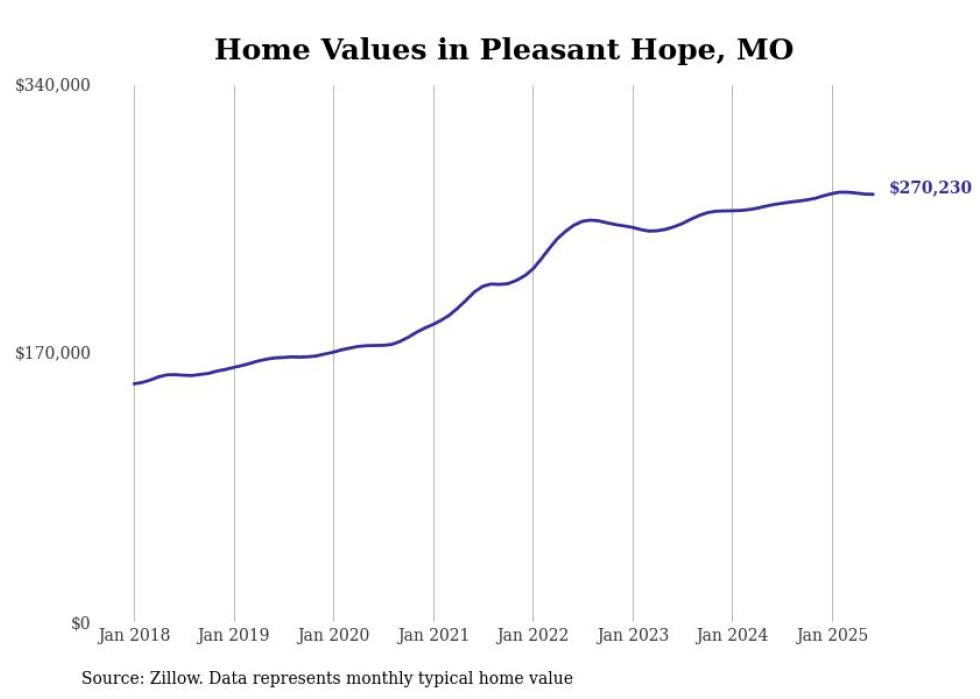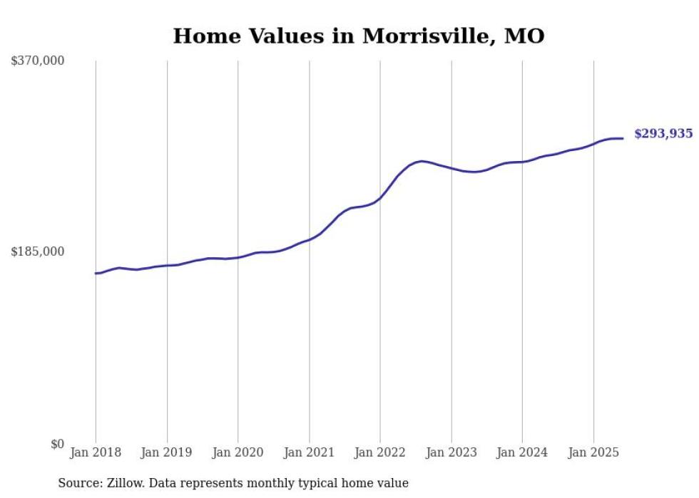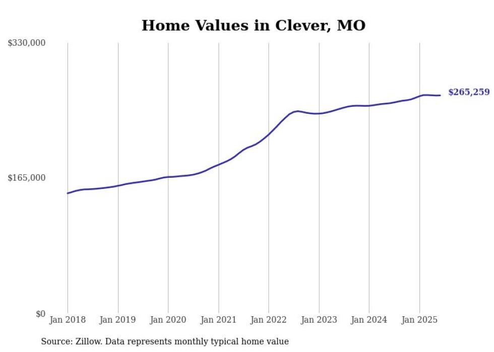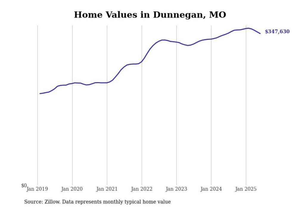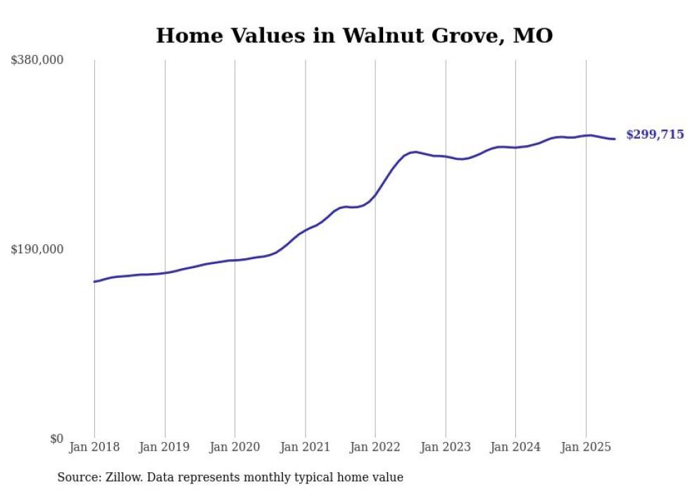 Stacker compiled a list of cities with the most expensive homes in the Springfield, MO metro area using data from Zillow. Charts show the monthly typical home value since January 2018.