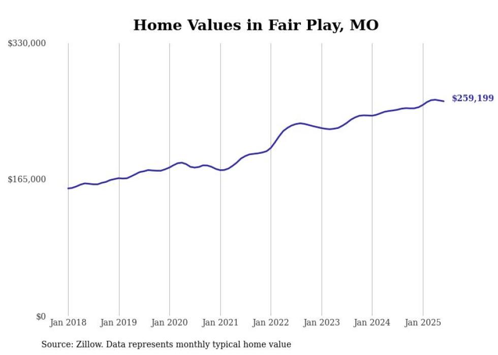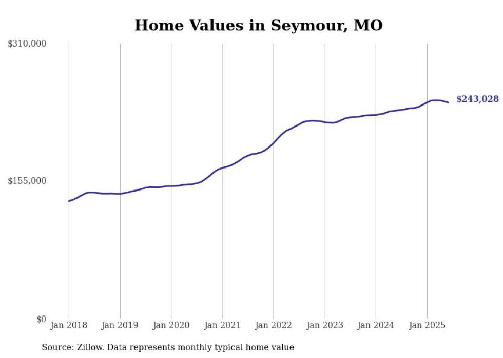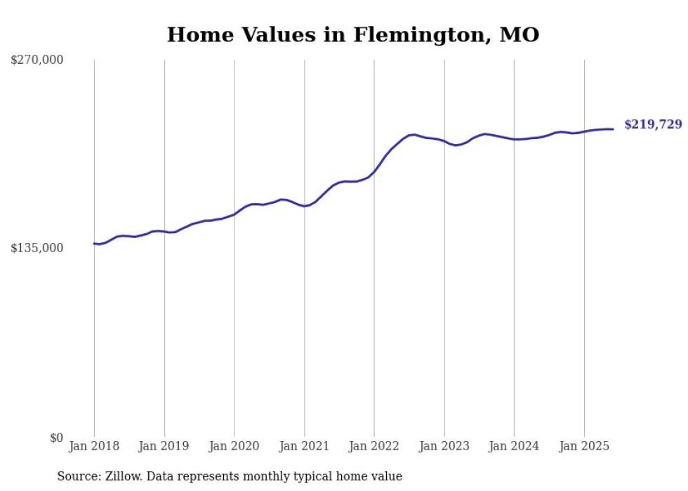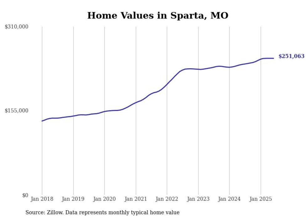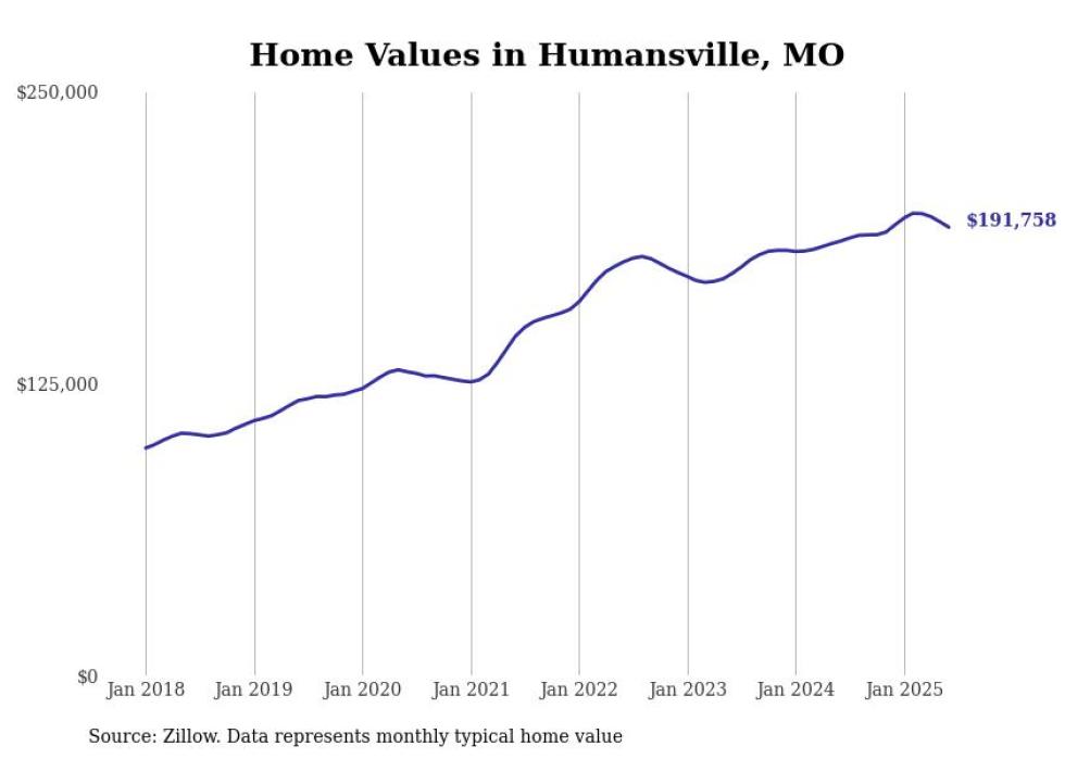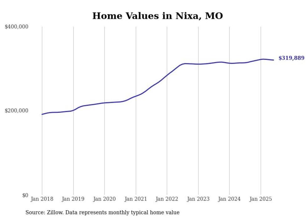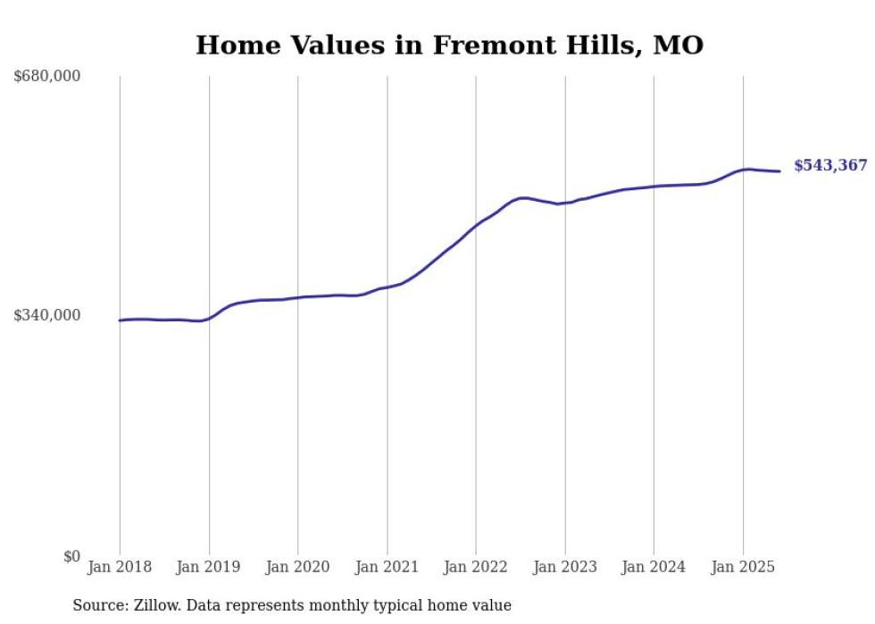 Stacker compiled a list of cities with the most expensive homes in the Springfield, MO metro area using data from Zillow. Charts show the monthly typical home value since January 2018.