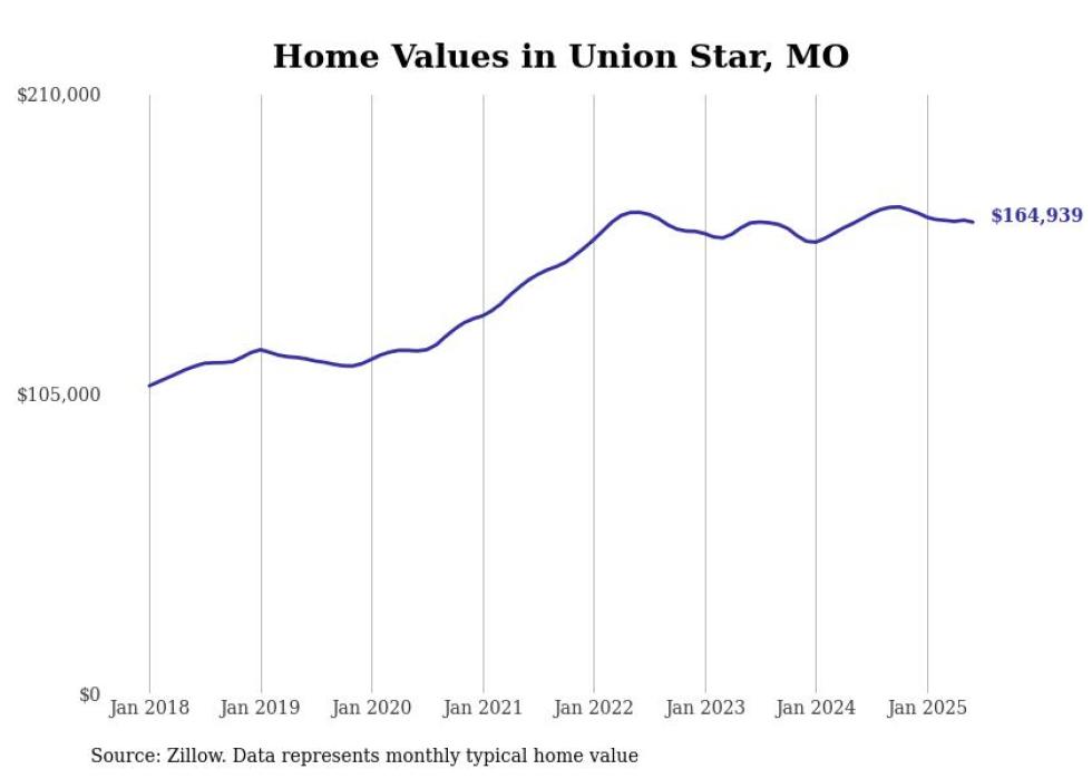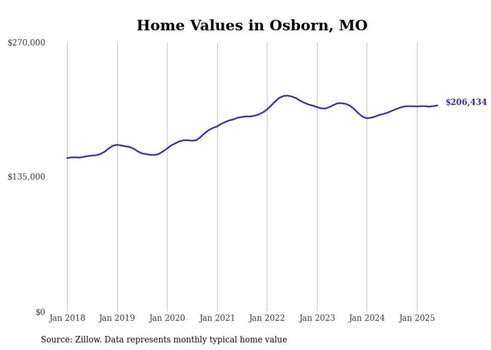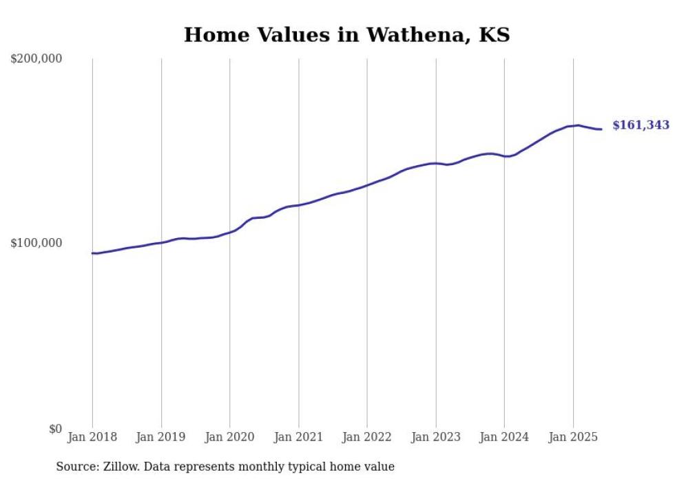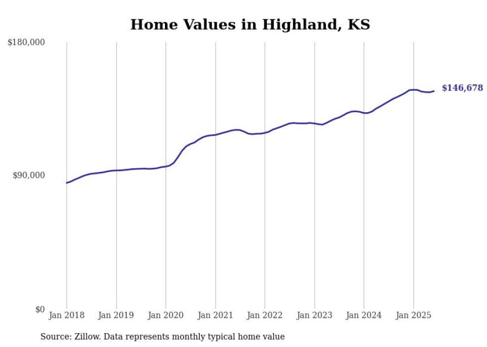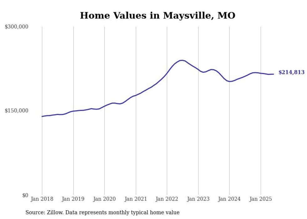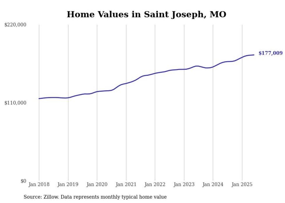 Stacker compiled a list of cities with the most expensive homes in the St. Joseph, MO-KS metro area using data from Zillow. Charts show the monthly typical home value since January 2018.