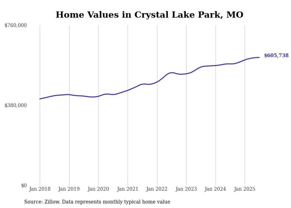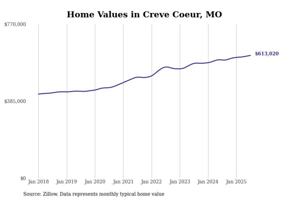 Stacker compiled a list of cities with the most expensive homes in the St. Louis metro area using data from Zillow. Charts show the monthly typical home value since January 2018. Data was available for 252 cities and towns.