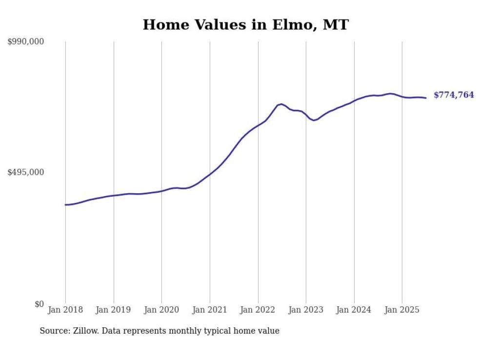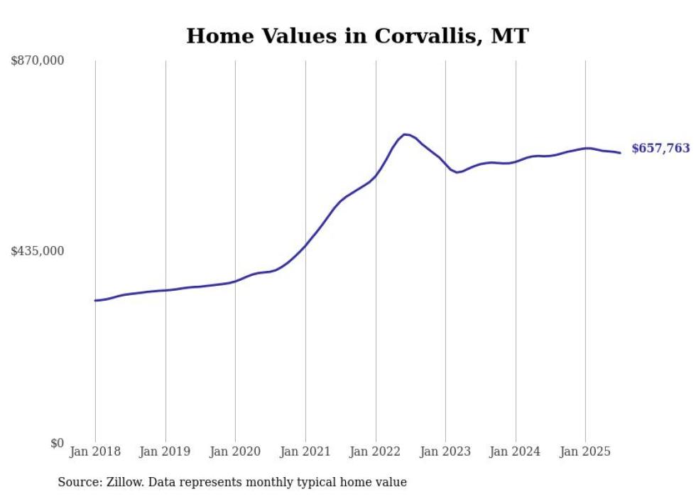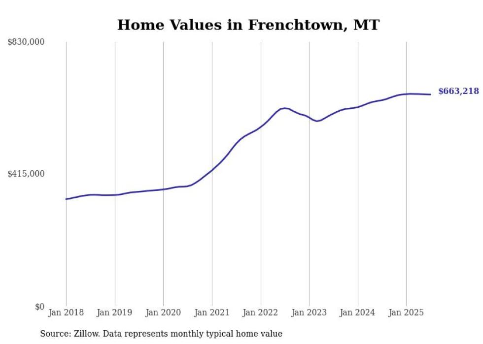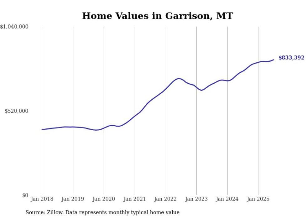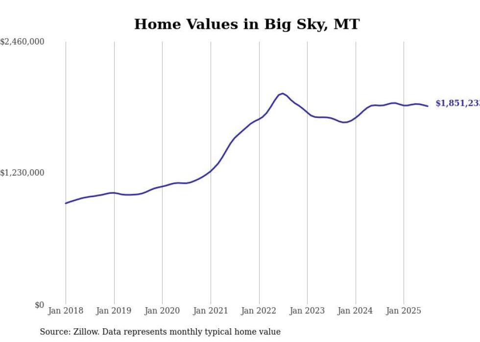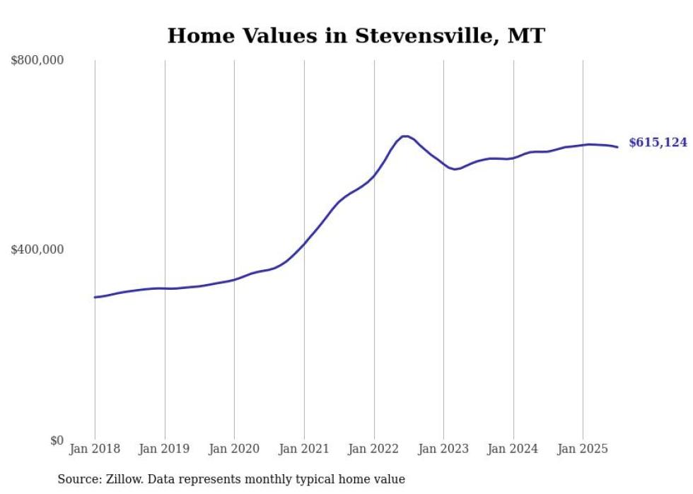 Stacker compiled a list of cities with the most expensive homes in Montana using data from Zillow. Cities are ranked by the Zillow Home Values Index for all homes as of July 2025. The charts in this story were created automatically using Matplotlib.