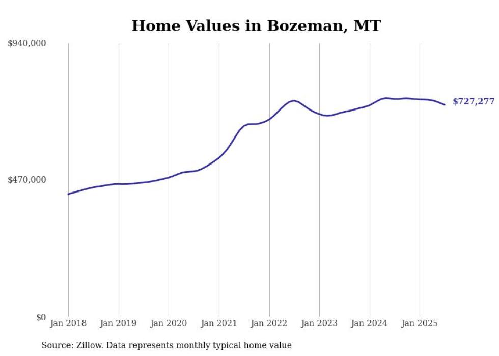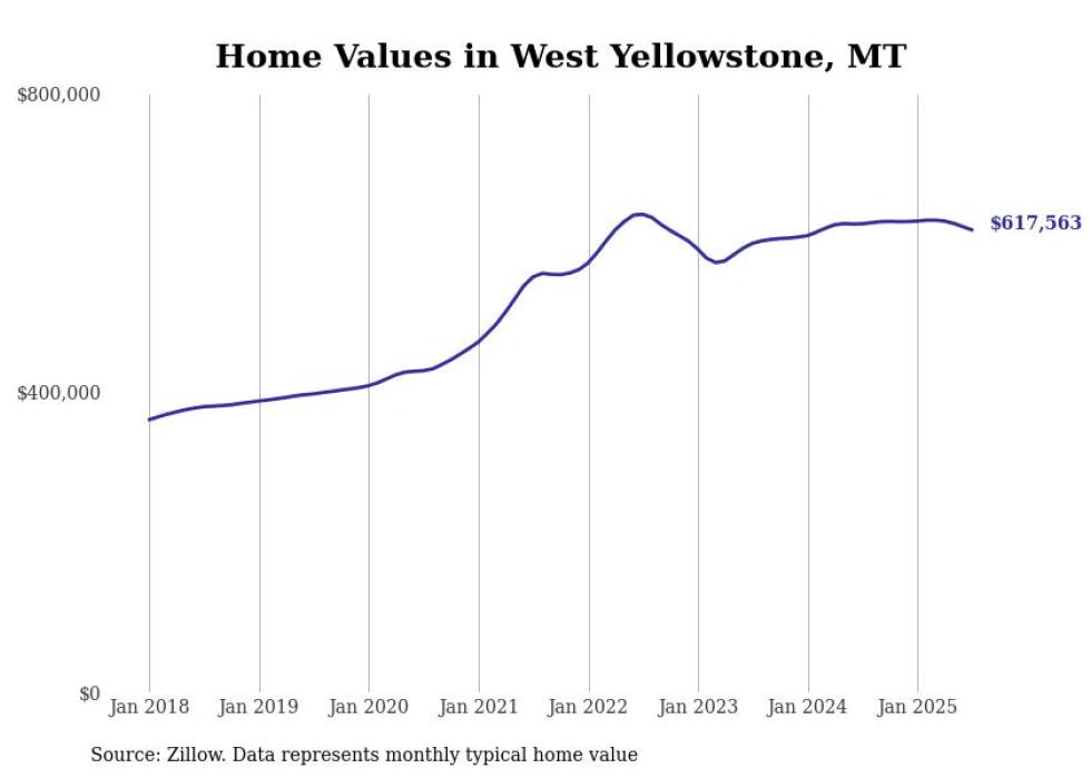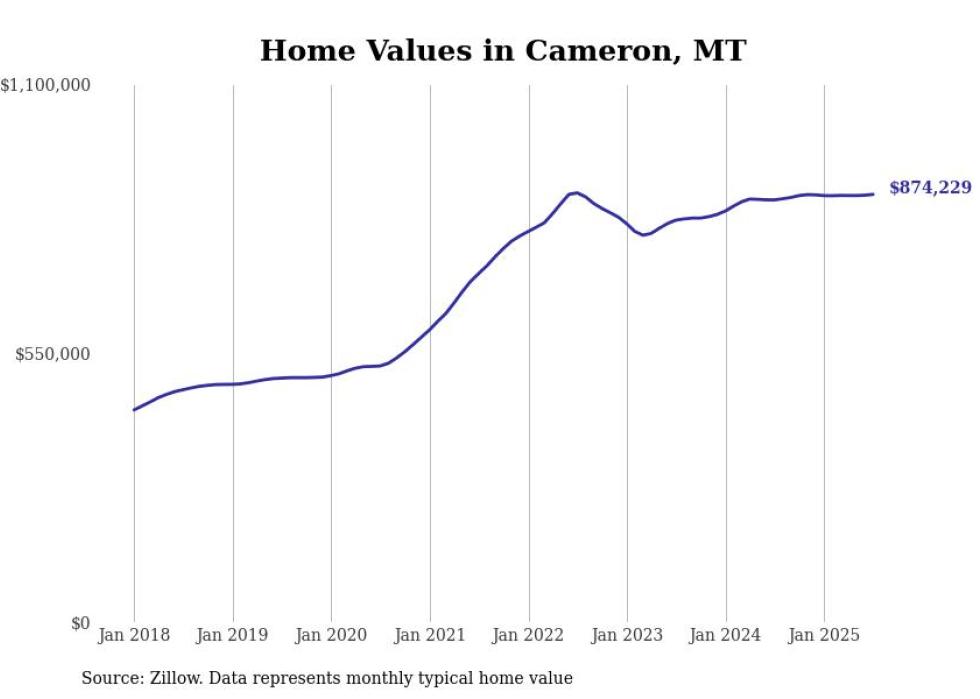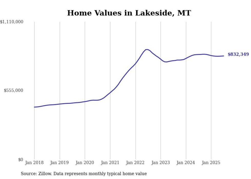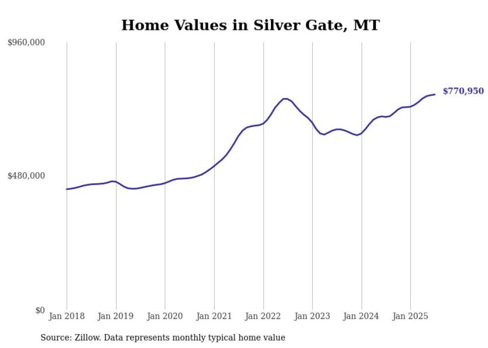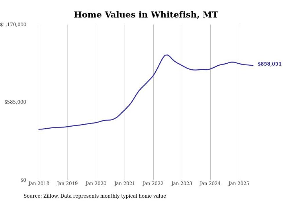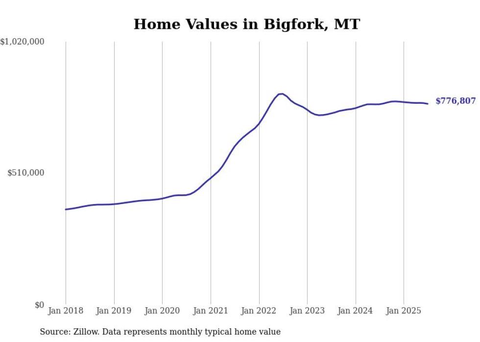 Stacker compiled a list of cities with the most expensive homes in Montana using data from Zillow. Cities are ranked by the Zillow Home Values Index for all homes as of July 2025. The charts in this story were created automatically using Matplotlib.