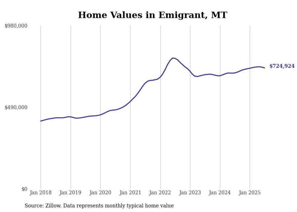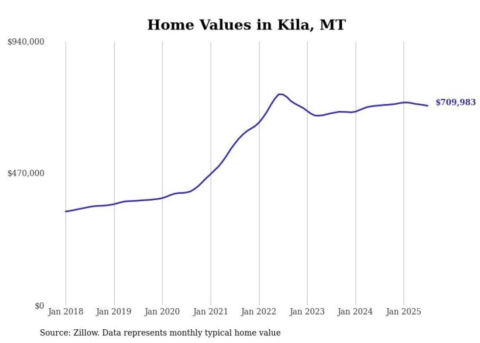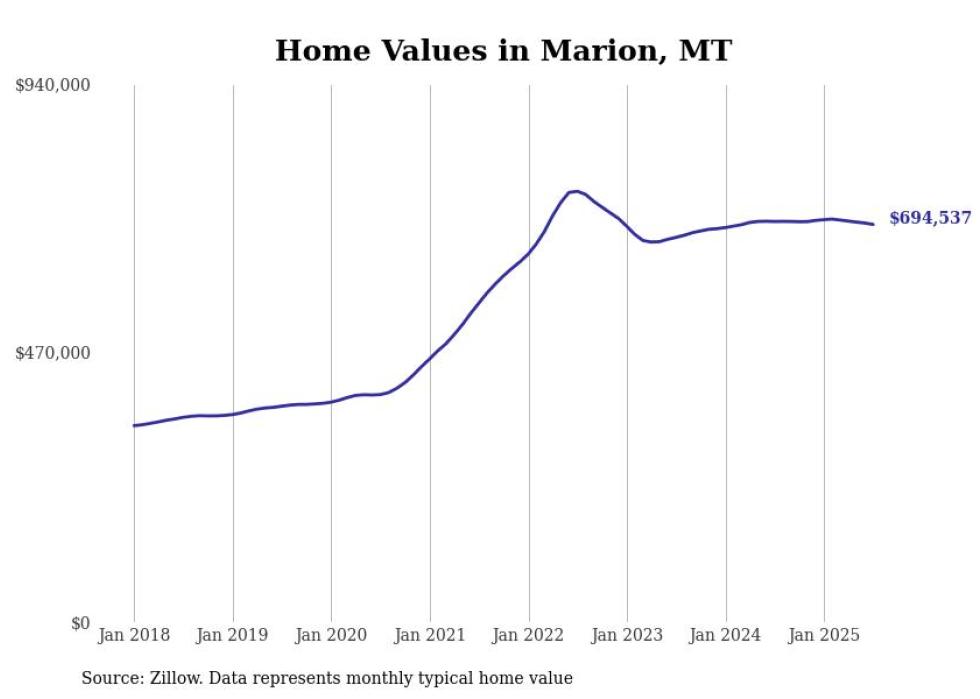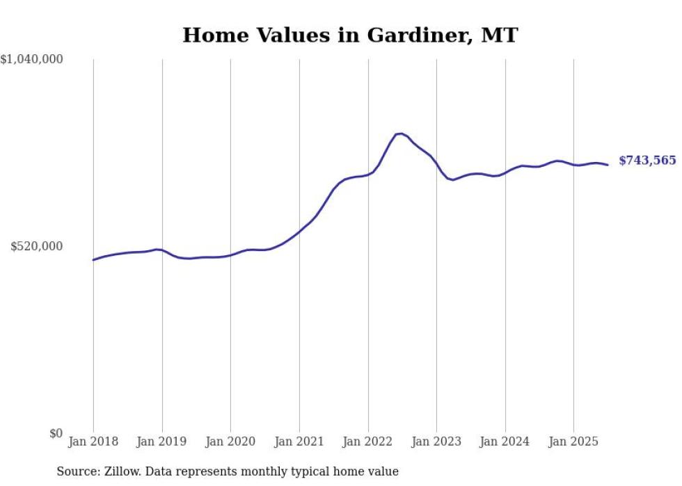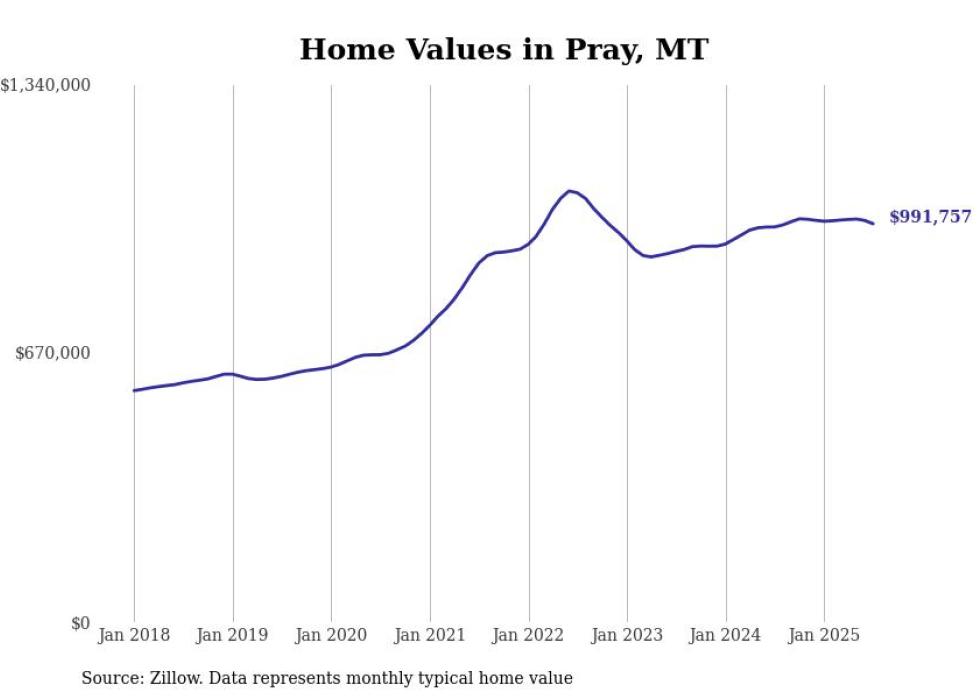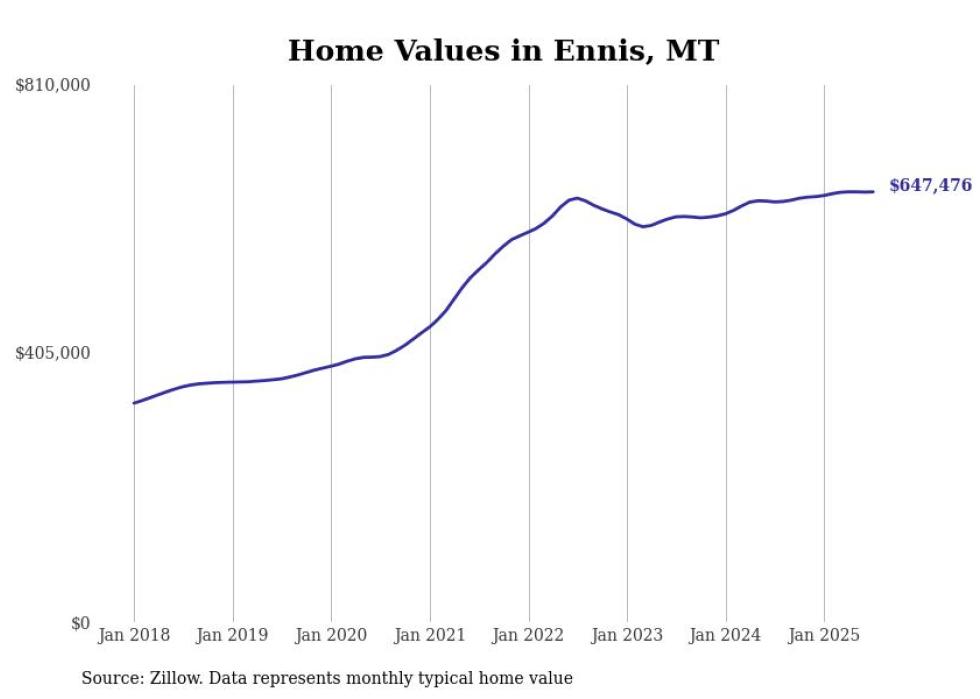 Stacker compiled a list of cities with the most expensive homes in Montana using data from Zillow. Cities are ranked by the Zillow Home Values Index for all homes as of July 2025. The charts in this story were created automatically using Matplotlib.
