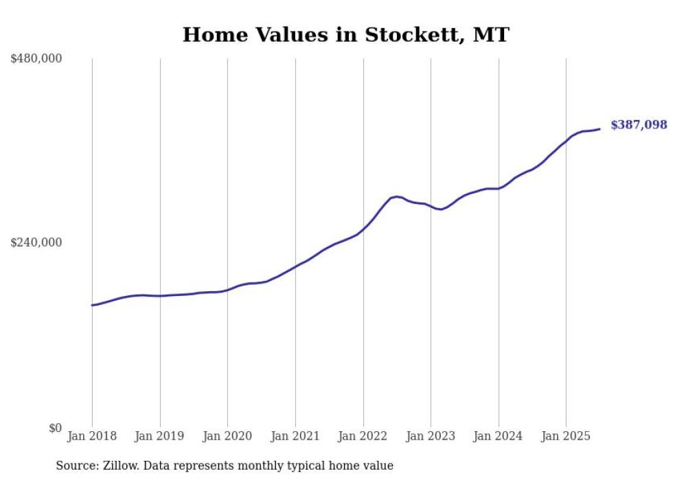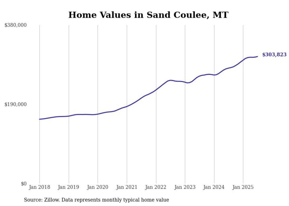 Stacker compiled a list of cities with the most expensive homes in the Great Falls metro area using data from Zillow. Charts show the monthly typical home value since January 2018. All 12 cities and towns with data available were included in the list.